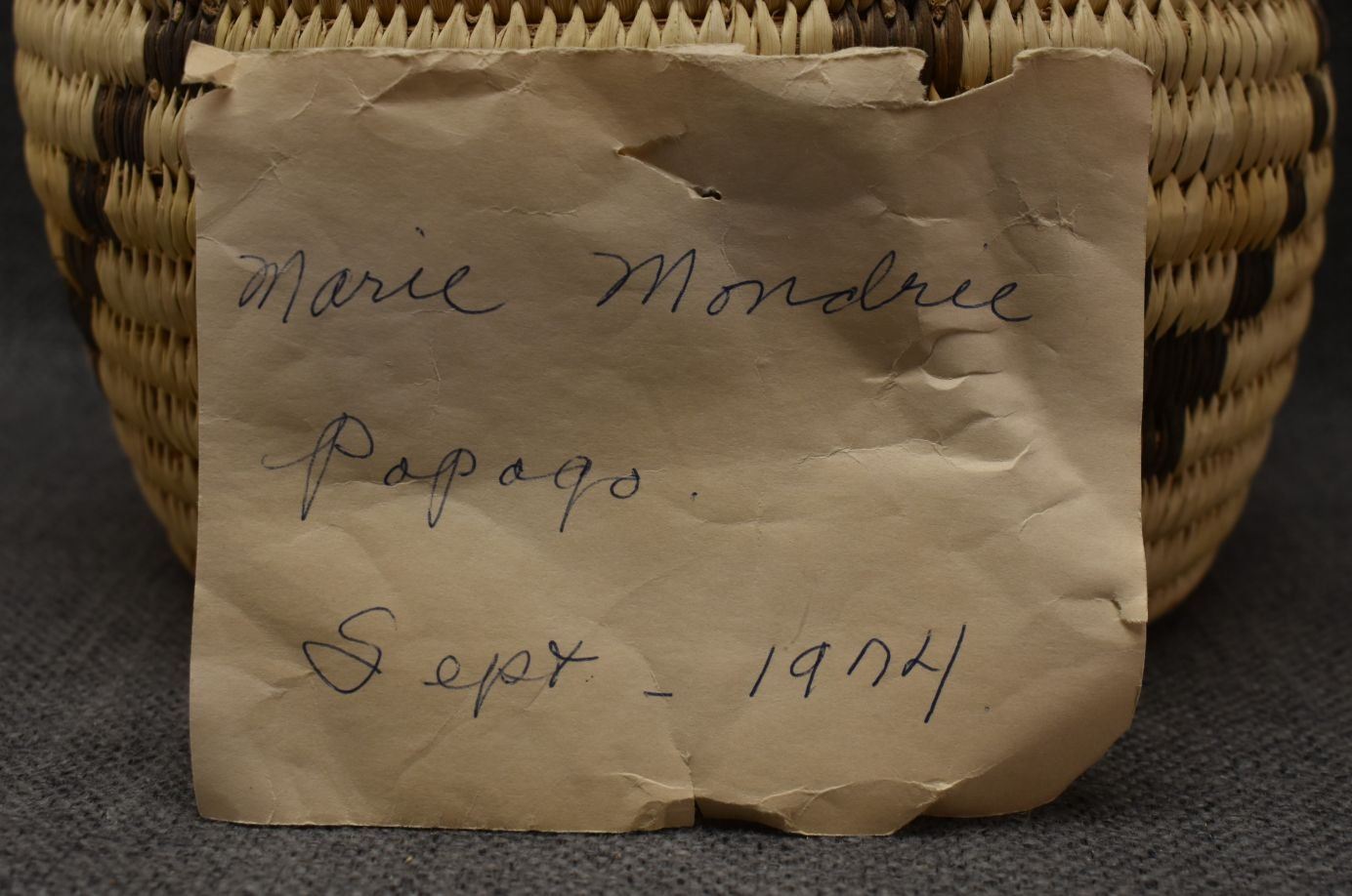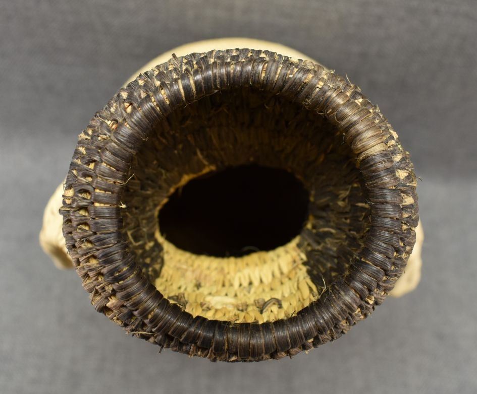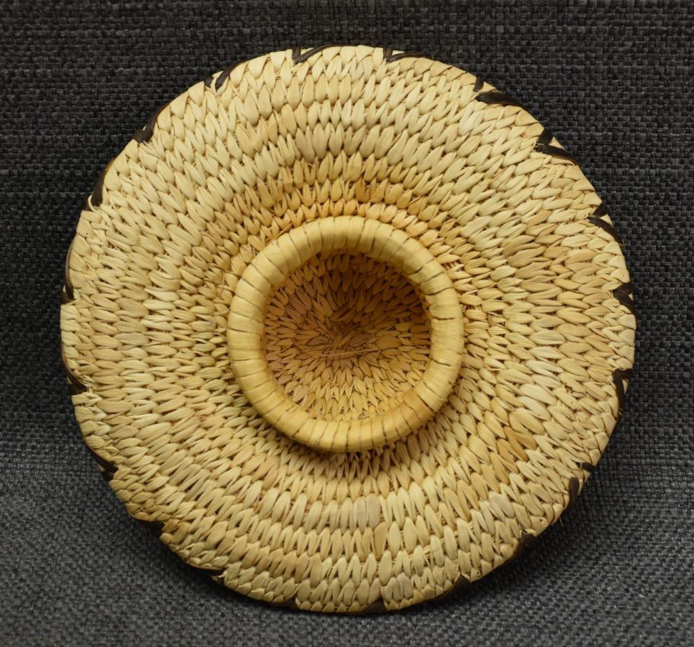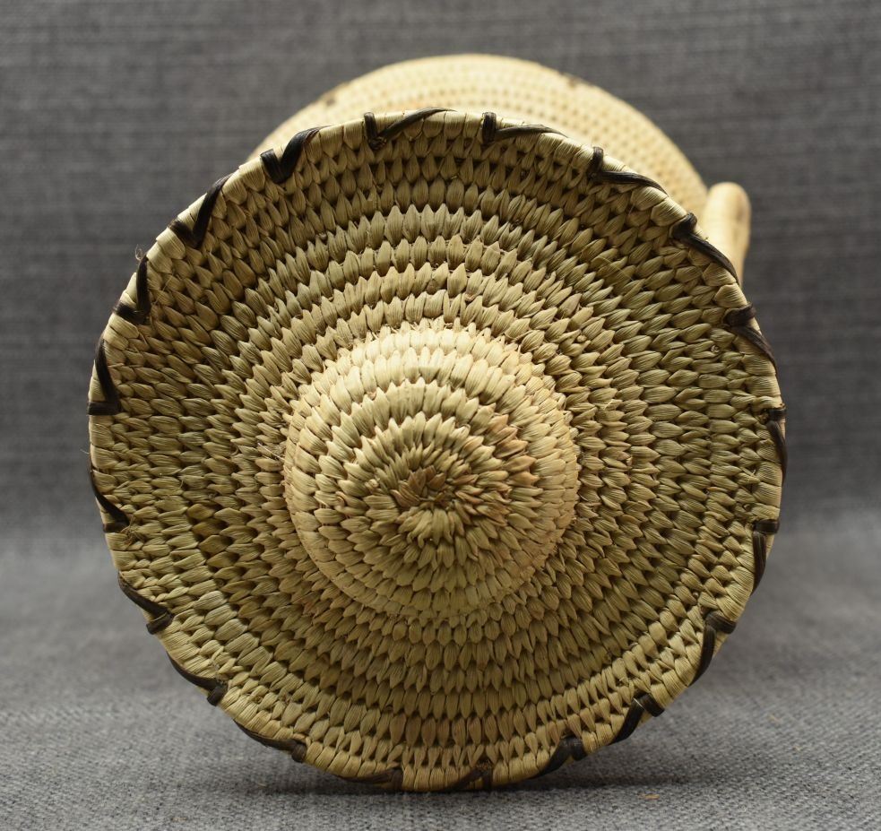 1970's Papago. Hand woven basketry female doll wearing a hat. Attributed to Marie Mondree. 14'' x 8''