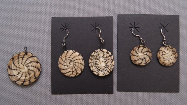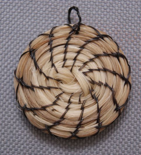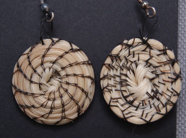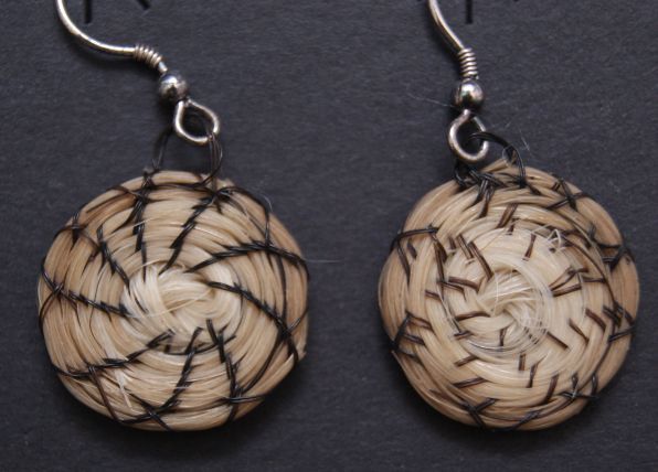 1980's hand woven horse hair, largest earings .75" diameter, pendant 1.25" diameter