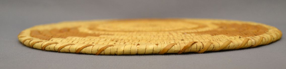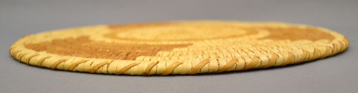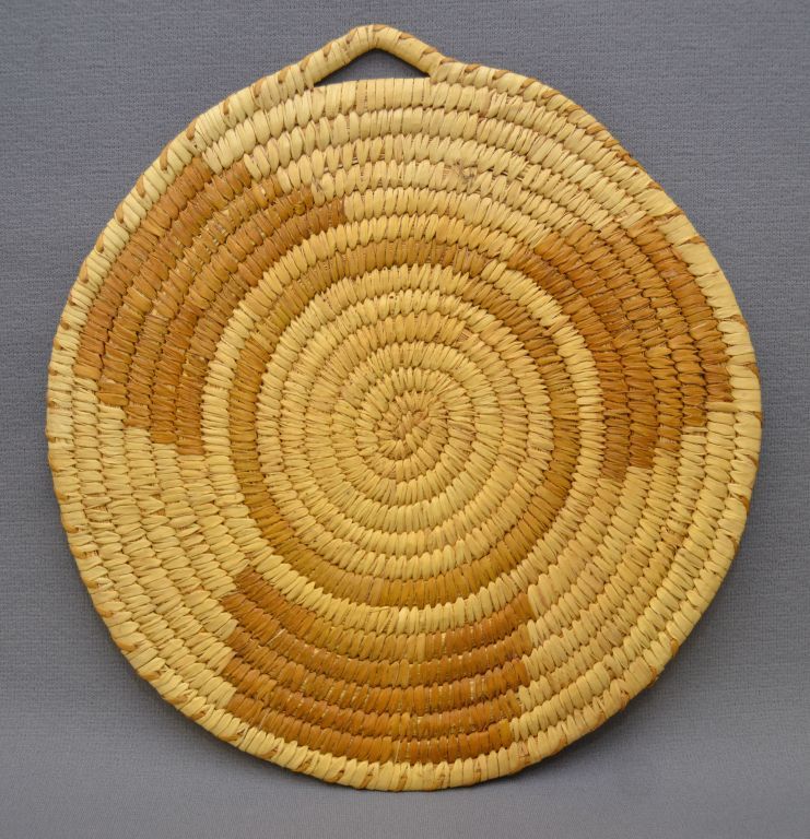 1960s 70s hand woven yucca flat plaque minor stitch loss 12.5"x11.5"