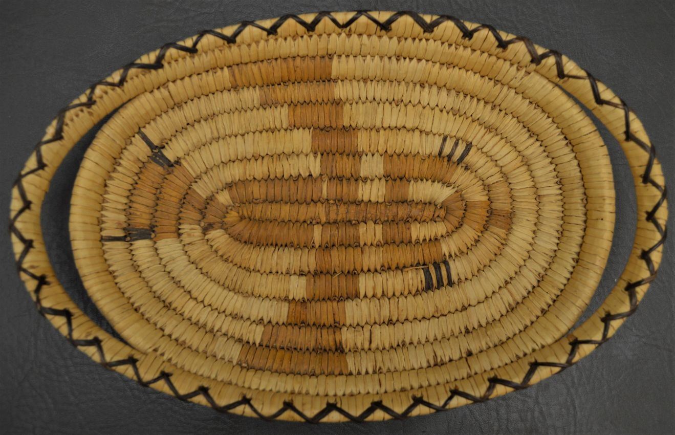 1960's Papago Indian, hand woven design of yucca and devils claw depicting bird, 2'' x 12'' x 7''