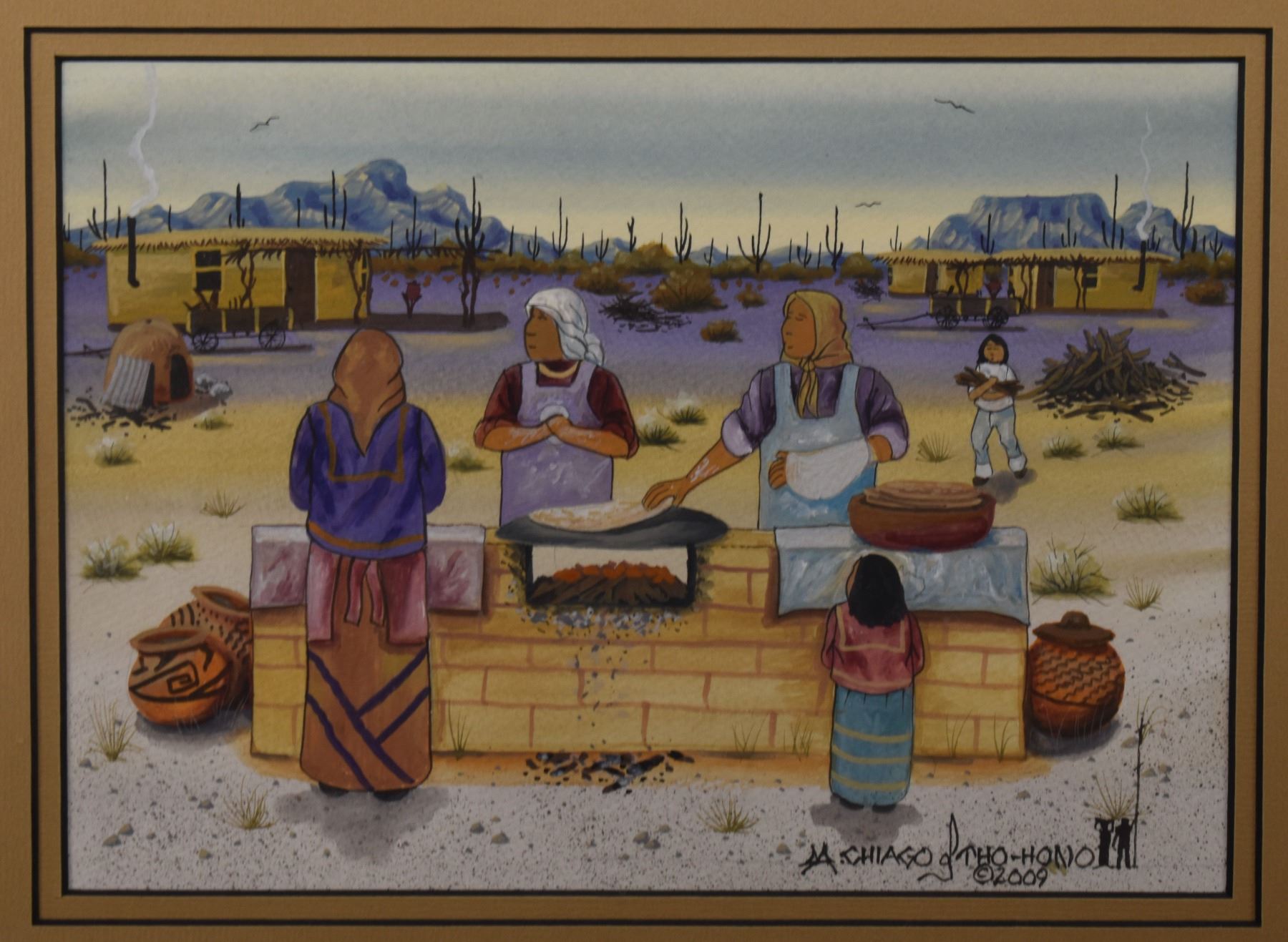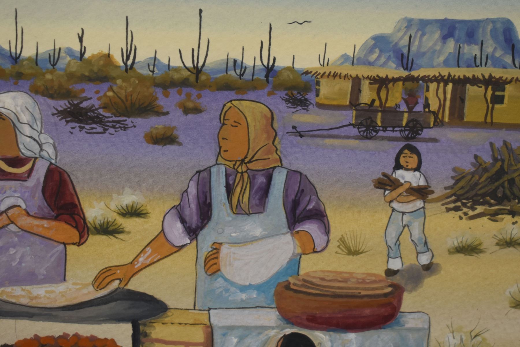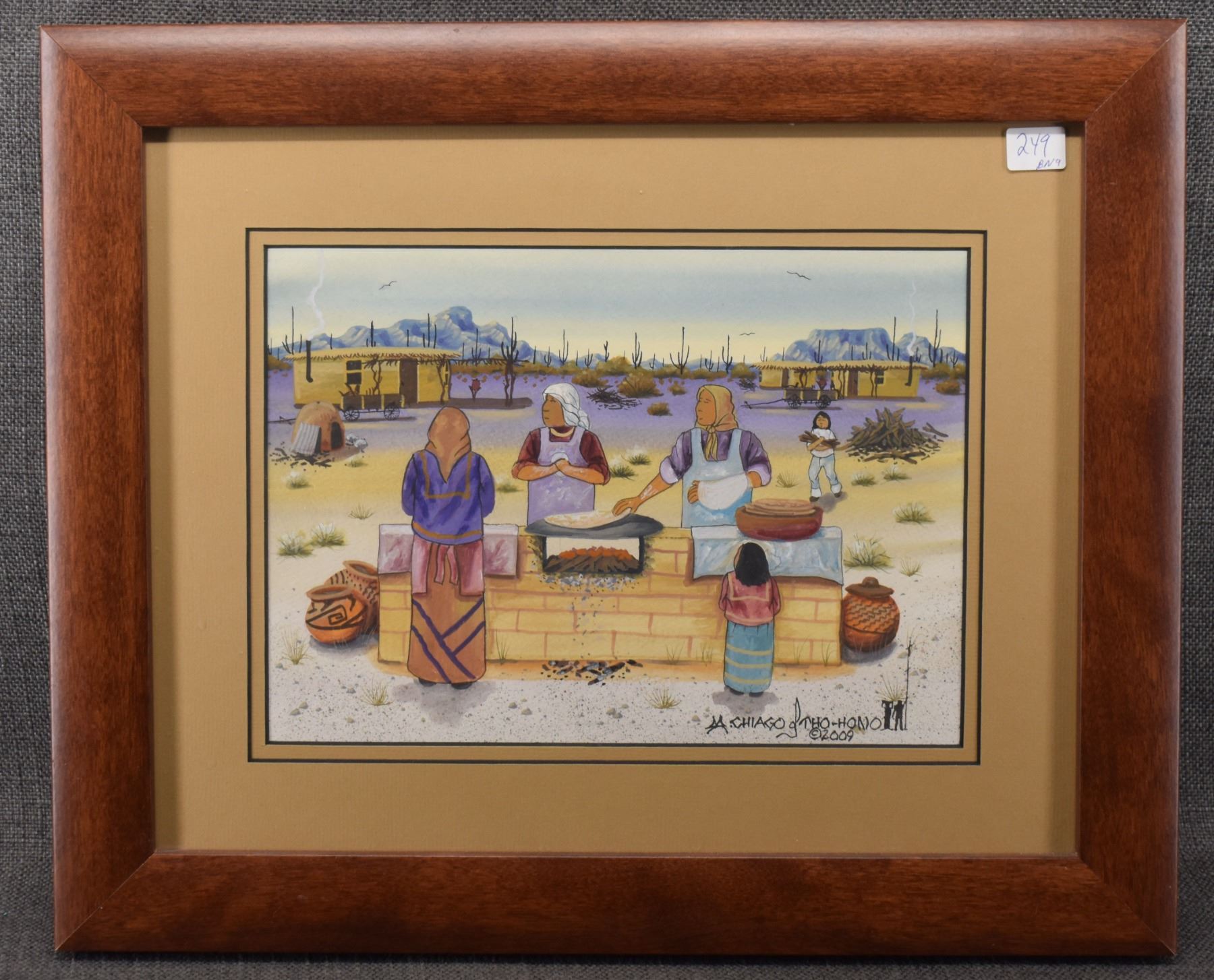 2009 Papago. original on paper depicting woman baking, signed Michael Chiago. 7'' x 10'' frame size 14'' x 17''