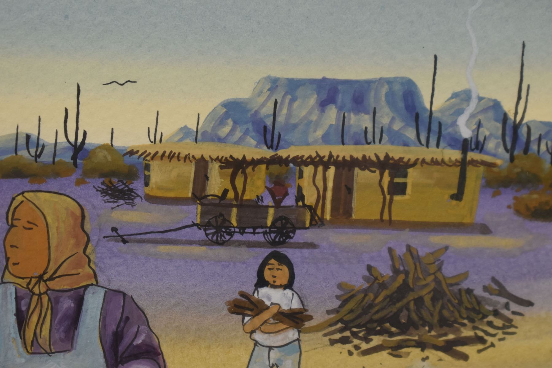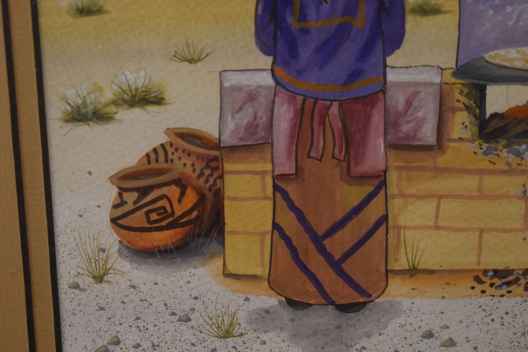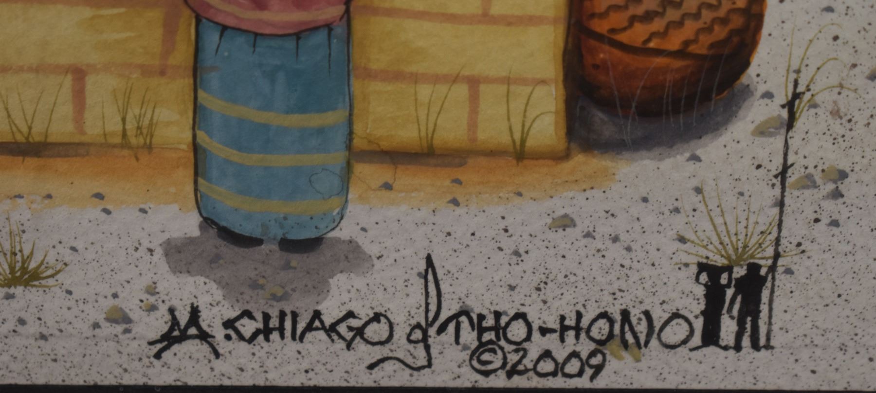 2009 Papago. original on paper depicting woman baking, signed Michael Chiago. 7'' x 10'' frame size 14'' x 17''