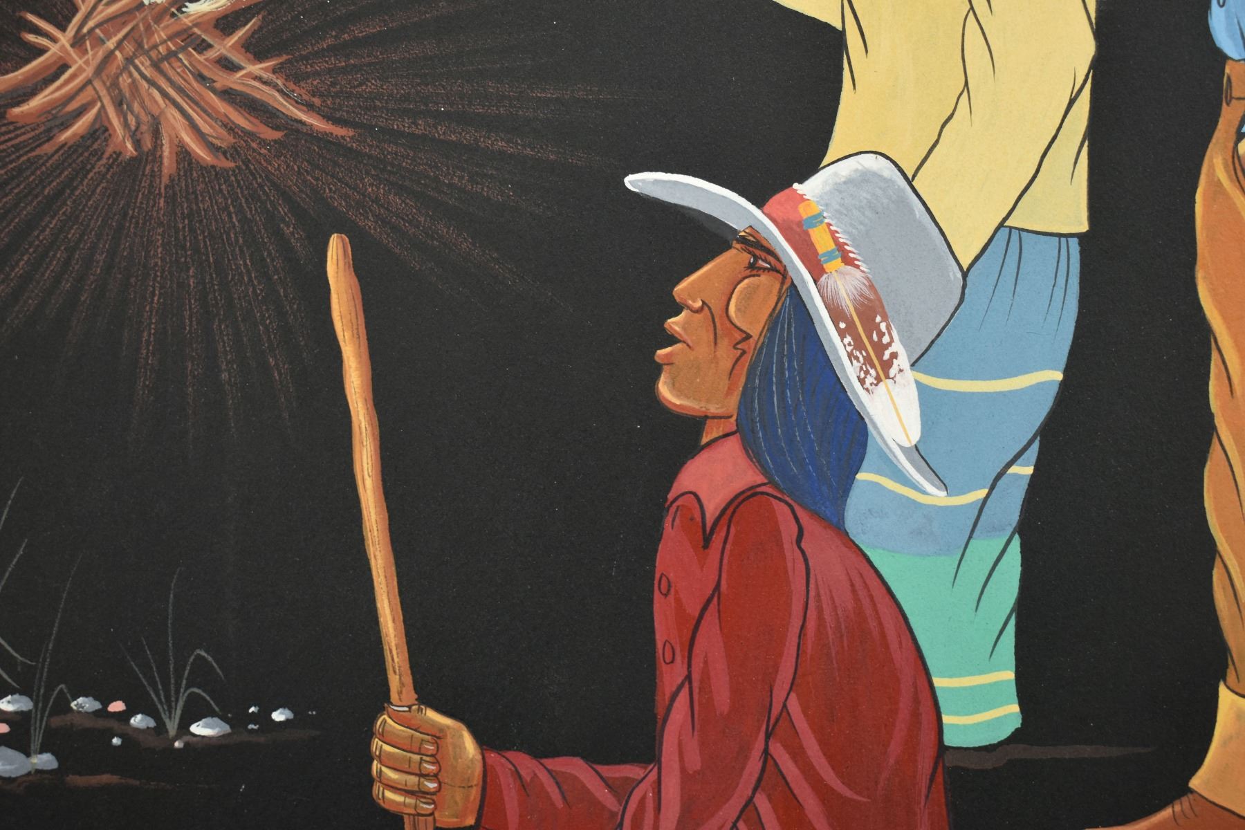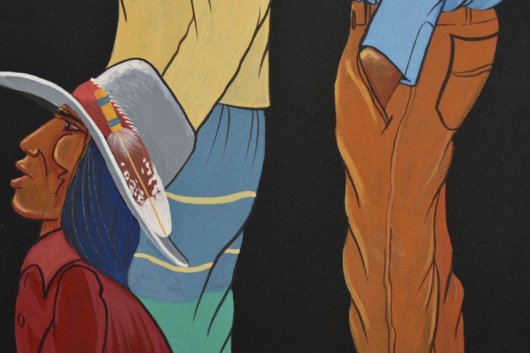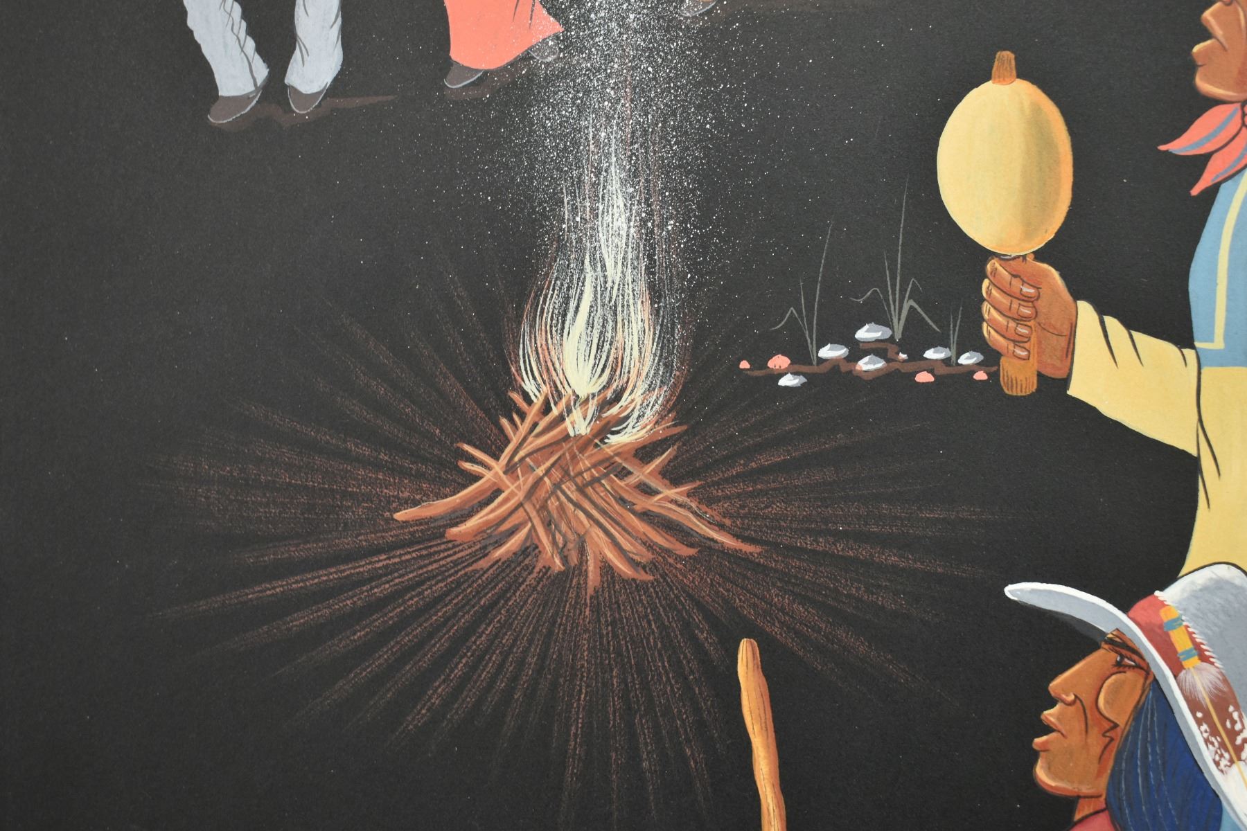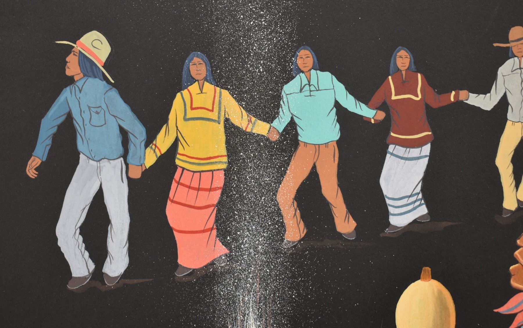 1985 Papago. Original on paper depicting ceremonial dance. Signed M. Chiago. 20'' x 16''
