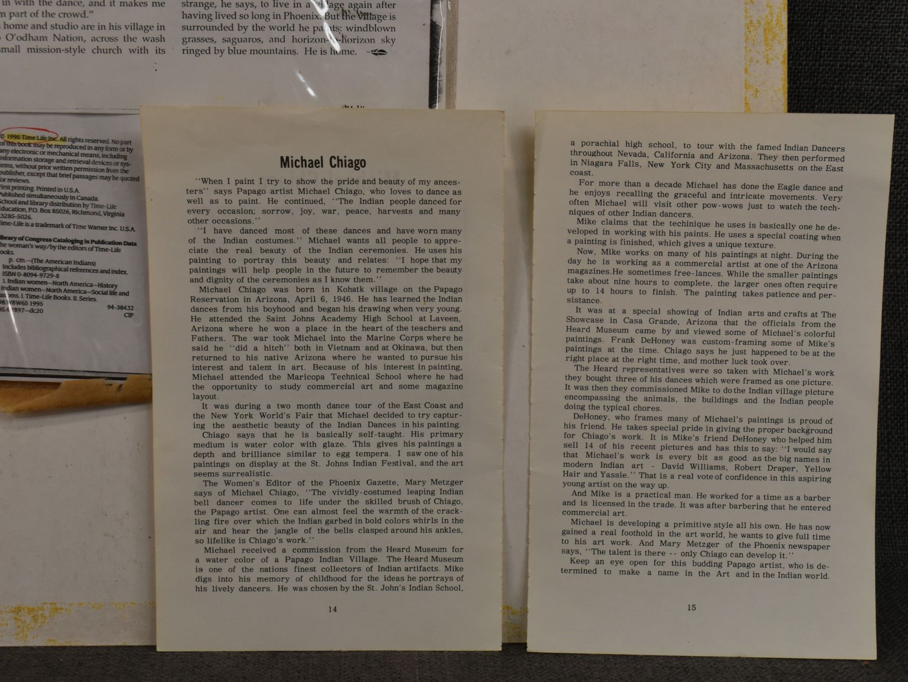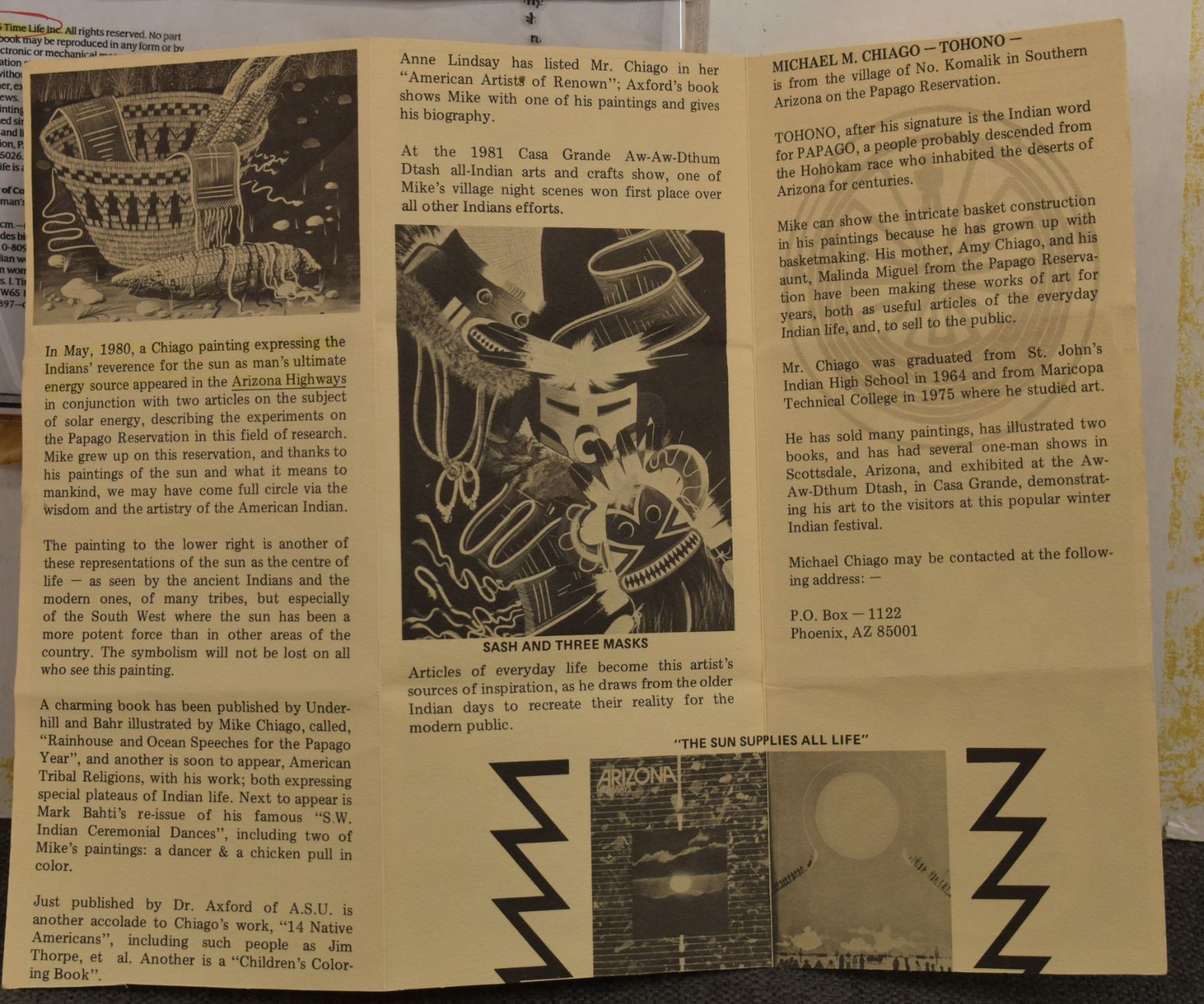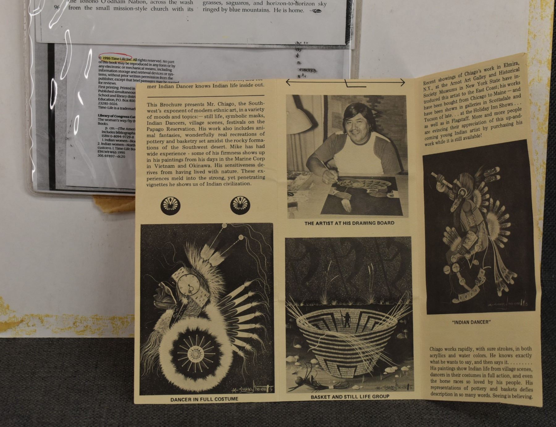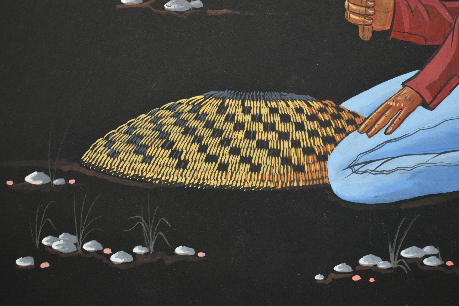 1985 Papago. Original on paper depicting ceremonial dance. Signed M. Chiago. 20'' x 16''