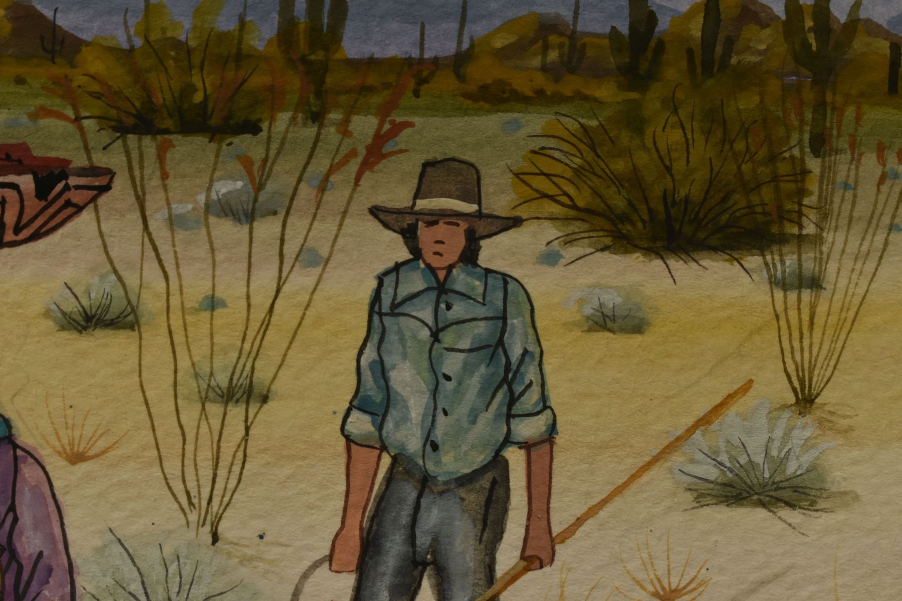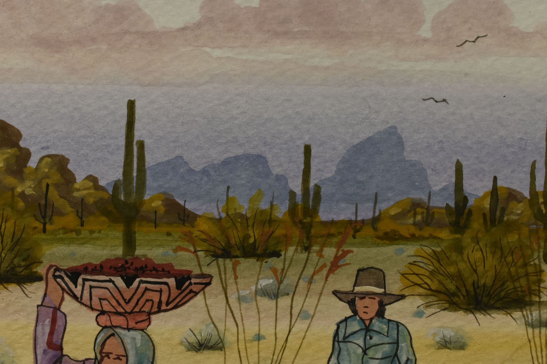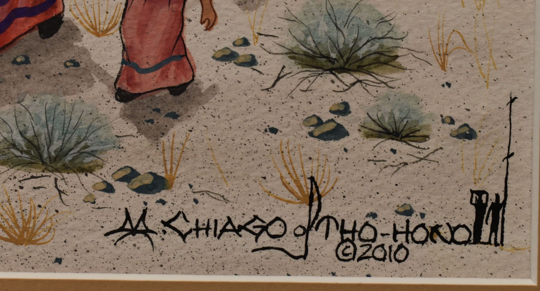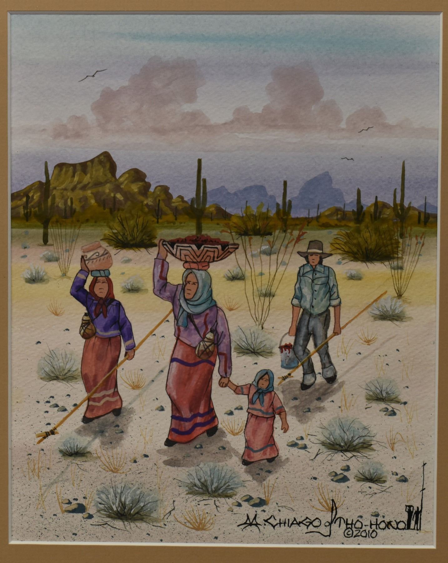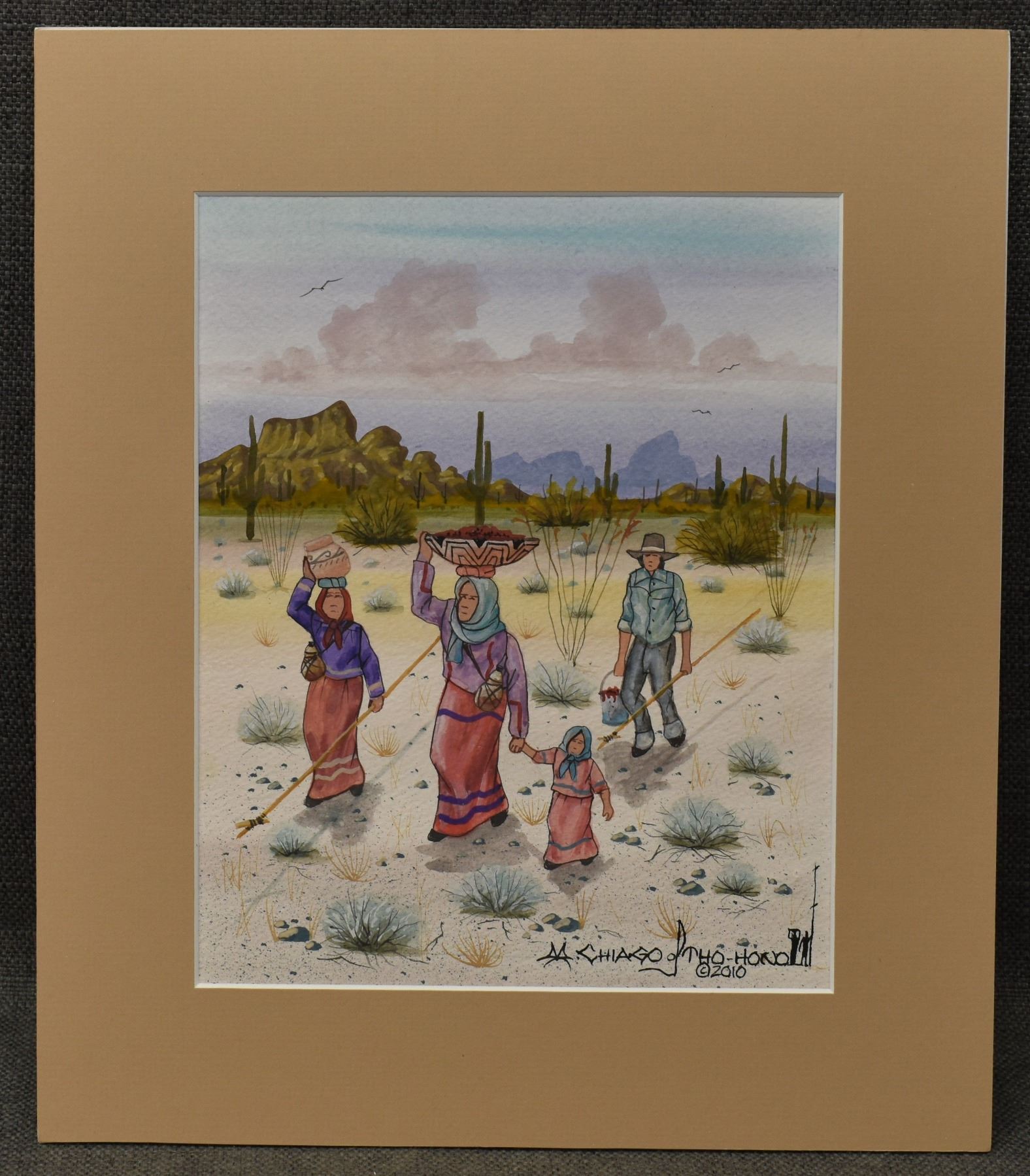 2010. Papago. Original painting on paper depicting Fruit Harvest. Signed Chiago. 9'' x 8'' matt 13'' x 12''