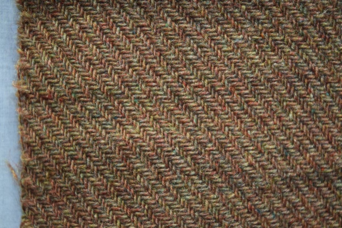 1960's banded design on brown field tag is missing and has wear. 60'' x 72''