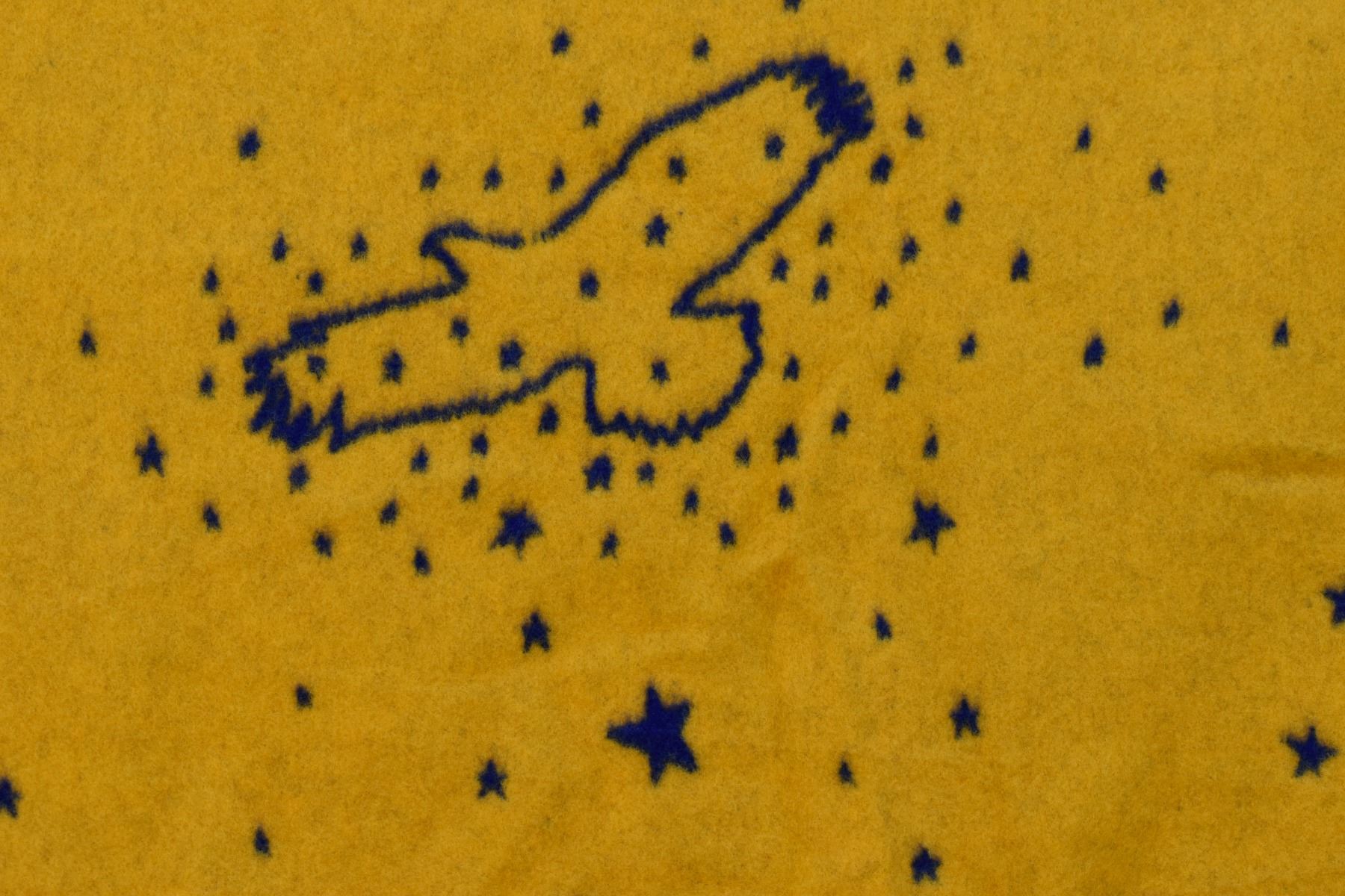 contemporary Bever state Pendleton blanket. Titled The Story Teller. 80'' x 64''. Has moth damage
