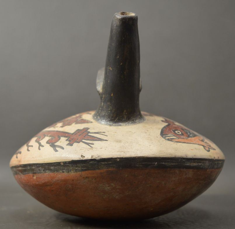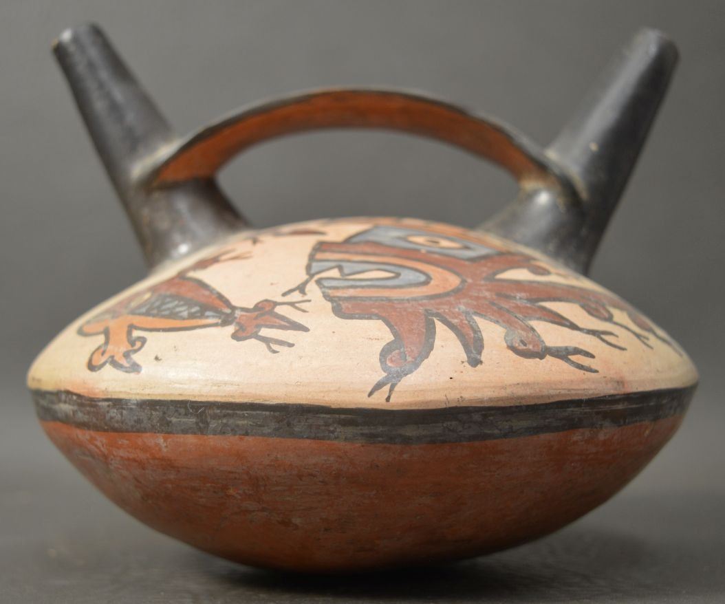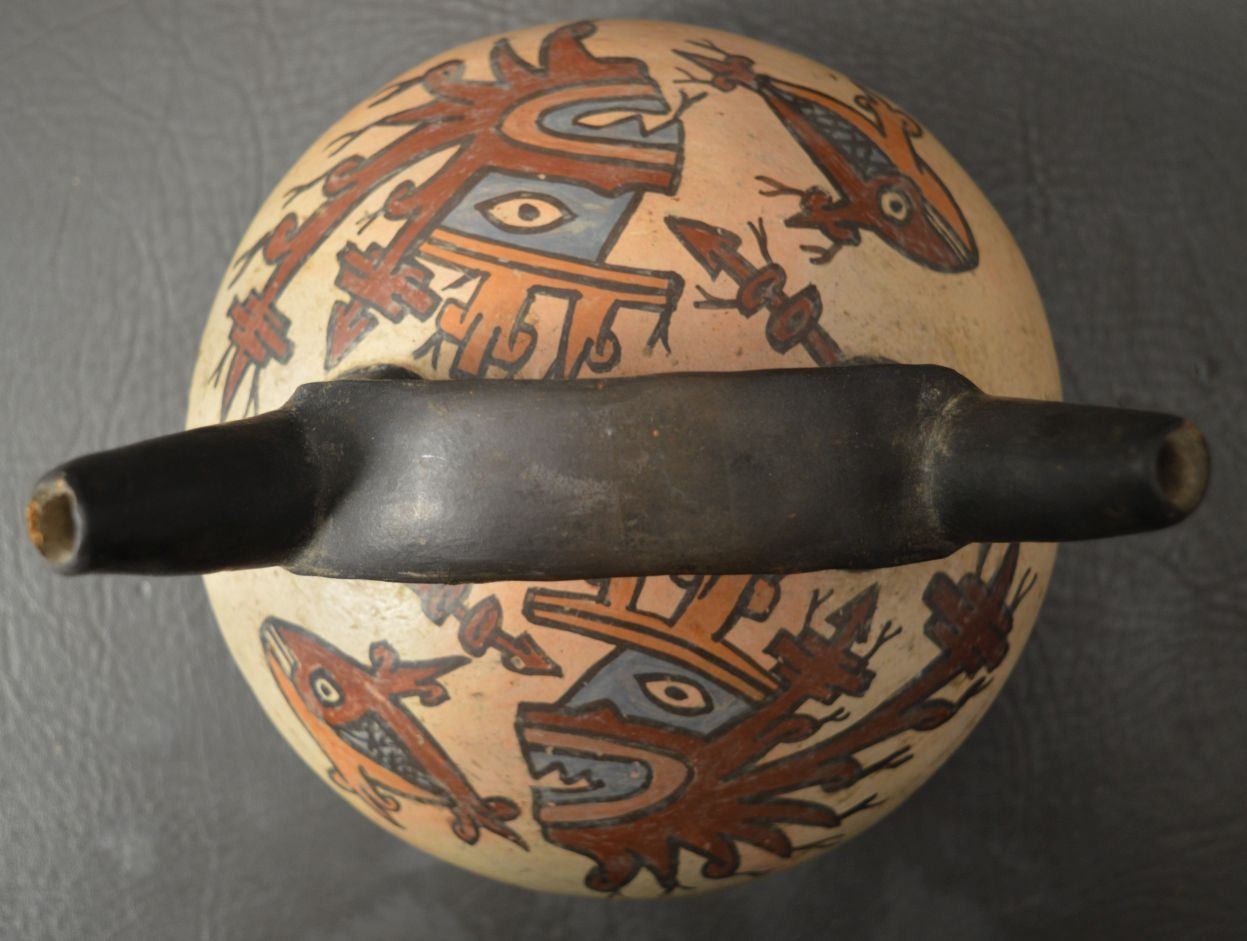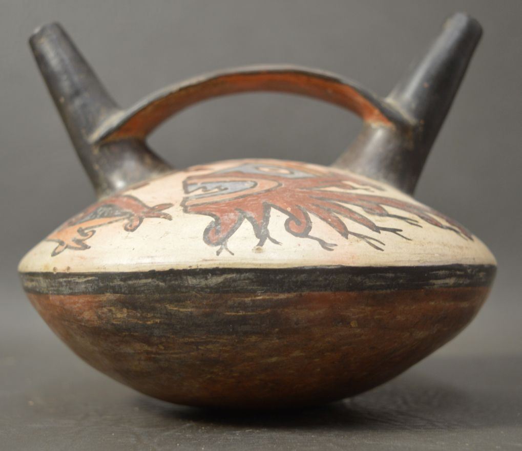 vintage Peruvian pottery vessel 5.5'' x 7'' with customs tag