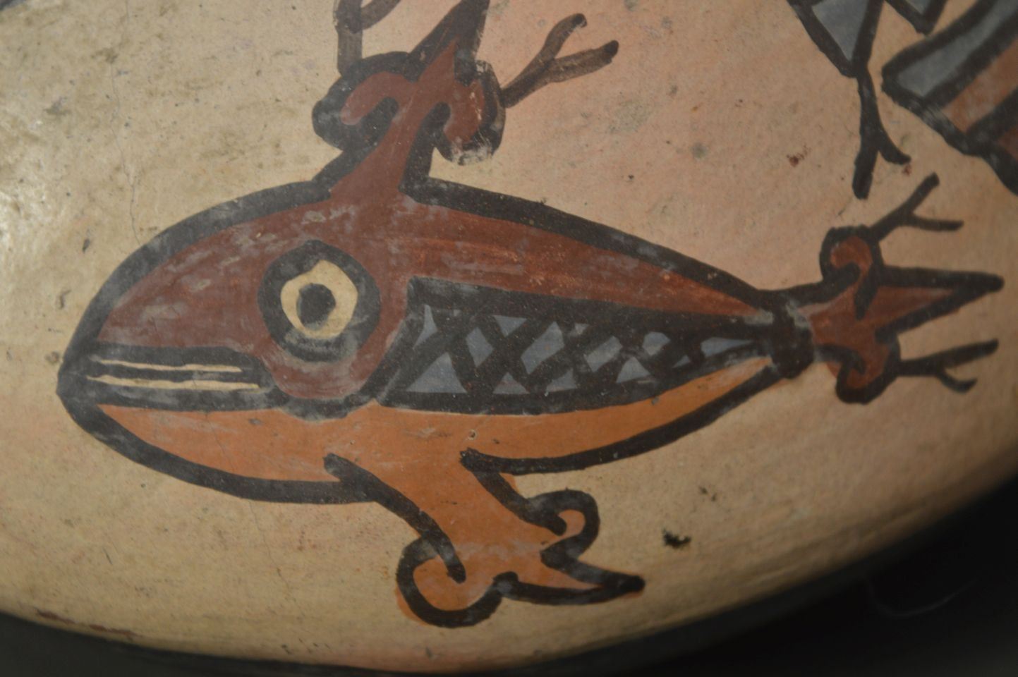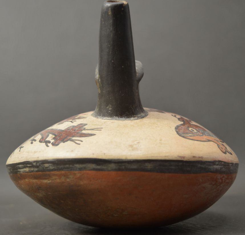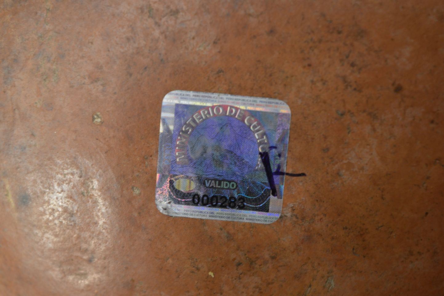 vintage Peruvian pottery vessel 5.5'' x 7'' with customs tag