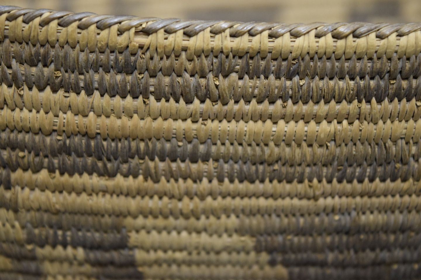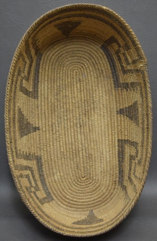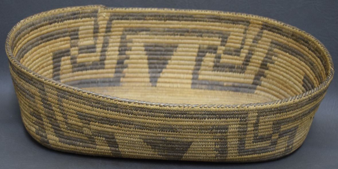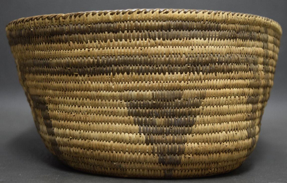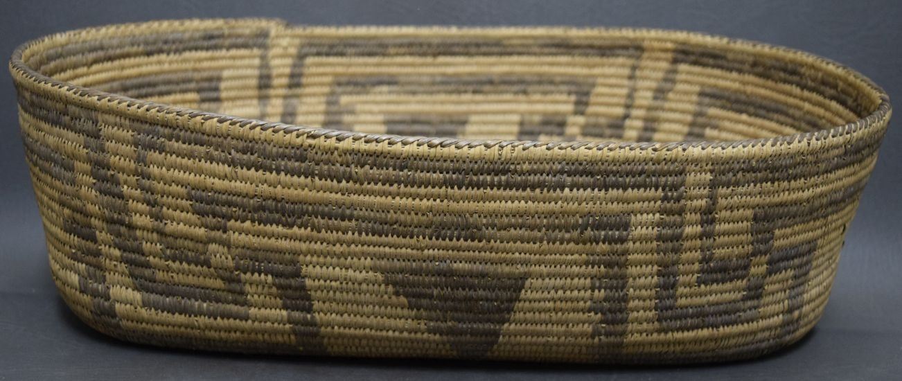 1940's hand woven geometric design of willow and devils claw. 4.5'' x 10'' x 15''