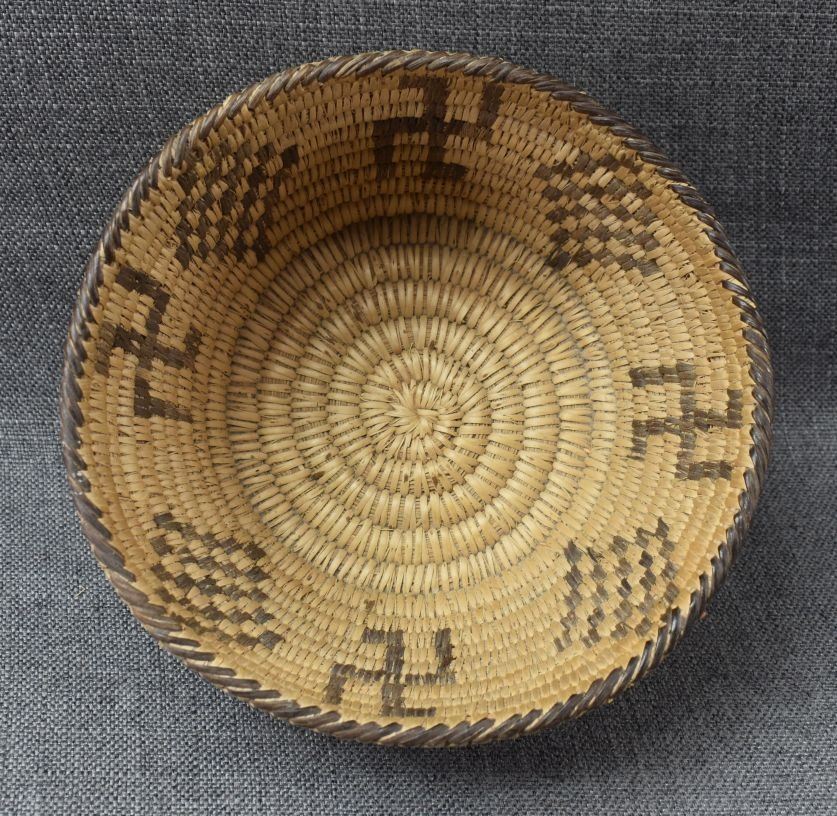 1920-30's Pima, hand woven willow and devils claw diamond and whirling log design 5" x 8.25"