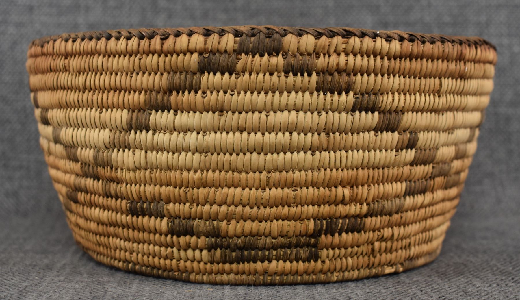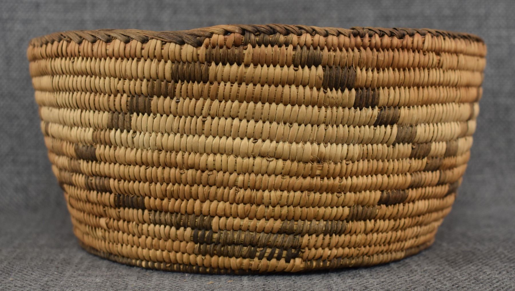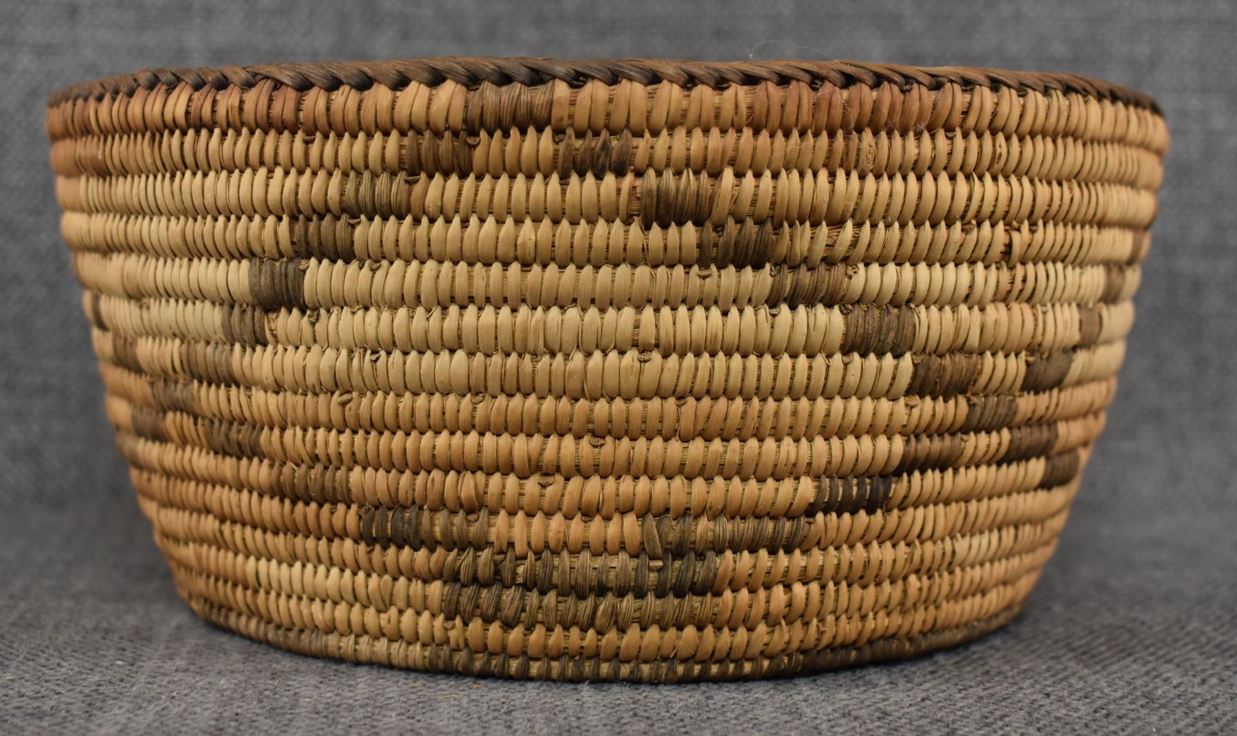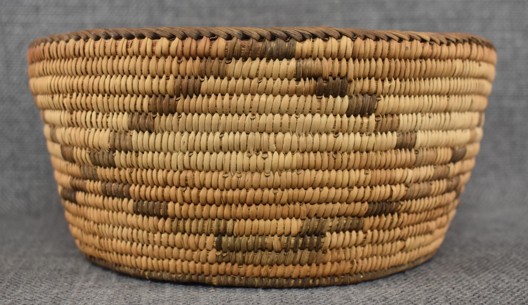 1920's Pima. Hand woven diamond design basketry bowl. 3.75''x 8''