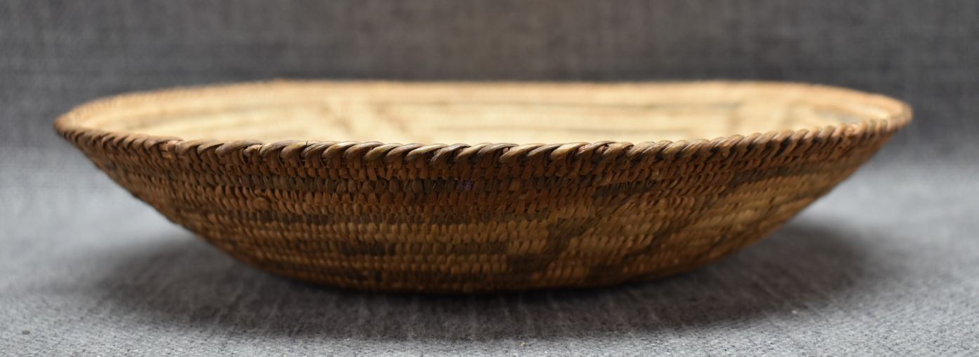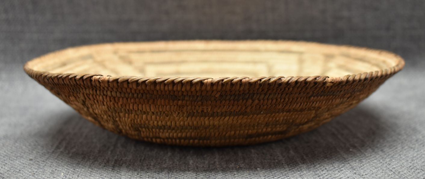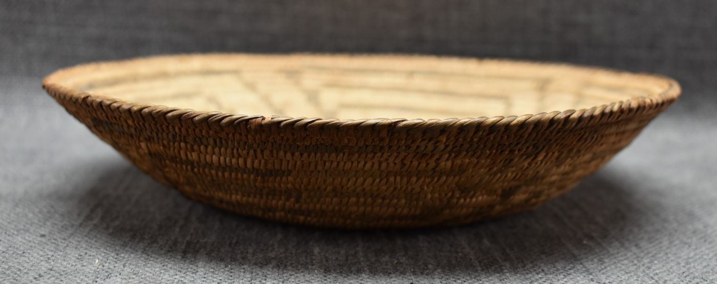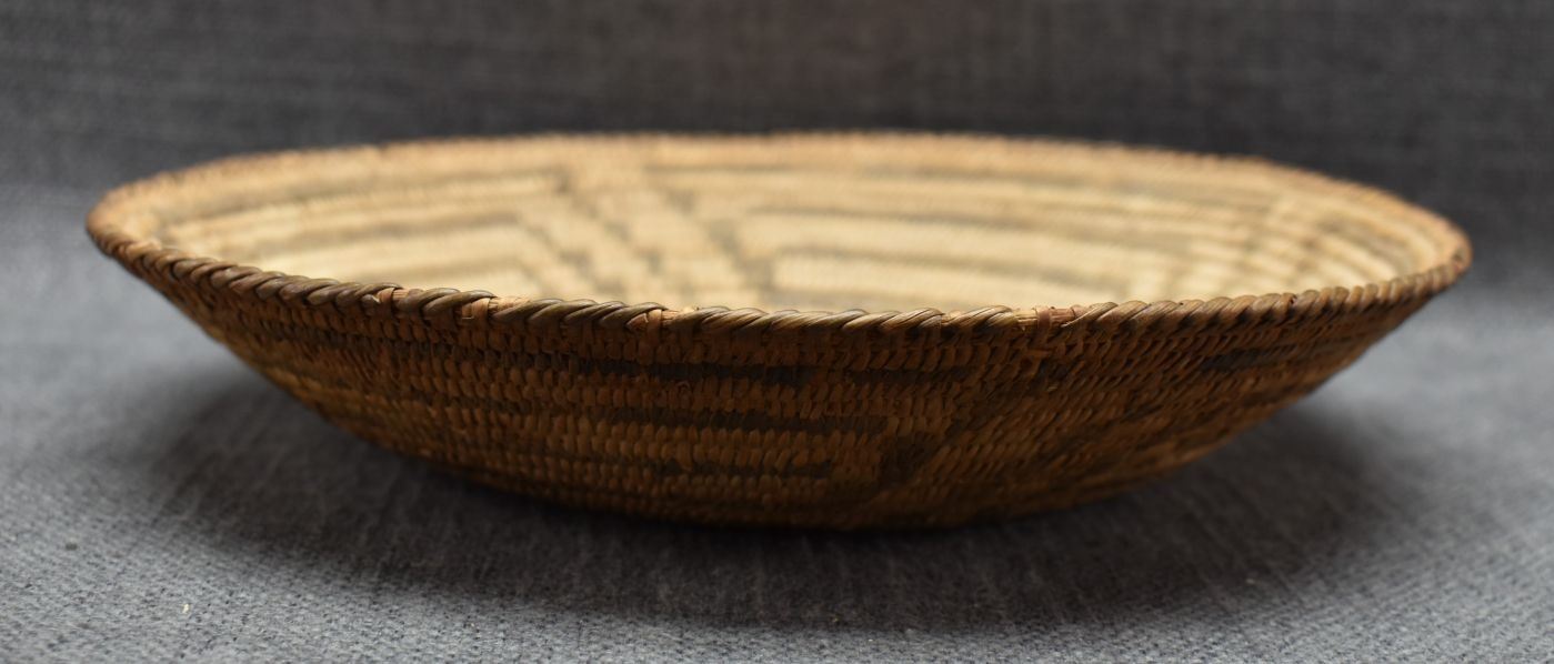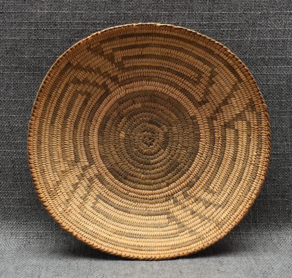 1960's Pima. Hand woven geometric design basketry bowl. 1.75" x 9"