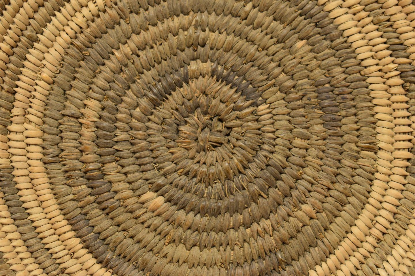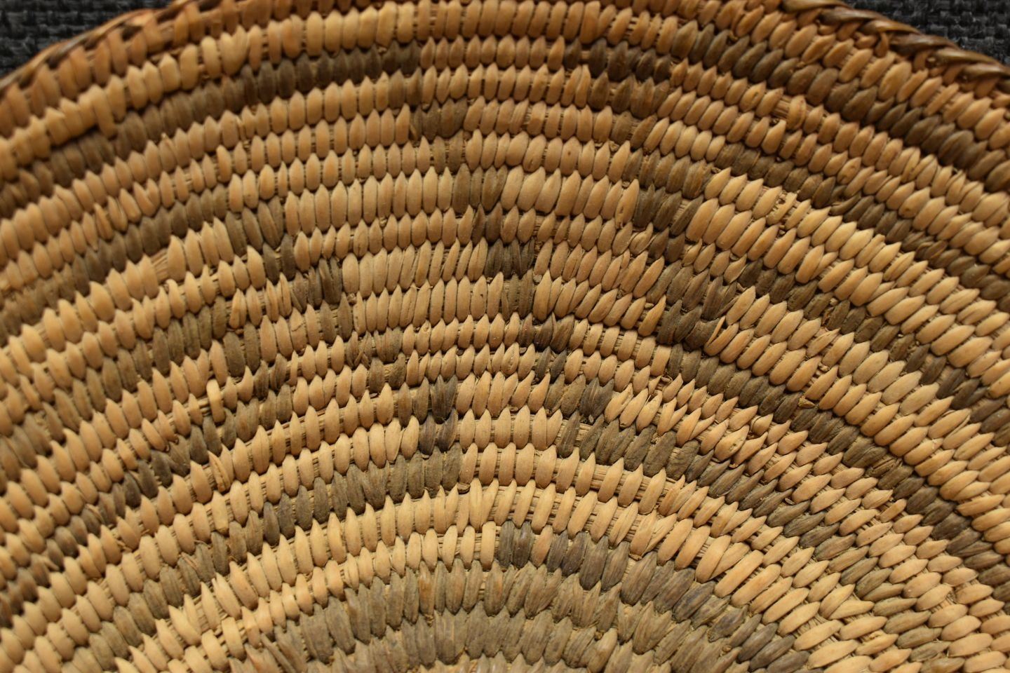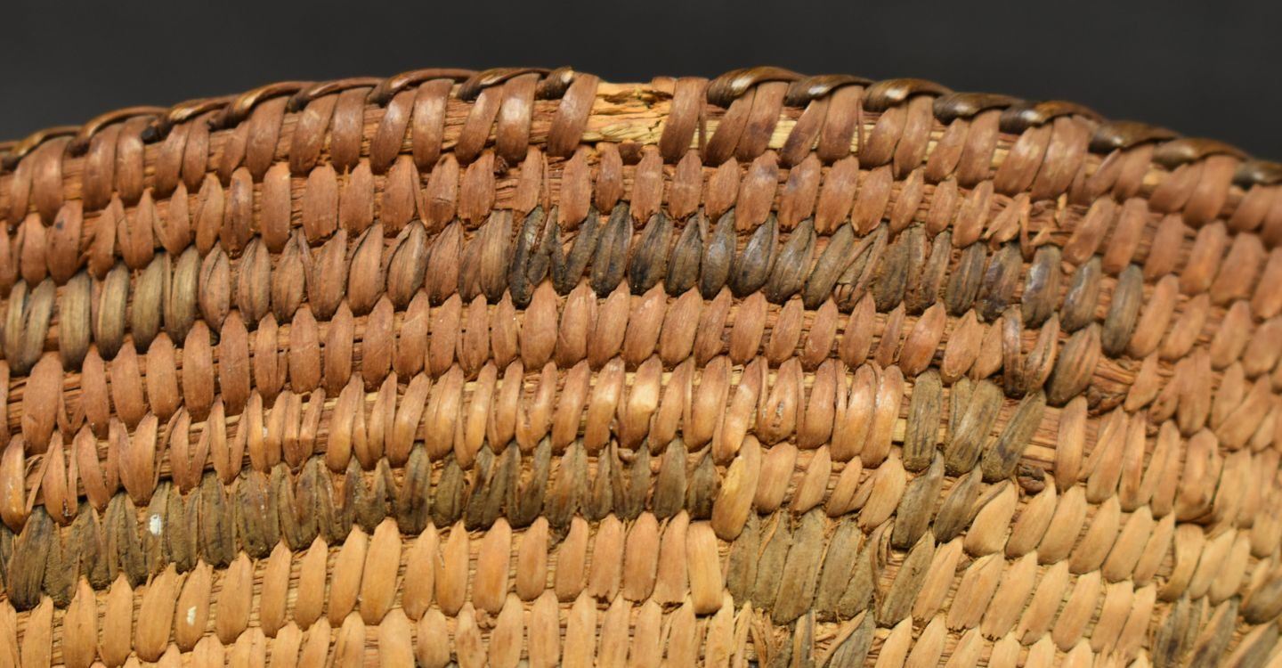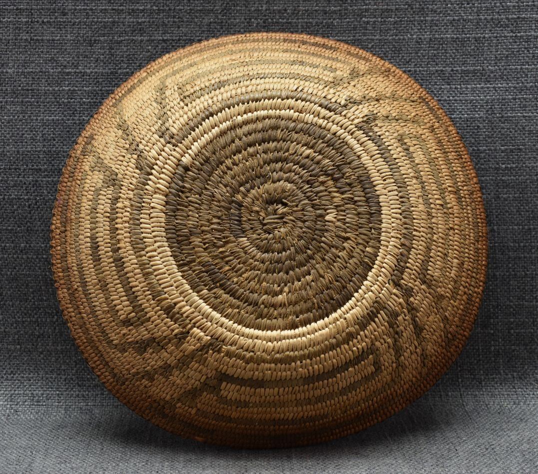 1960's Pima. Hand woven geometric design basketry bowl. 1.75" x 9"