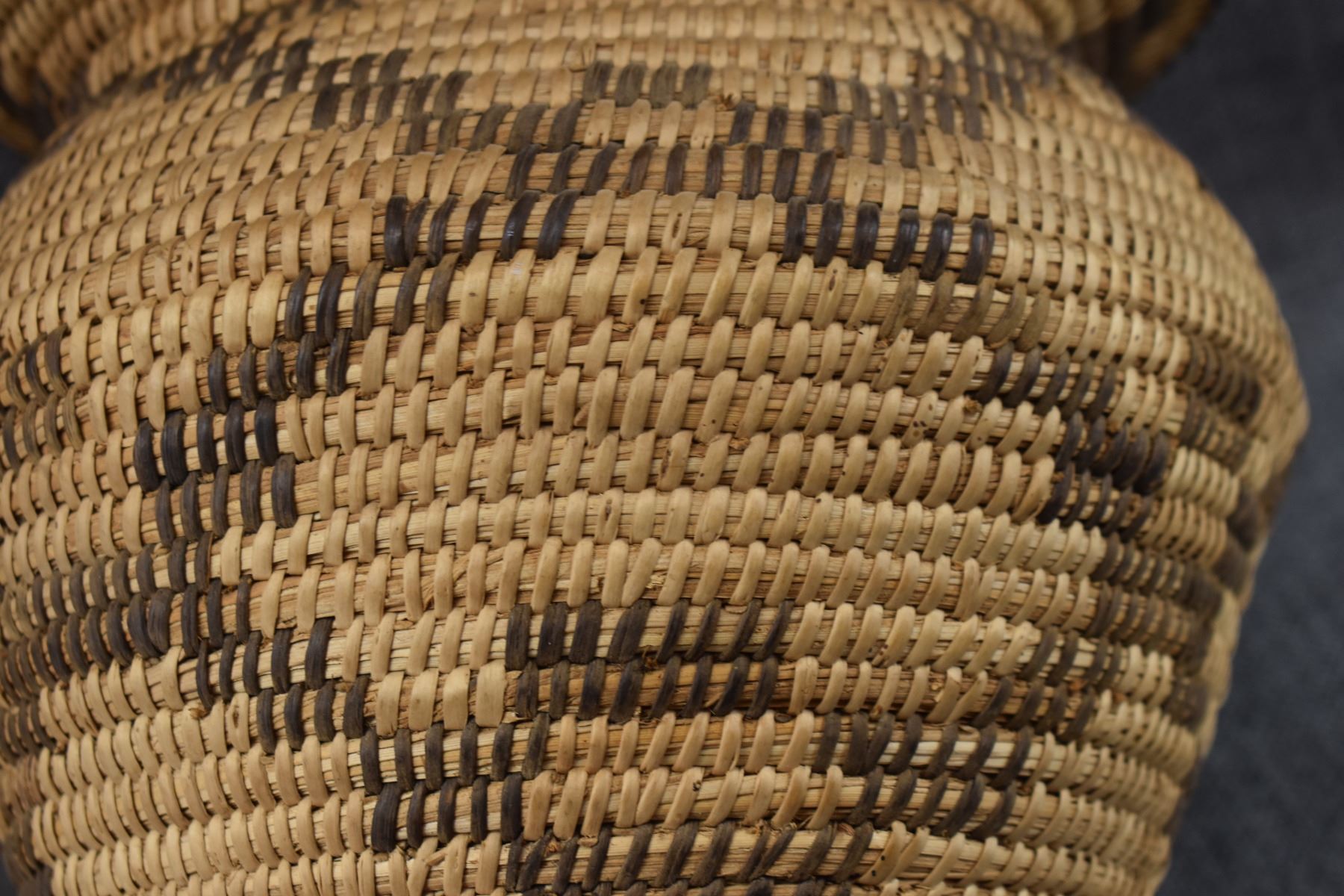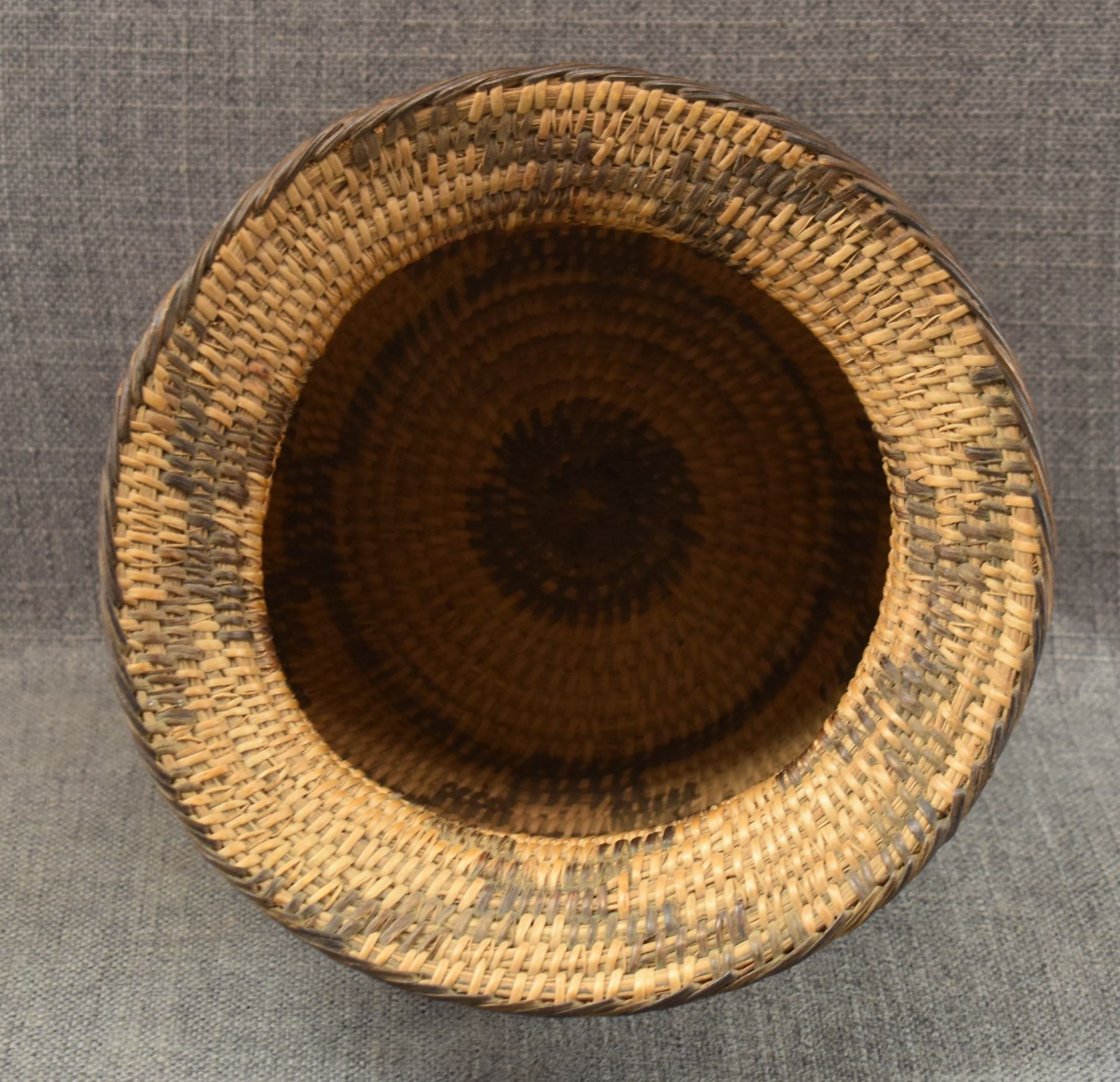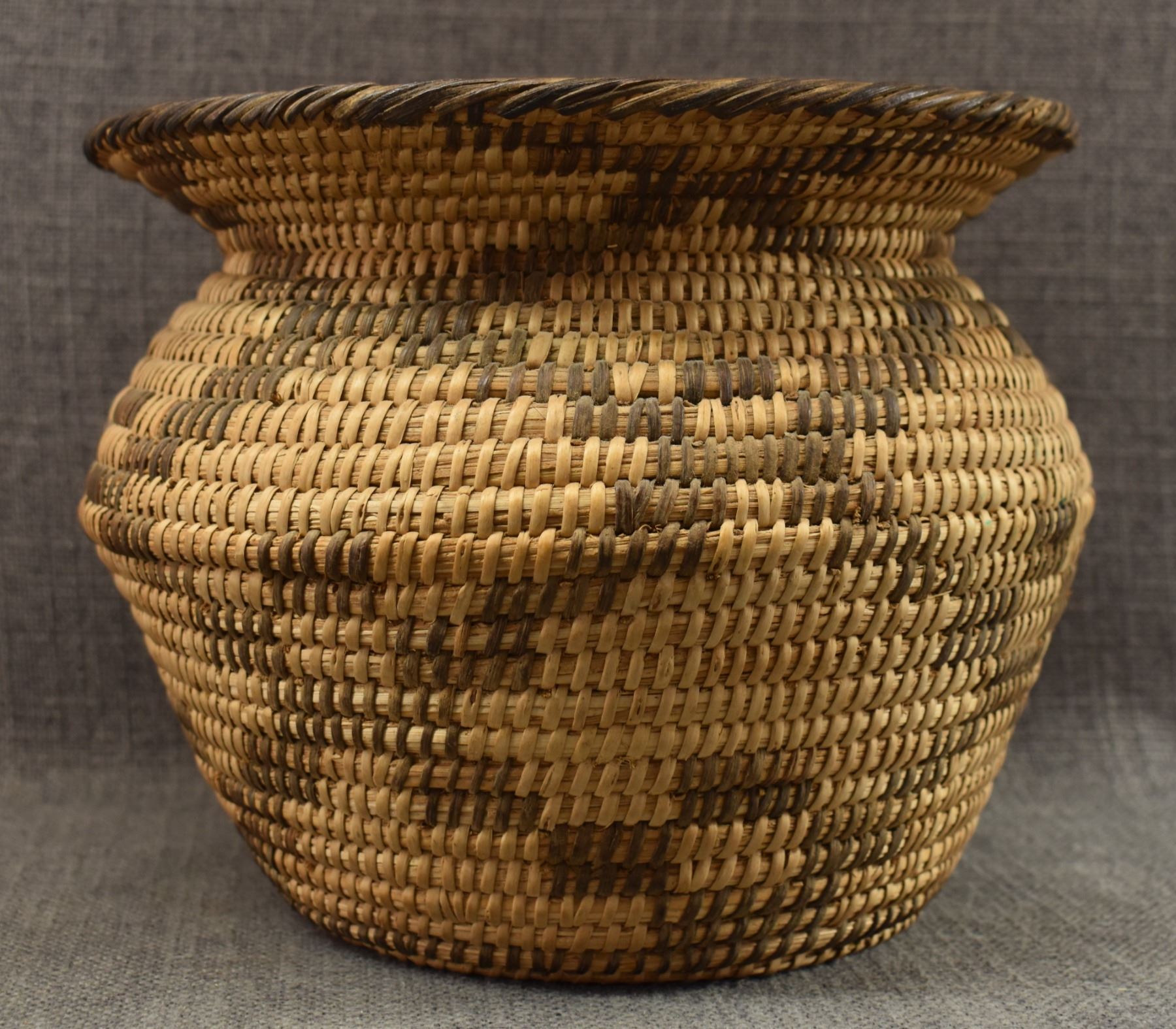 1960's Pima. Hand woven lazy stitch design basketry olla. 7'' x 9''