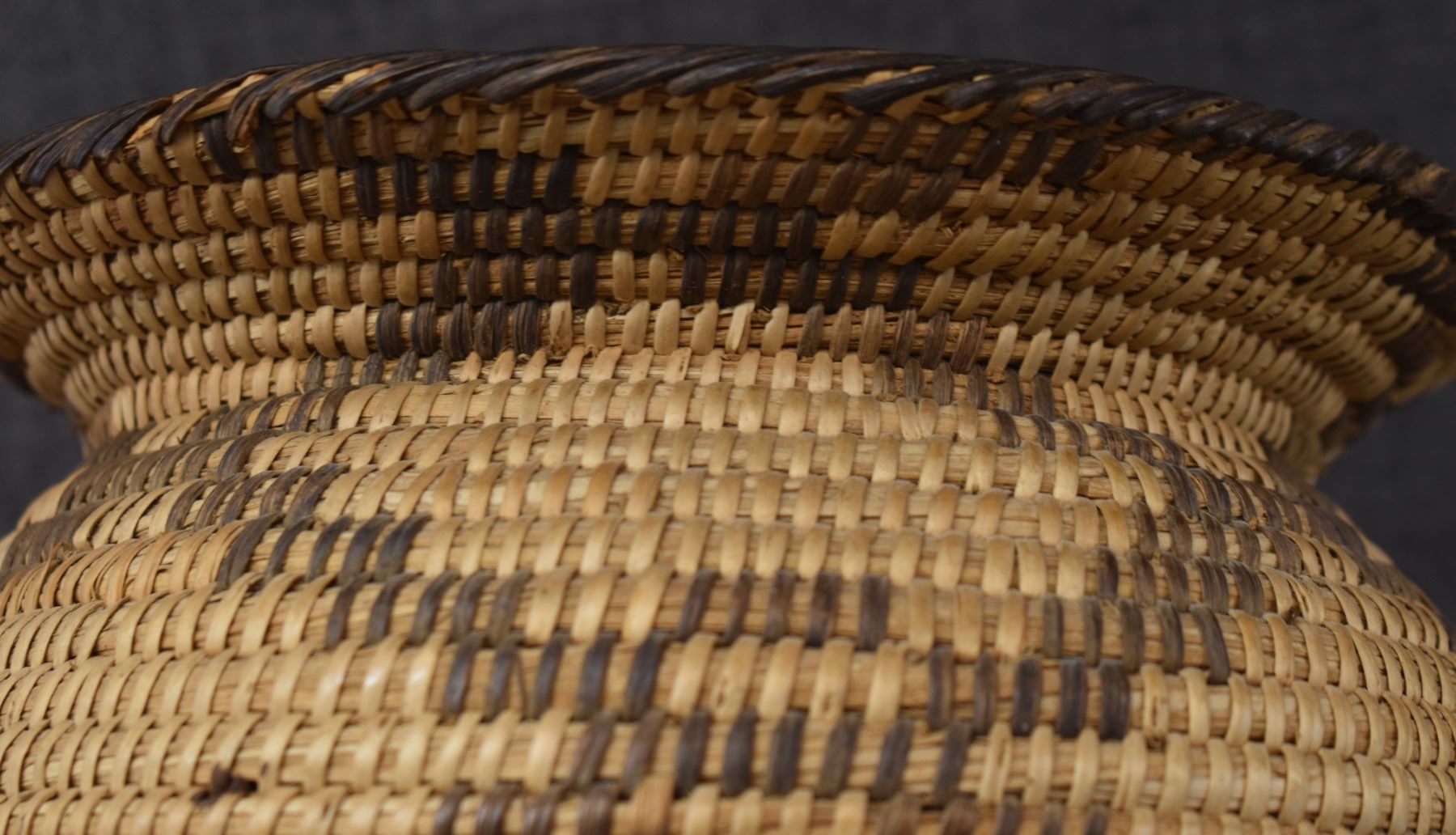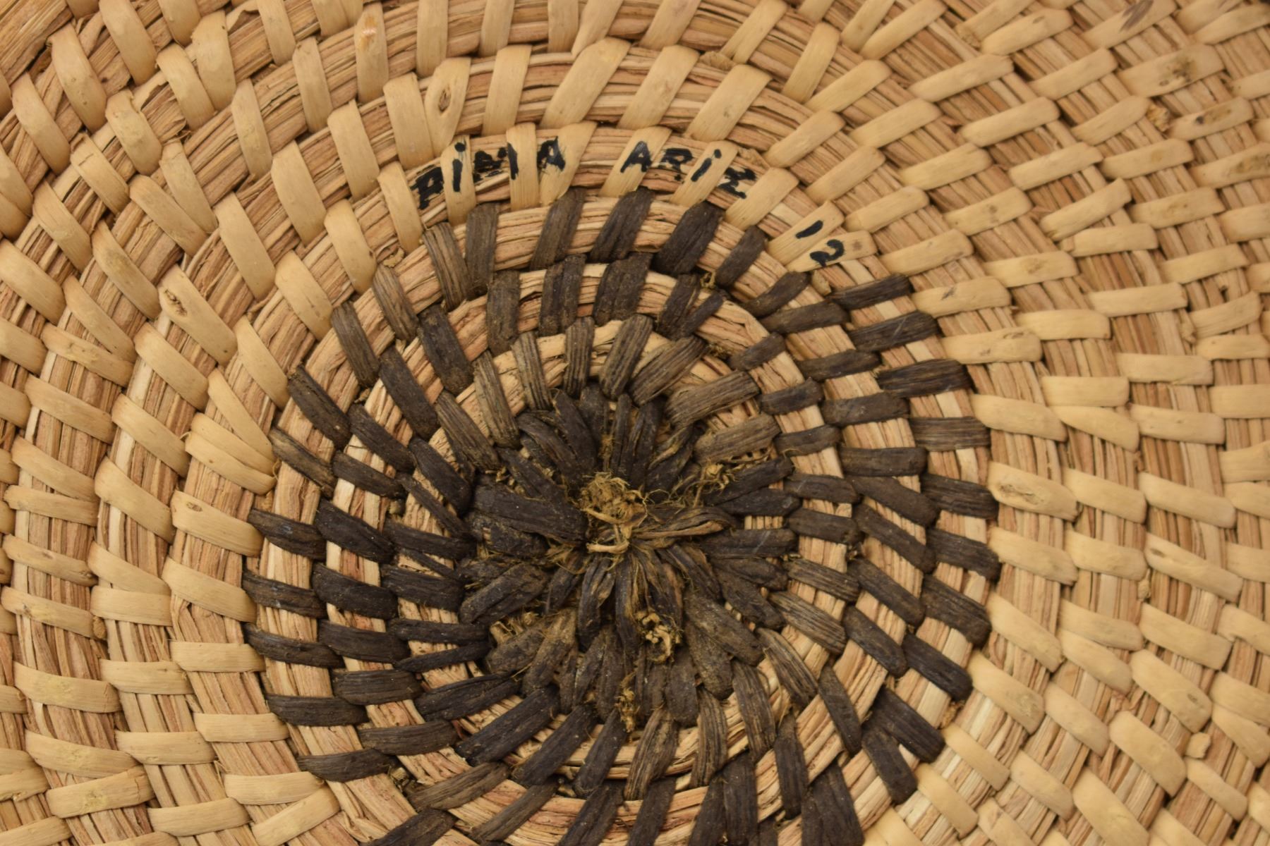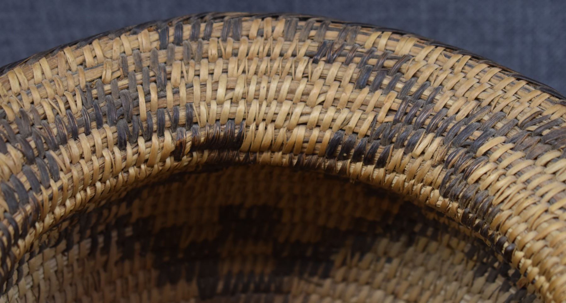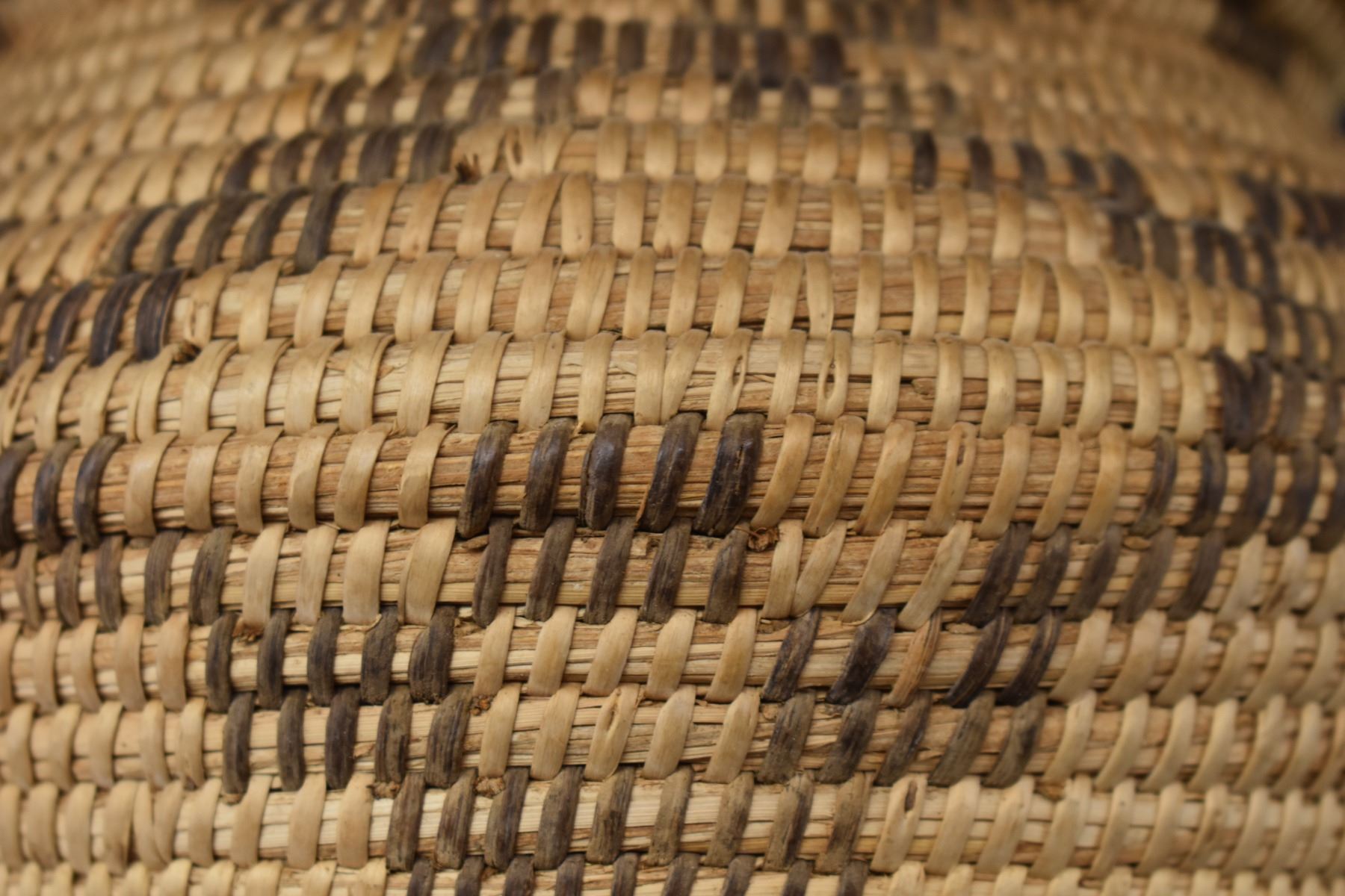 1960's Pima. Hand woven lazy stitch design basketry olla. 7'' x 9''
