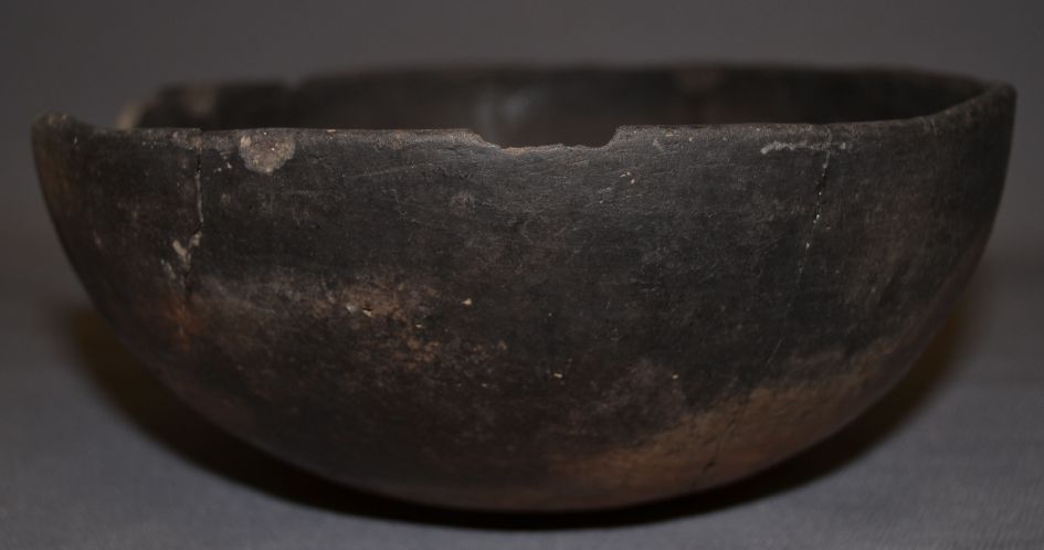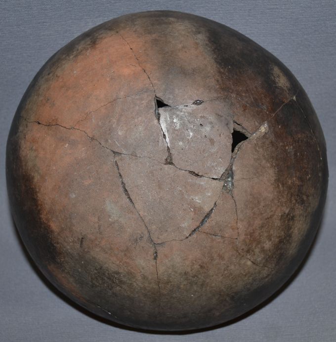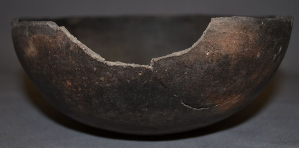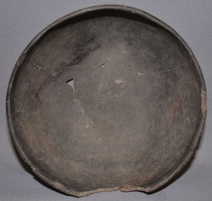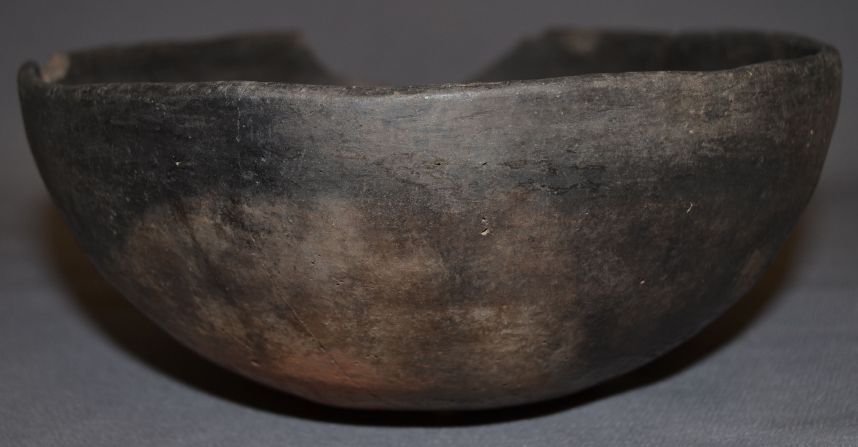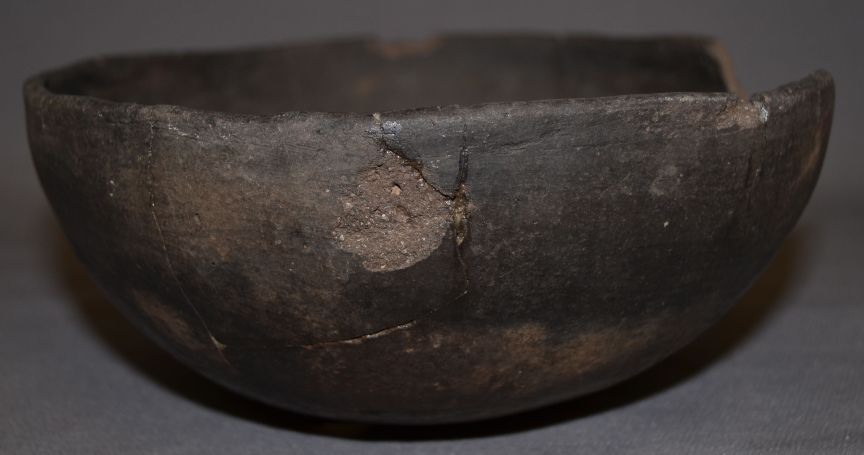 prehistoric plain ware has been broken and glued missing pieces 3.75"x9""