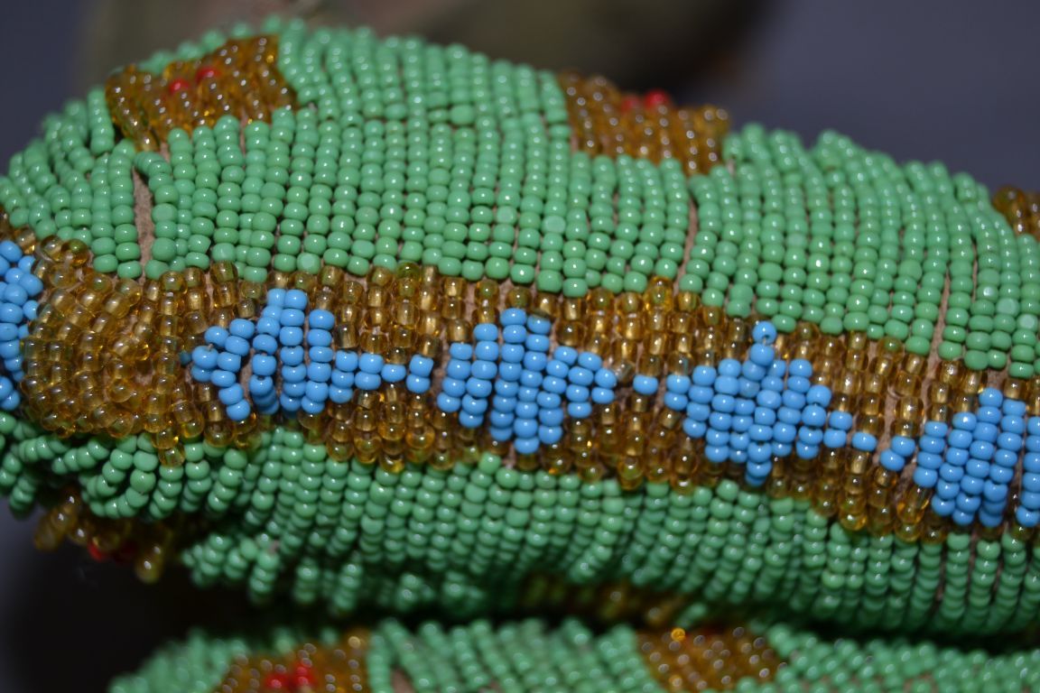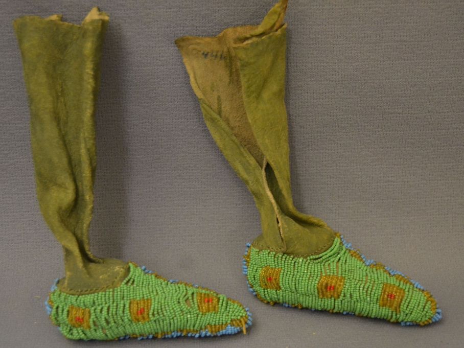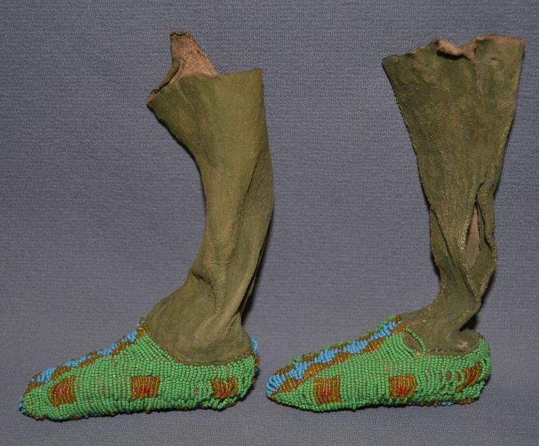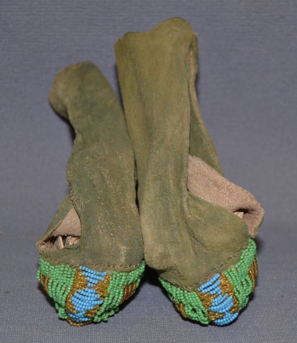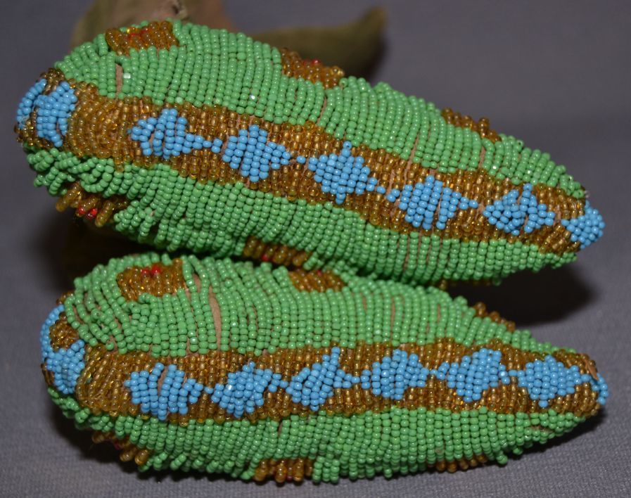 1930's beaded geometric design on native tanned hide, 7"x 4" x 1.5"