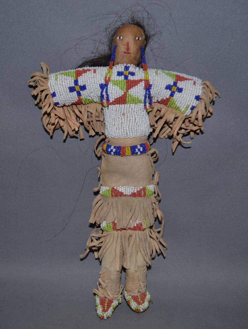 1960s 70s partially beaded, hair is made with horsehair  12" x 7" x 2"