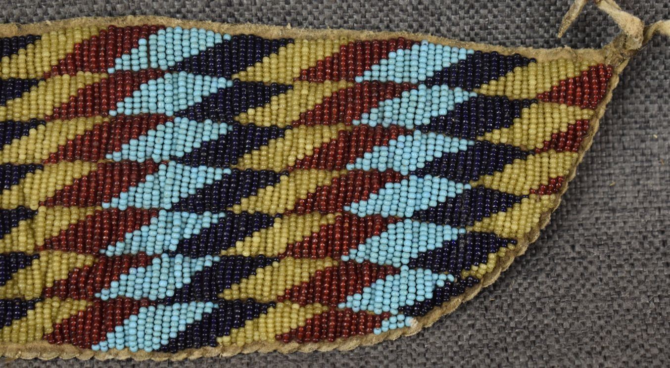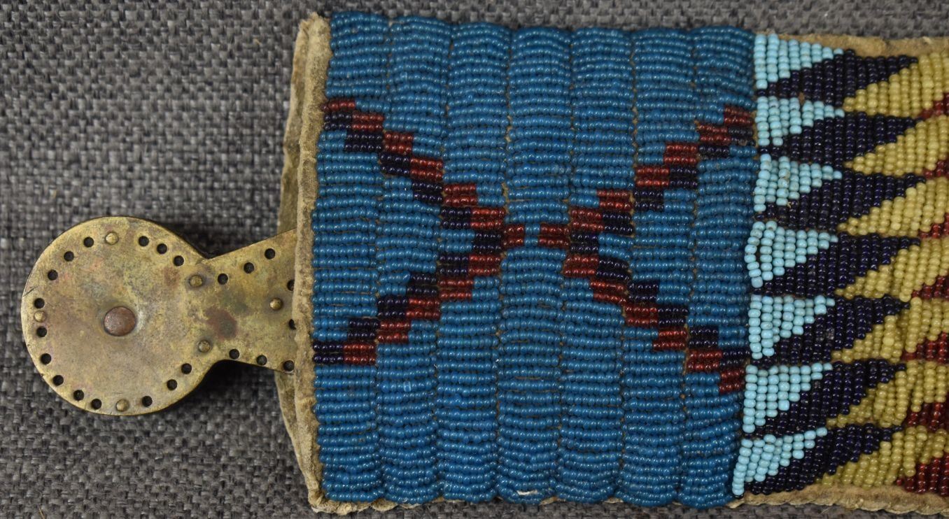 1900's Plains. Sinew sewn beaded design knife sheath 10'' x 3.5'' and dag knife 12'' long