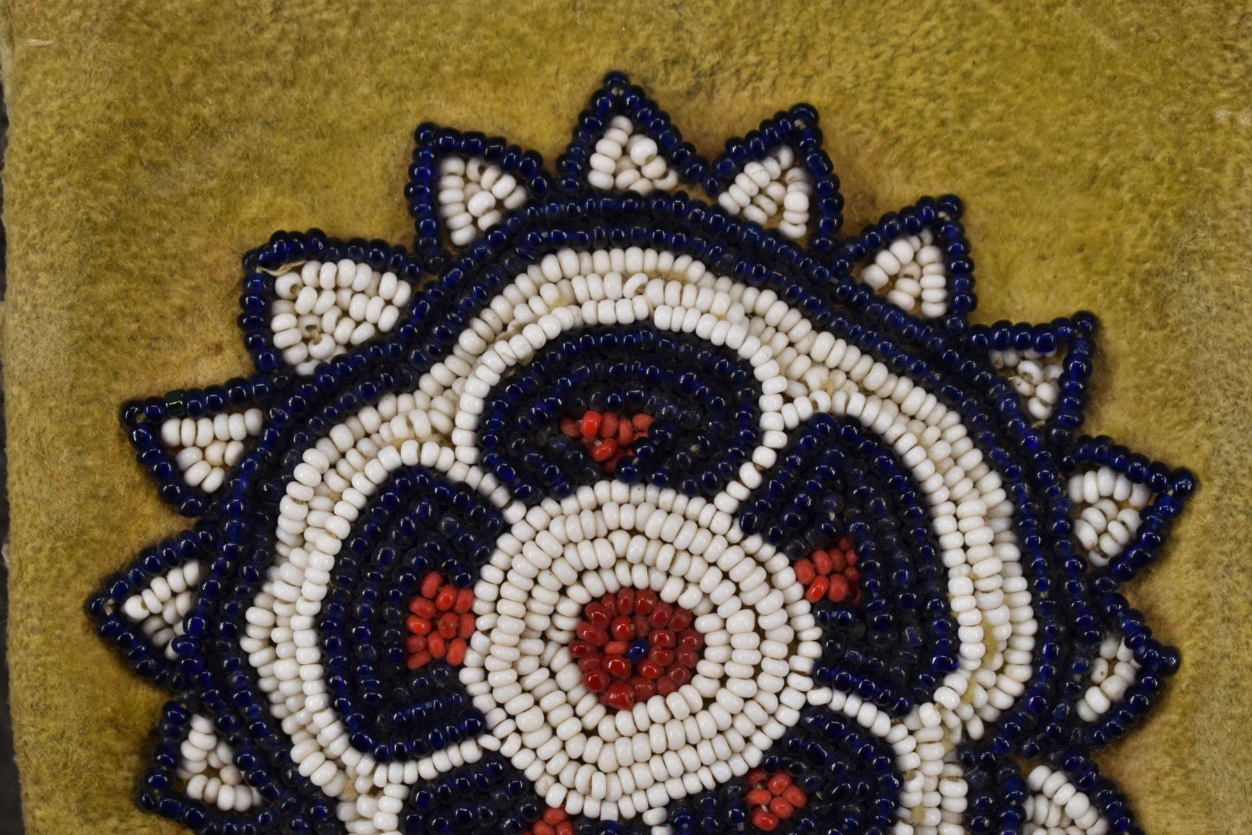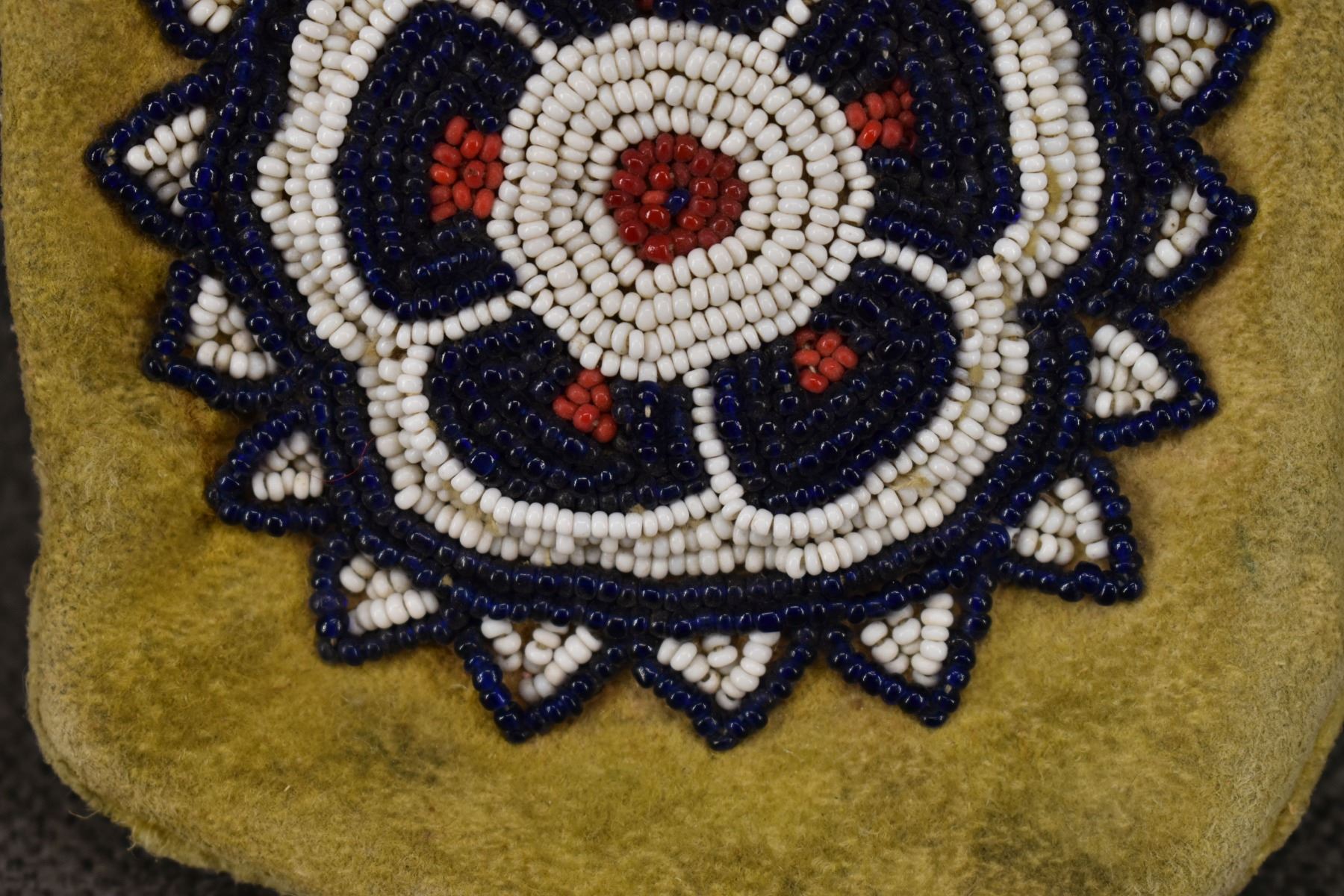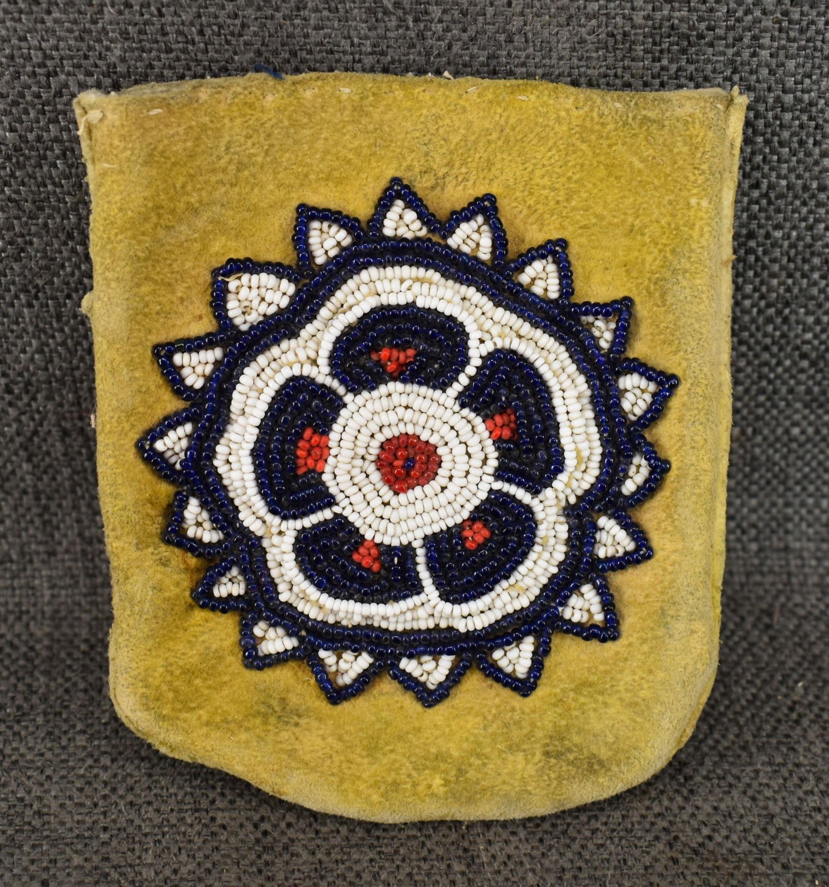 20th century plains Indian, hand made from native tanned leather with thread sown beaded floral design 5" x 4"
