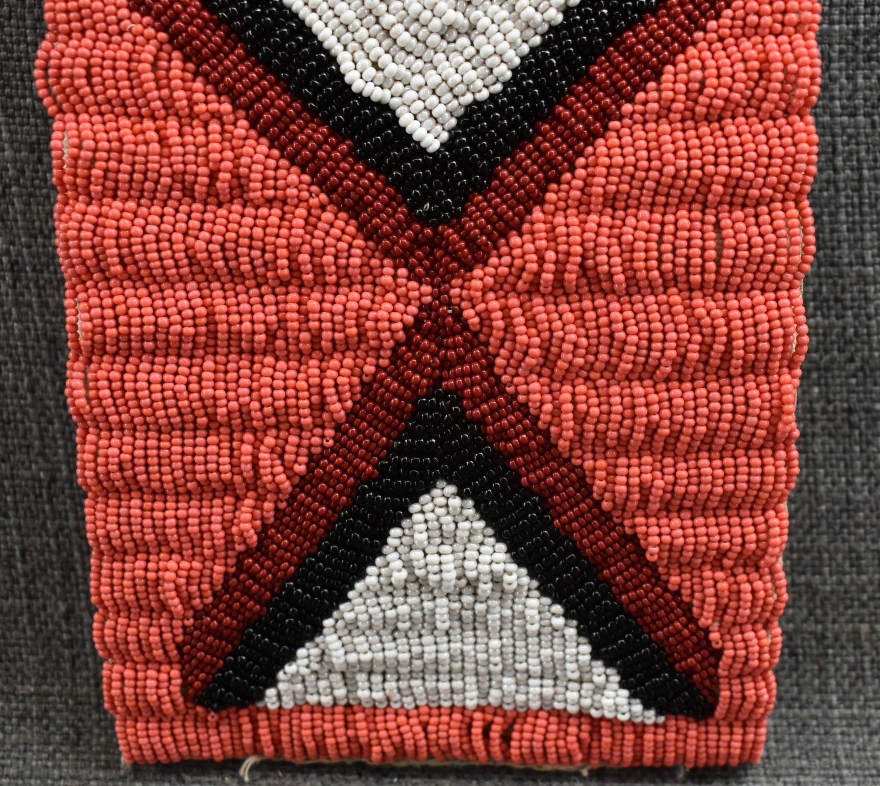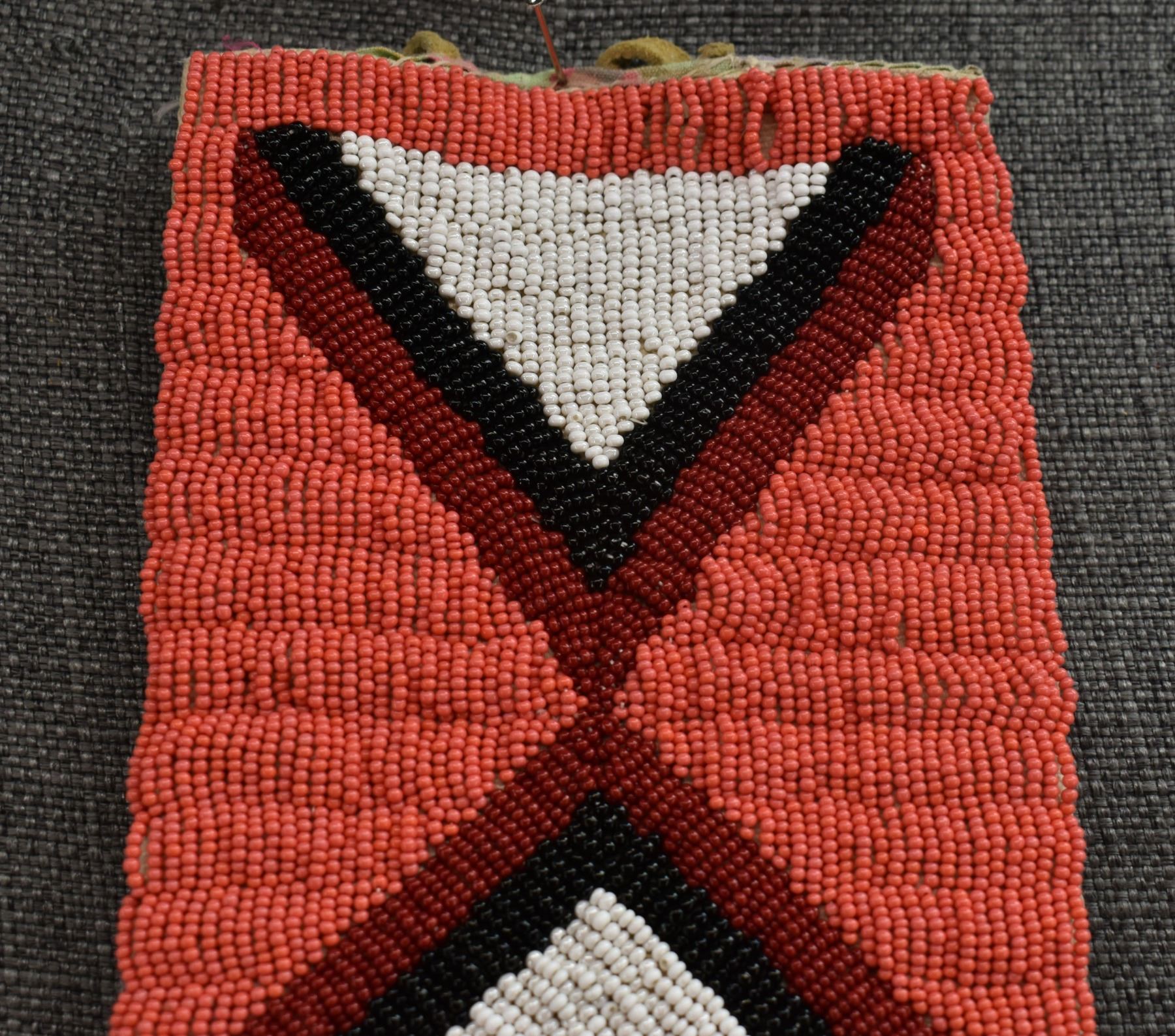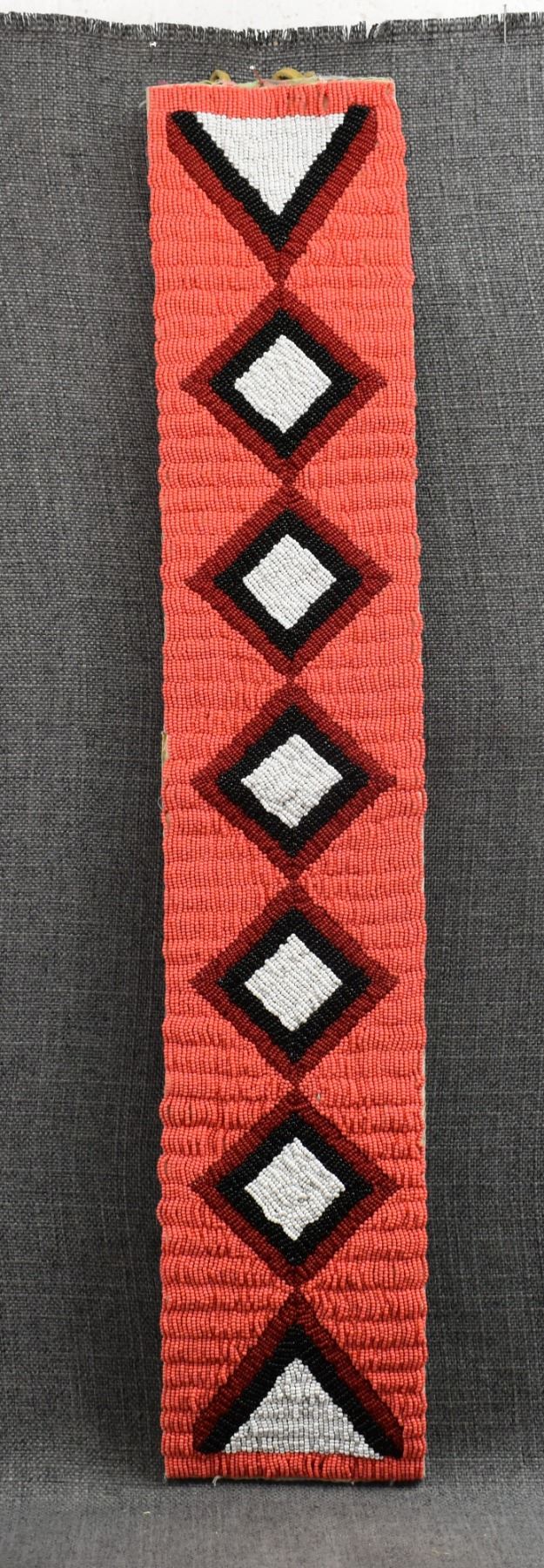 20th century plains Indian, thread sown beaded design on canvas with cloth backing. 5" x 26.75"