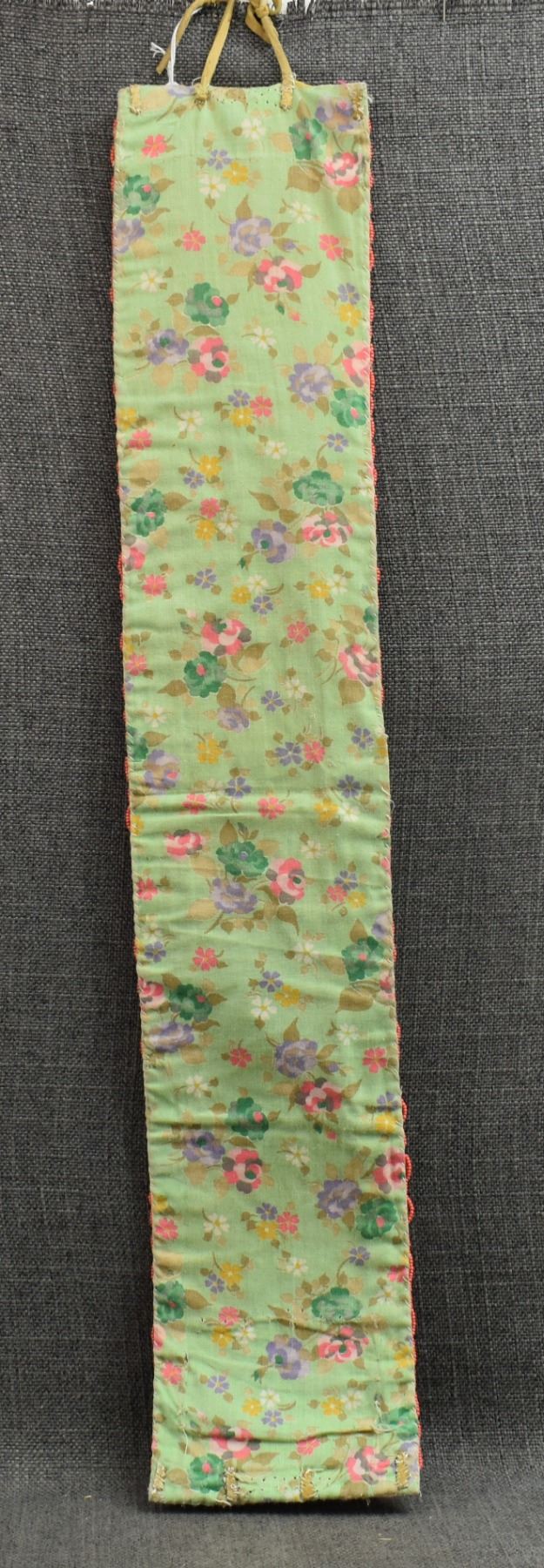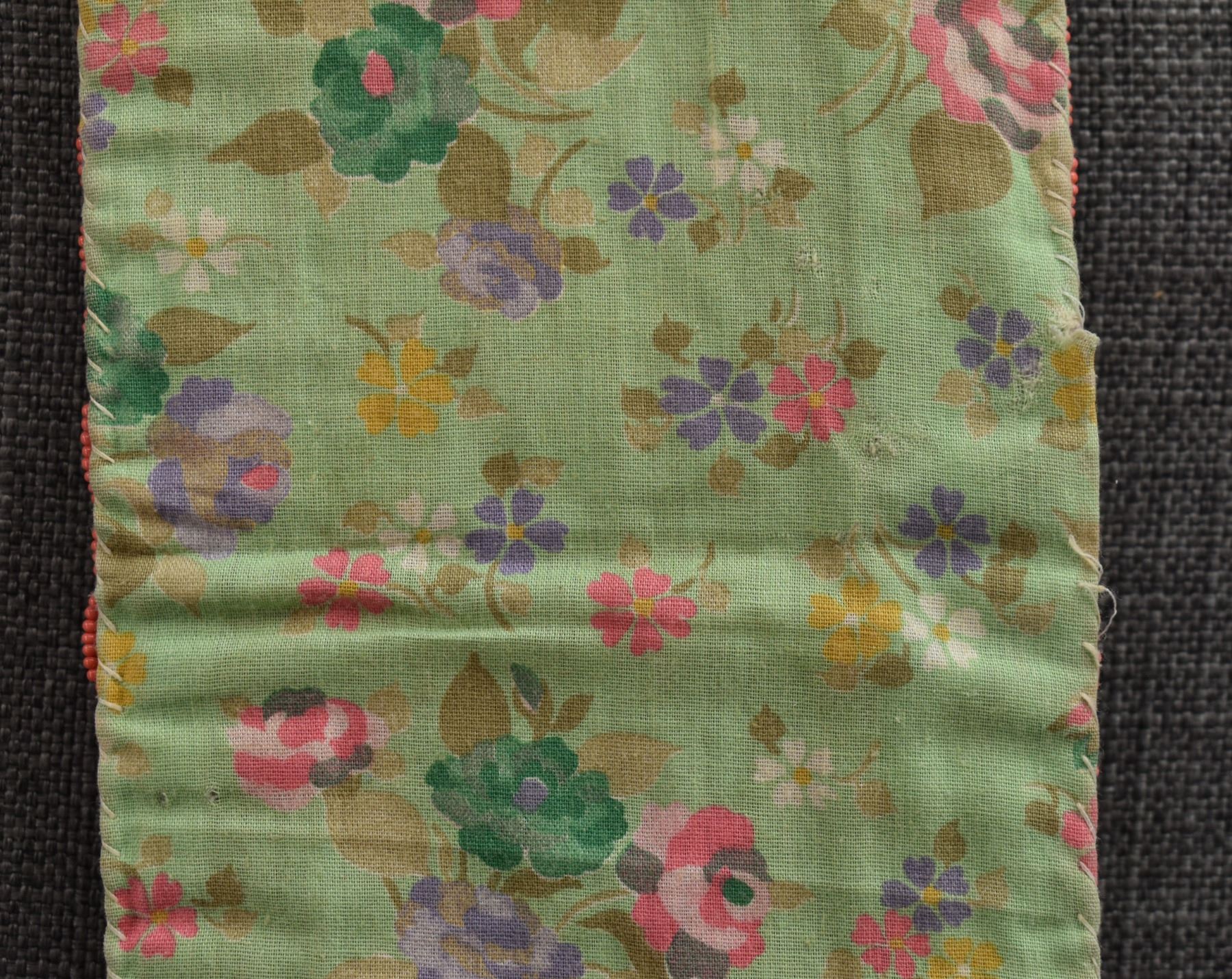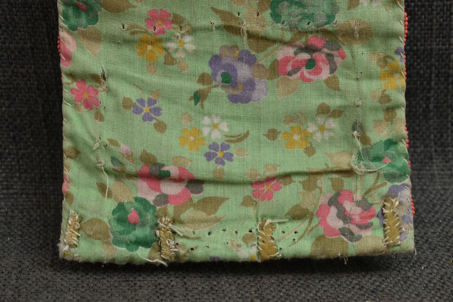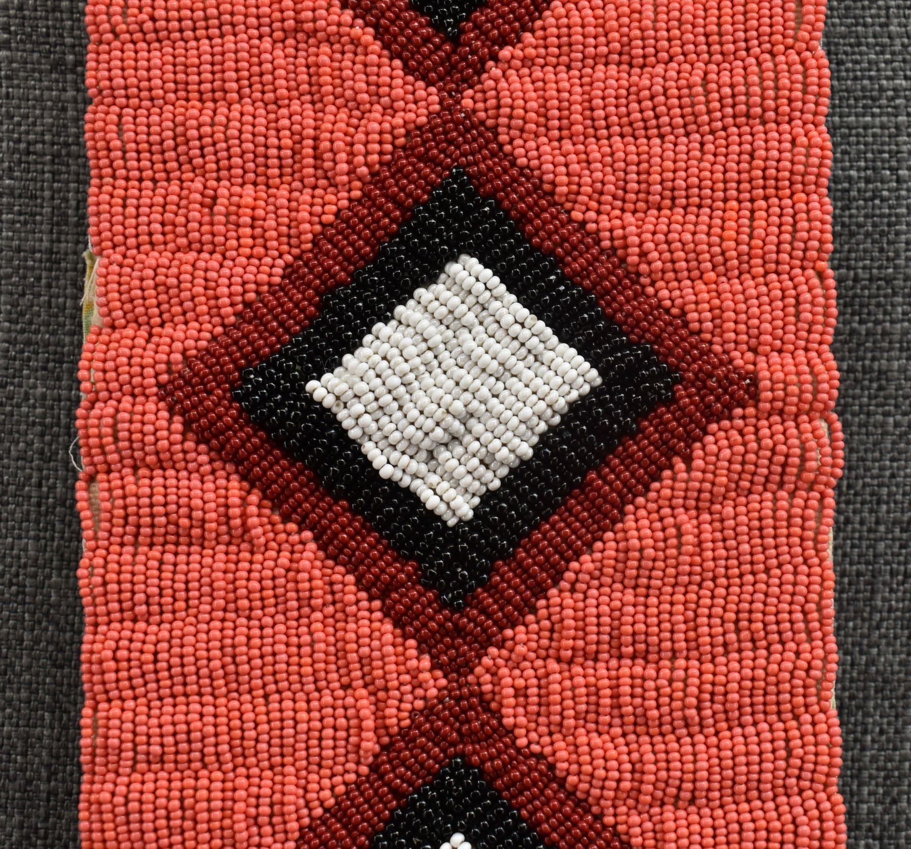20th century plains Indian, thread sown beaded design on canvas with cloth backing. 5" x 26.75"