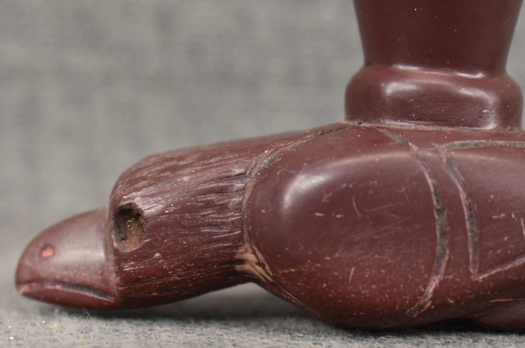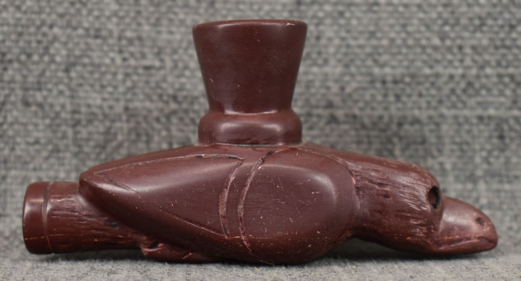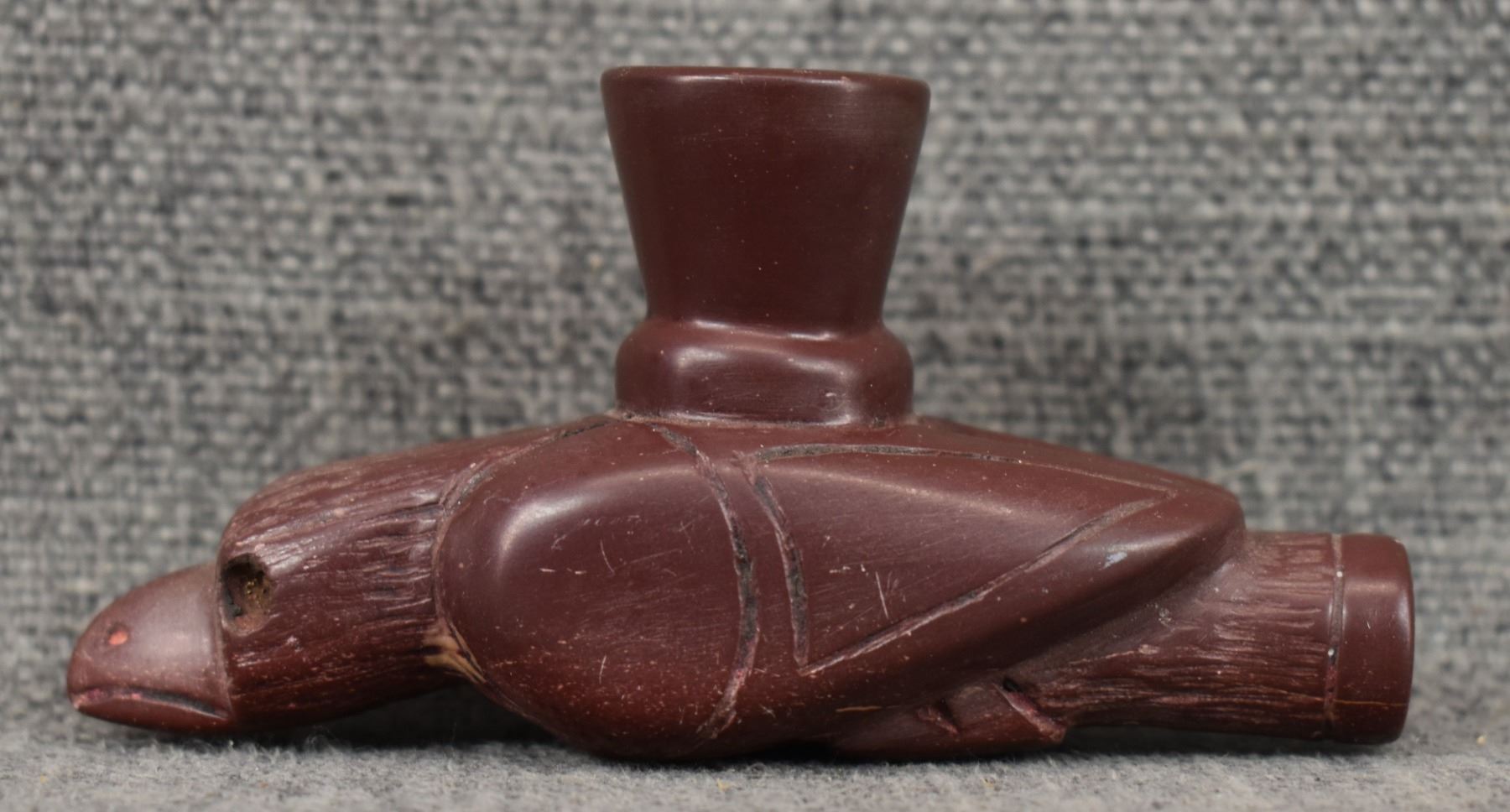 20th century plains Indian, carved stone bird effigy pipe 2" x 4" x 1.25"