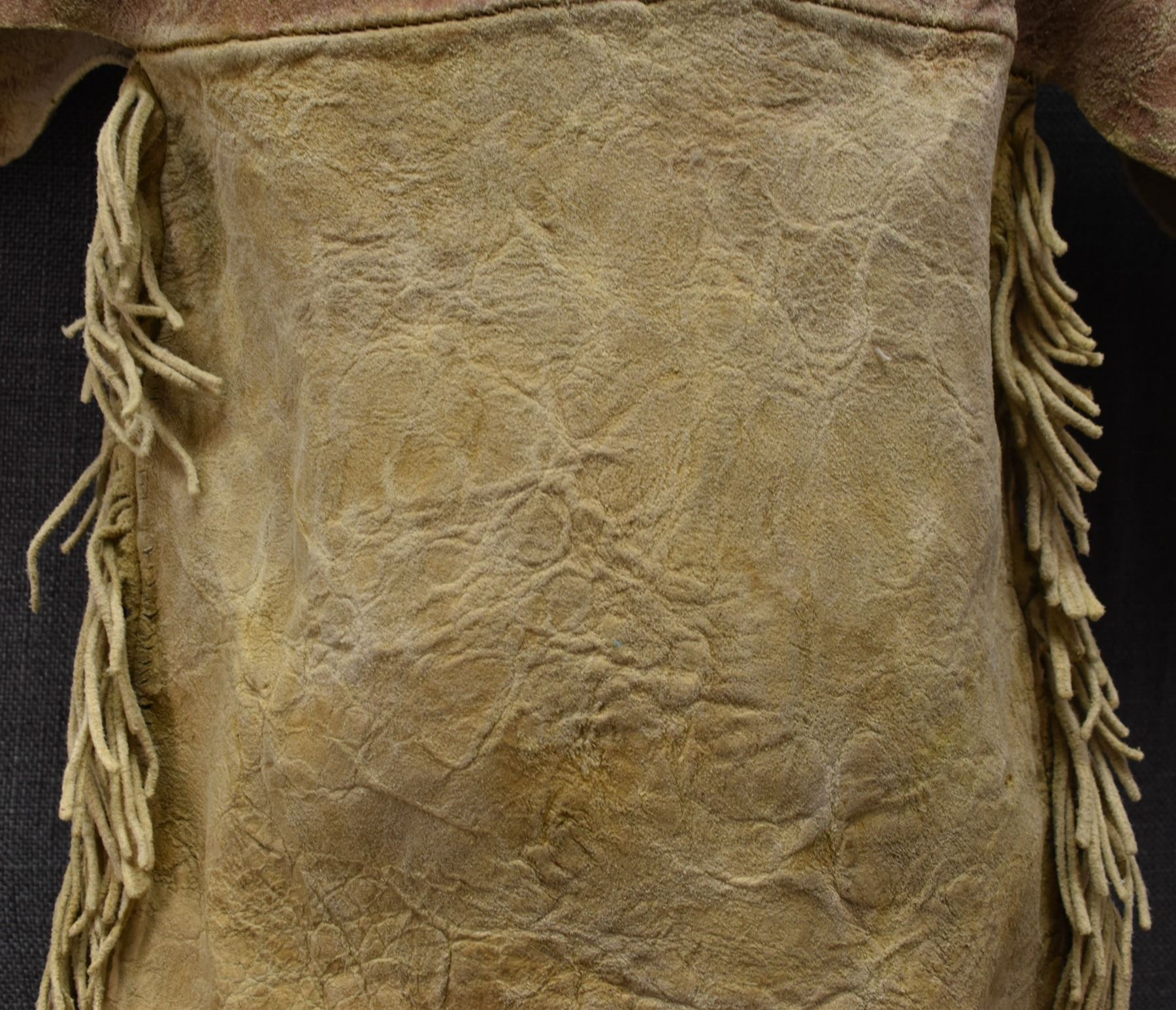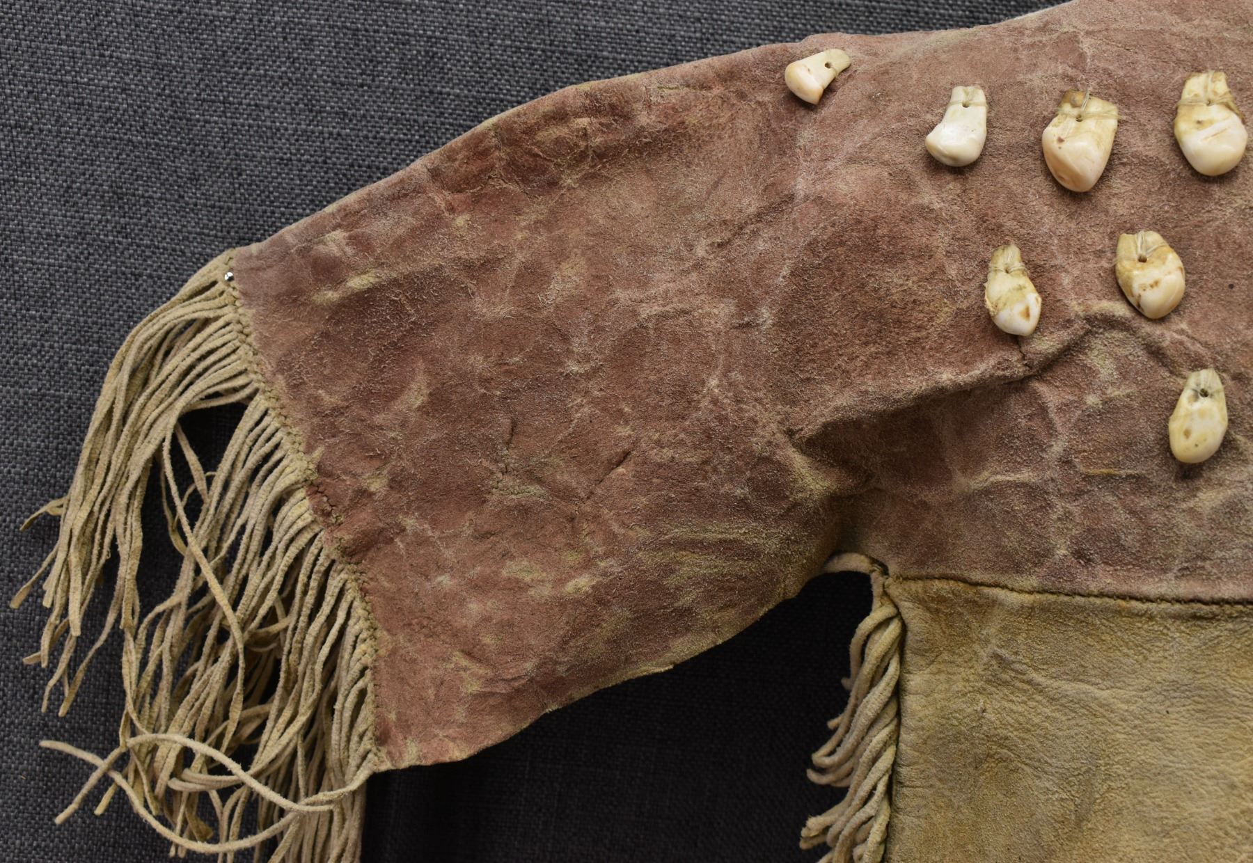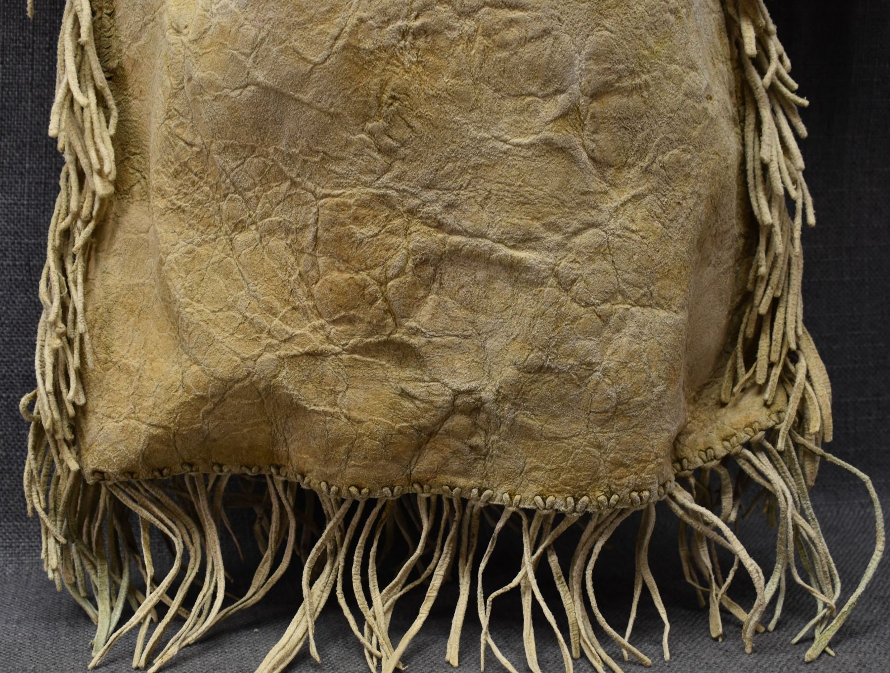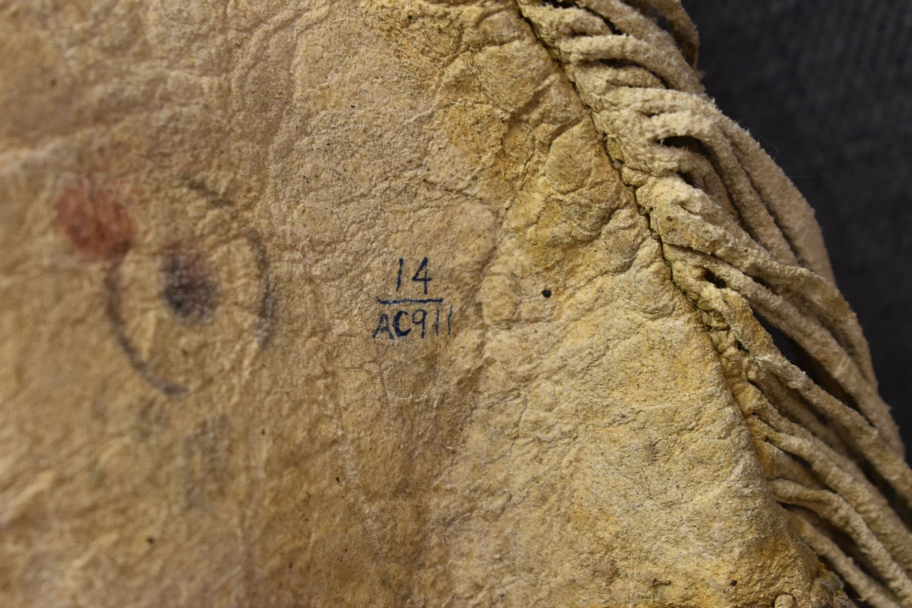 1900's Plains. Painted and elk tooth design on native tanned leather. 19'' x 14''