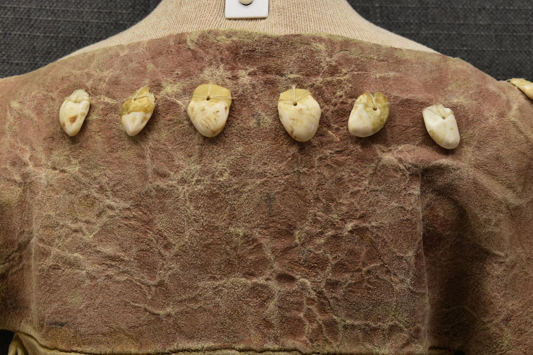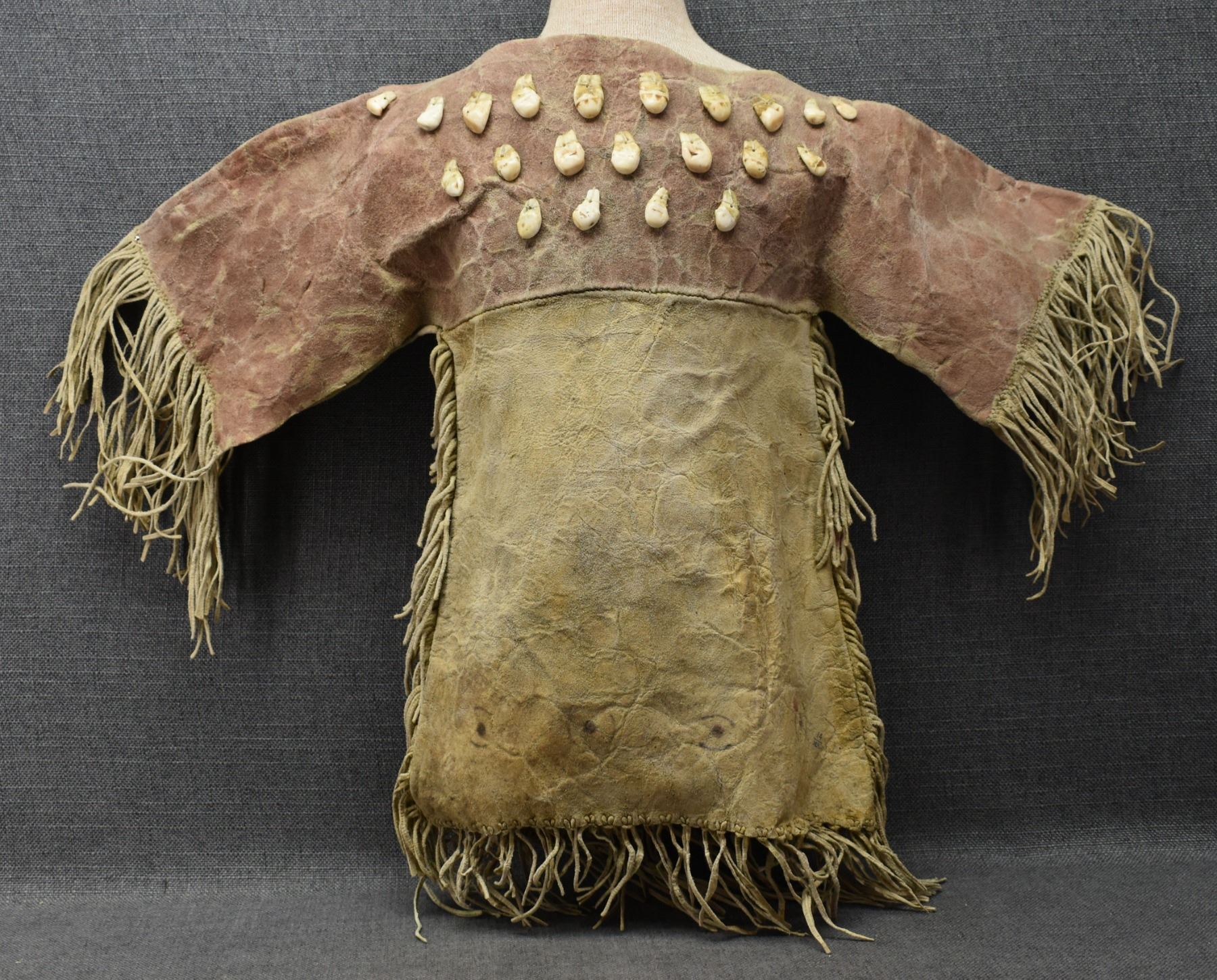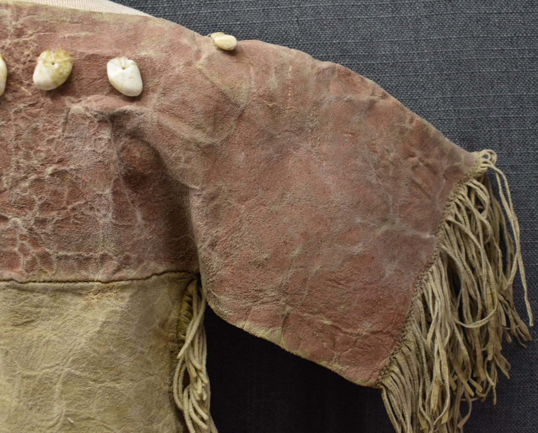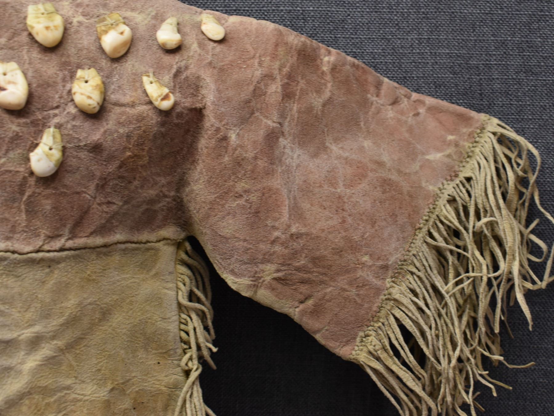 1900's Plains. Painted and elk tooth design on native tanned leather. 19'' x 14''