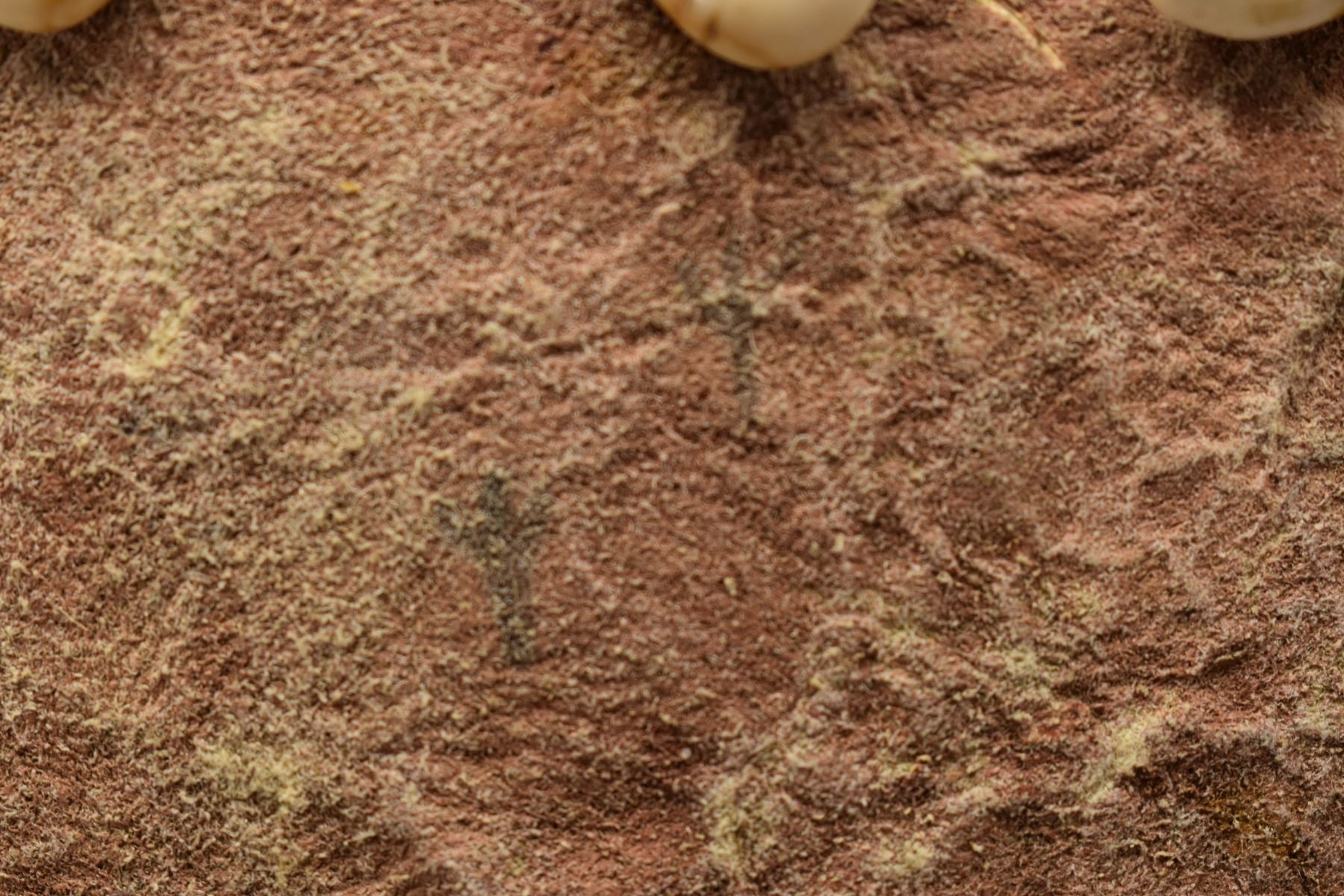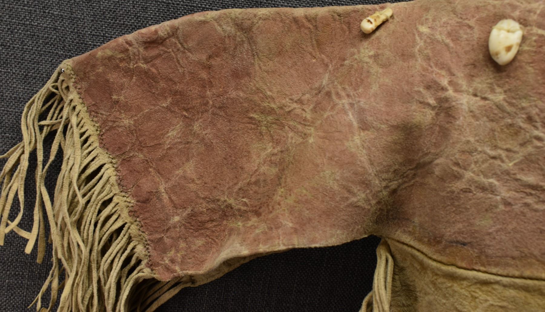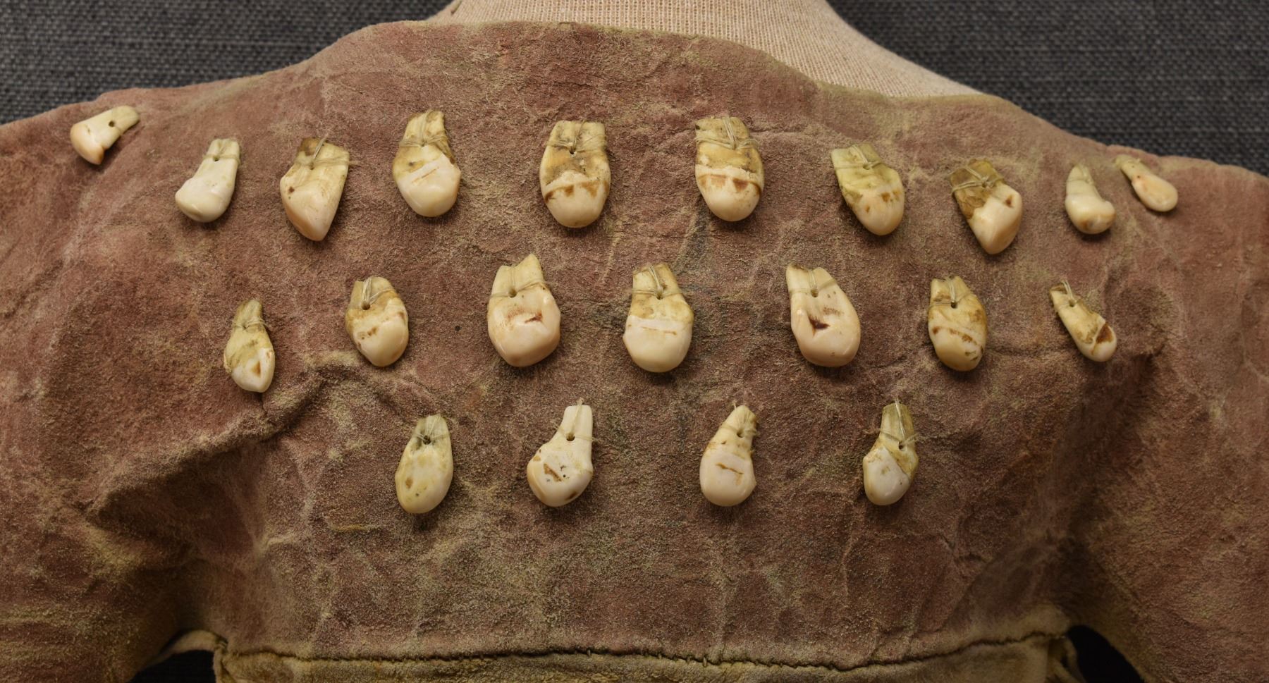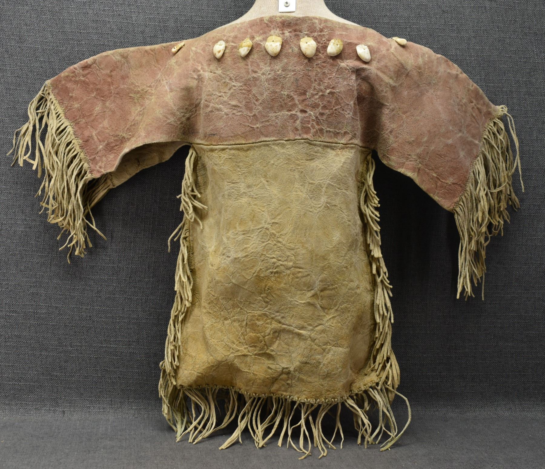 1900's Plains. Painted and elk tooth design on native tanned leather. 19'' x 14''