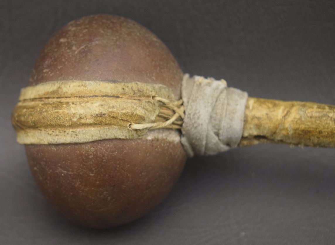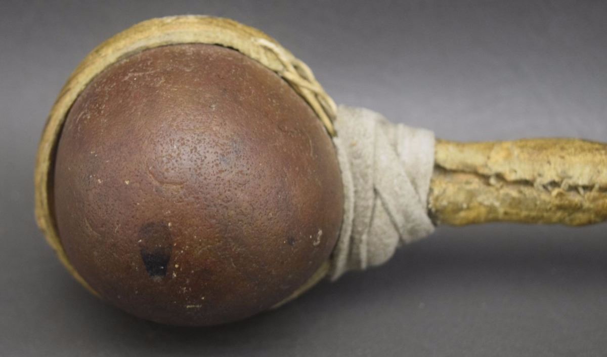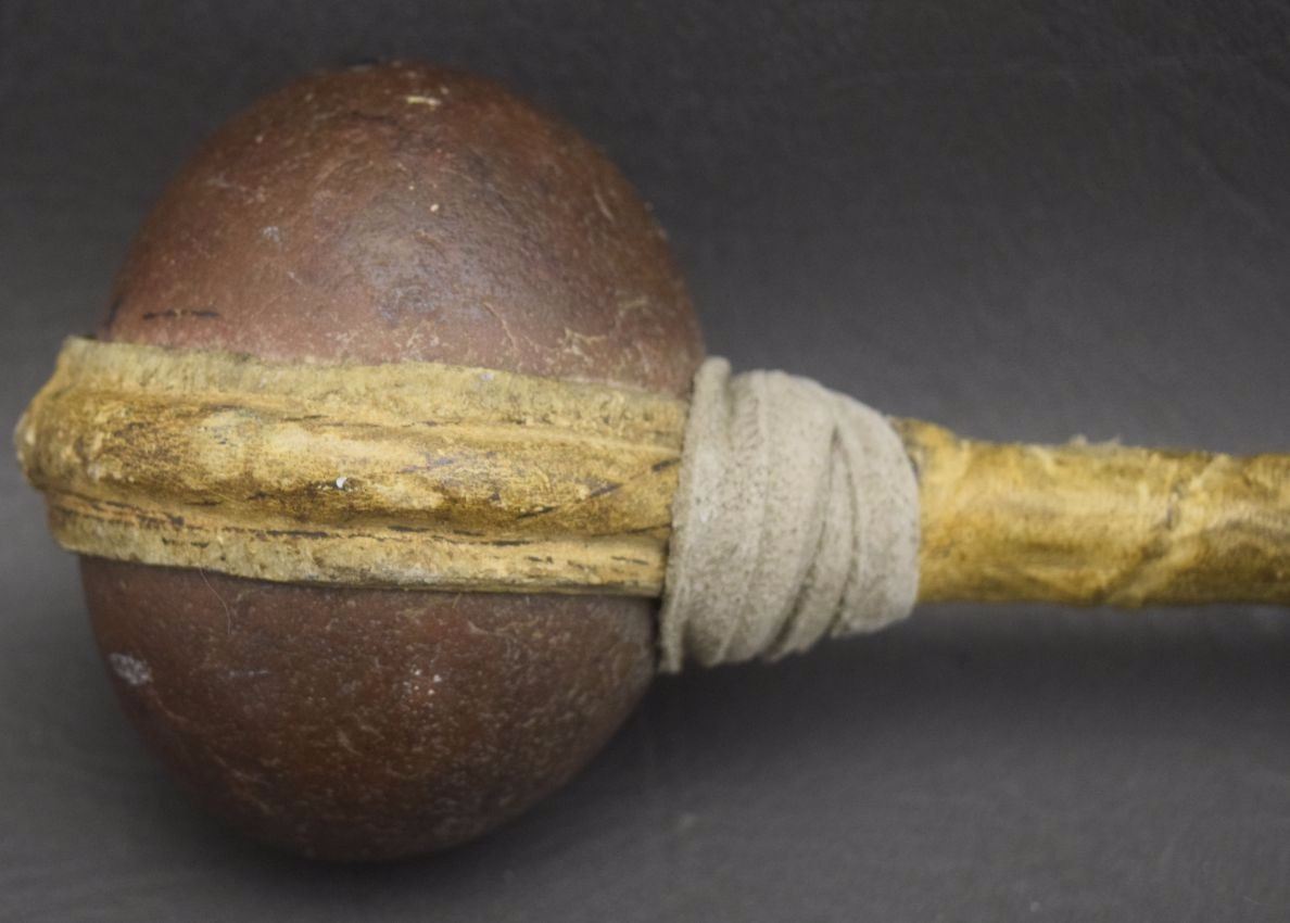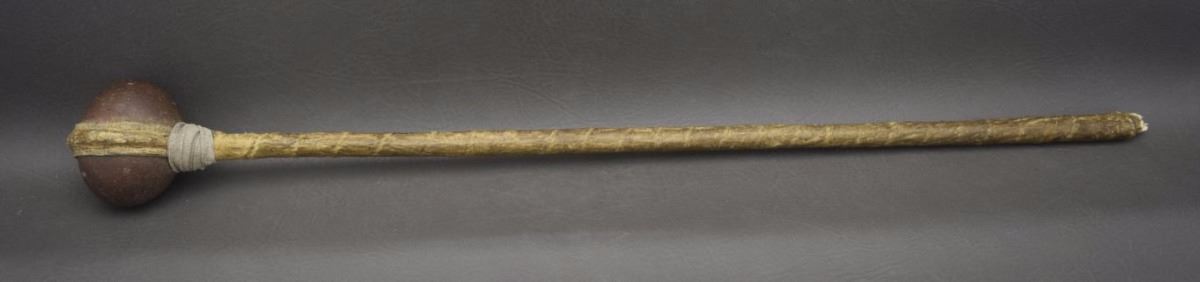 1920's raw hide wrapped wooden handle and stone head 29'' long
