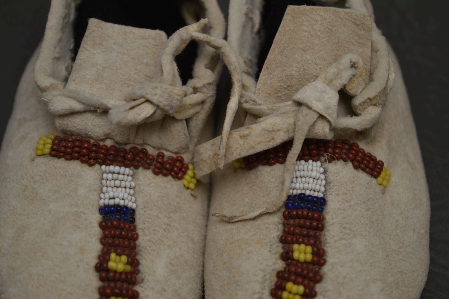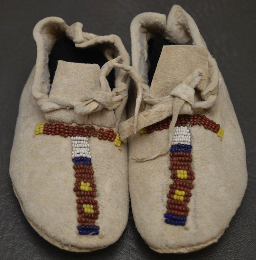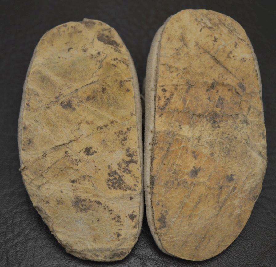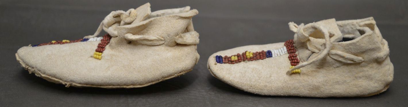 1920's sinew sown beaded design on native tanned hide. 1.5'' x 4'' x 2''