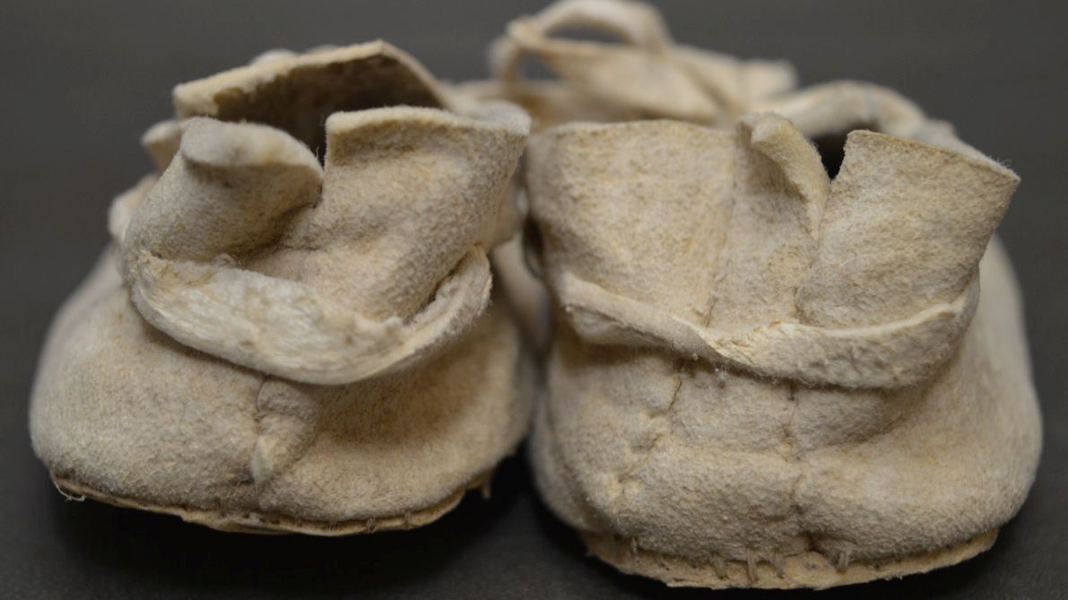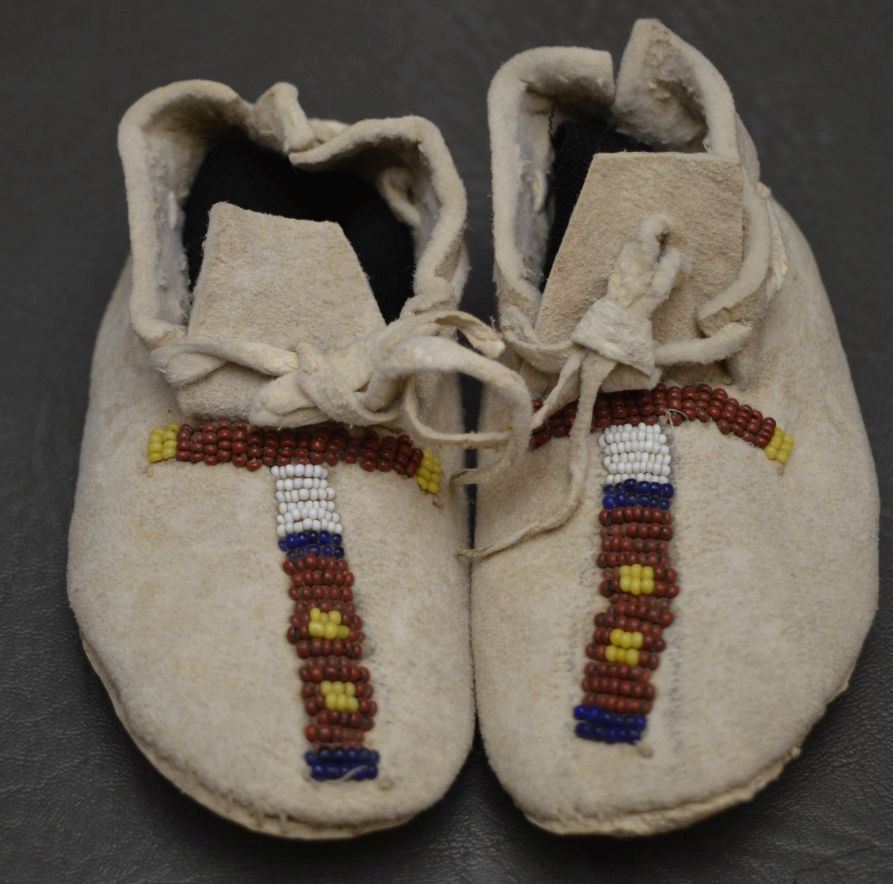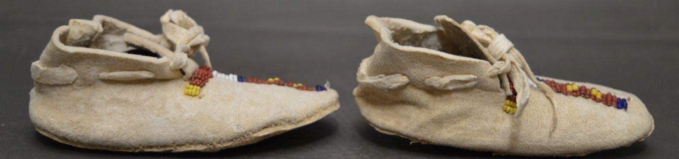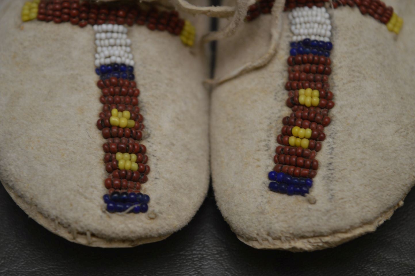 1920's sinew sown beaded design on native tanned hide. 1.5'' x 4'' x 2''