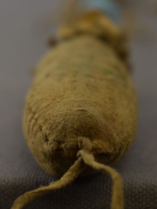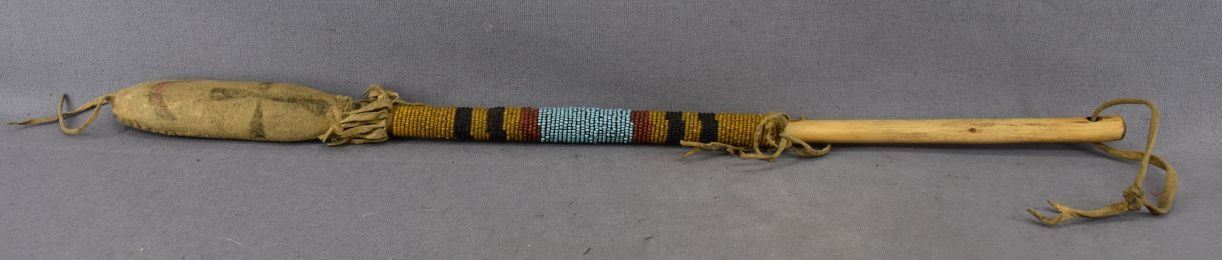1940's plains Indian. Beaded design on wooden handle drum beater. 19'' long