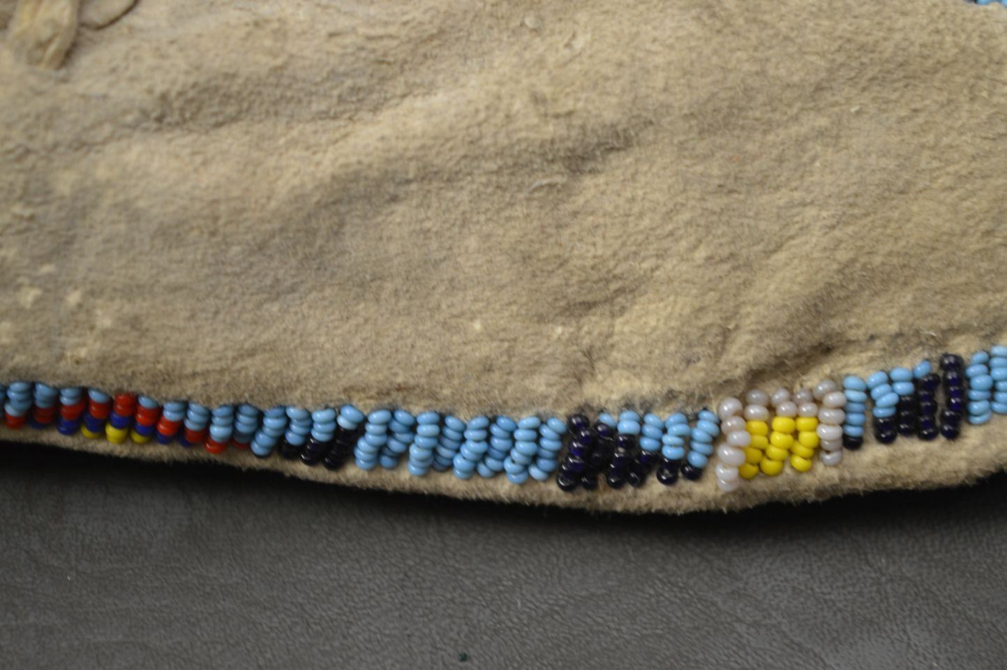 1920's Plains Indian. Sinew sewn beaded design on native tanned hide. 3'' x 9'' x 3 1/2''