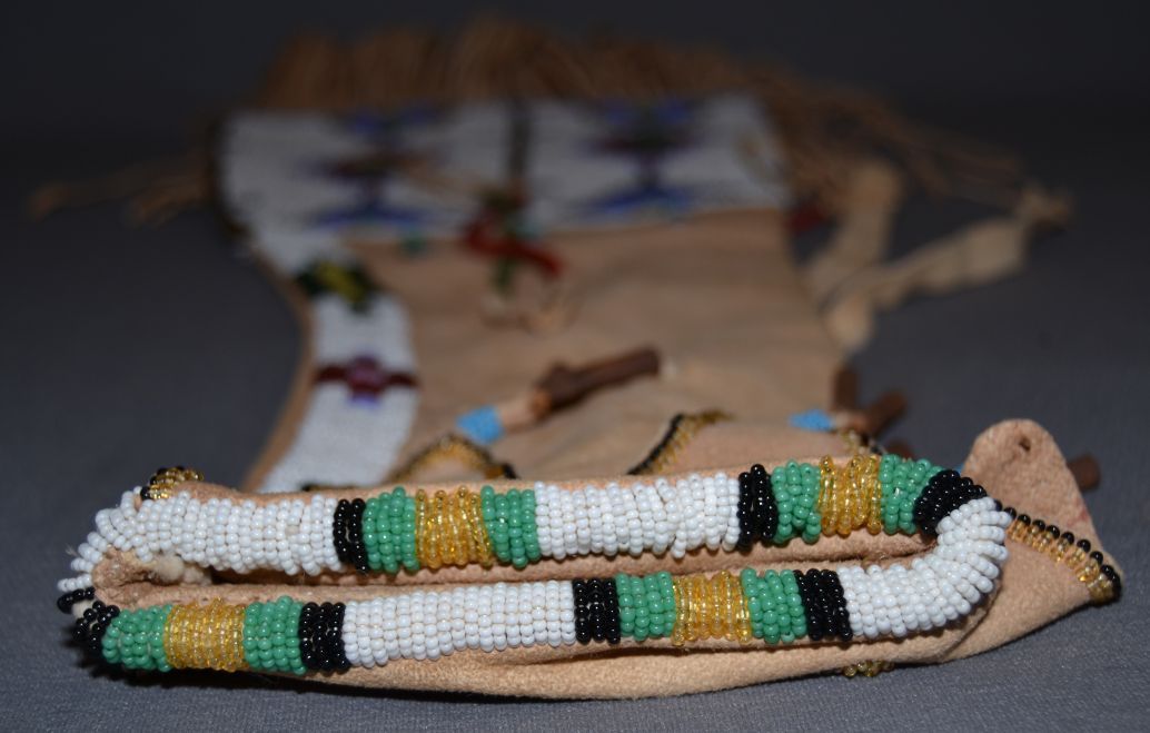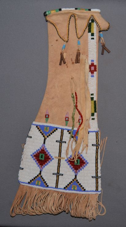 1960s 70s beaded on leather 17"x8" not including fringe