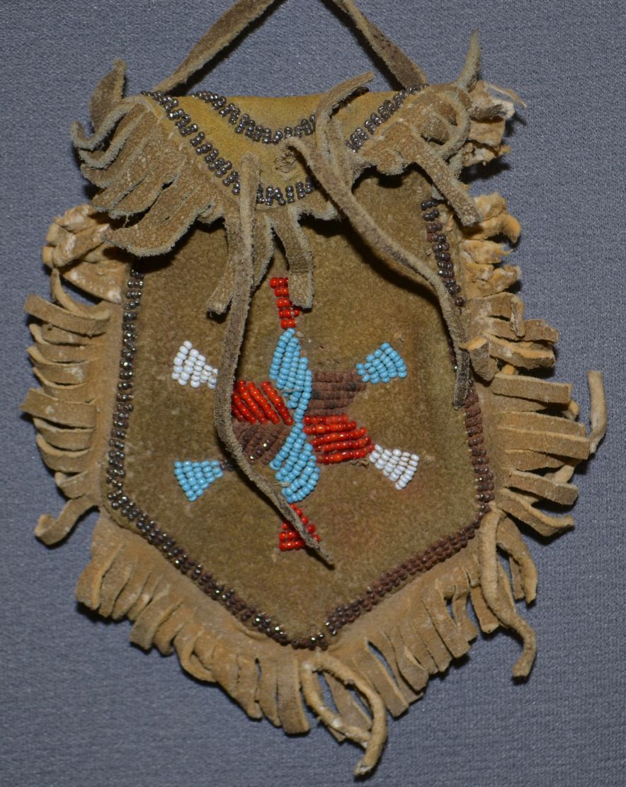 1950s 60s partial beaded front minor bead loss damage on fringe 5"x4.25" including fringe