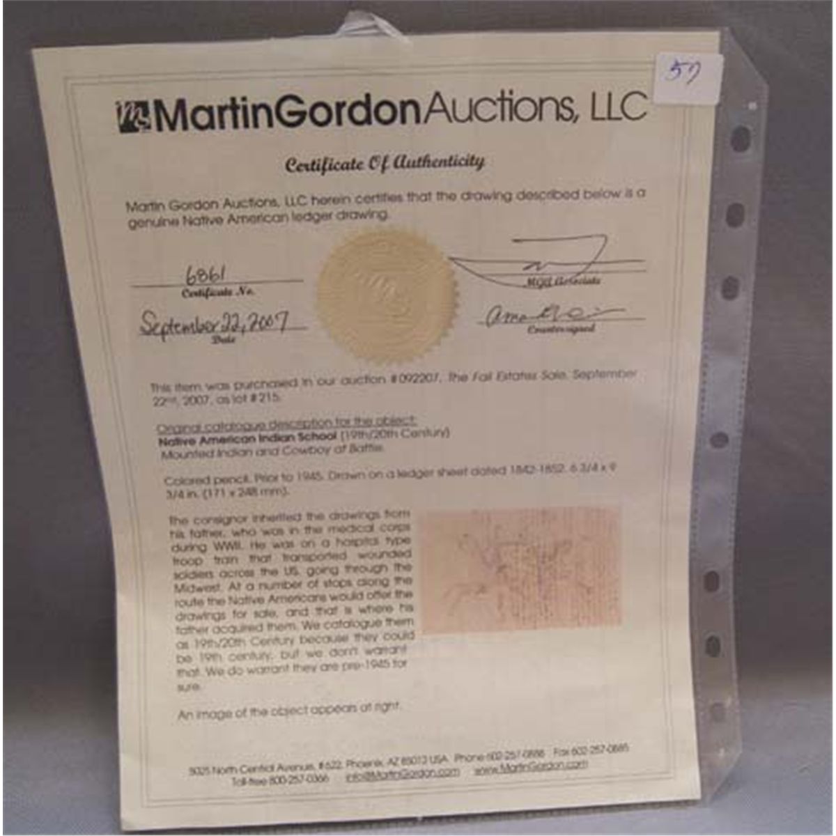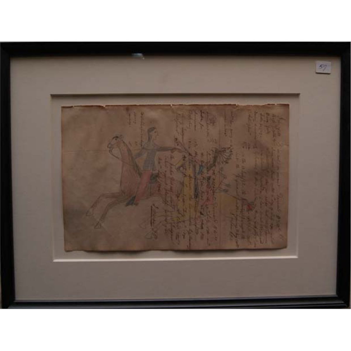 1940's depicting warriors fighting, with letter of authenticity, 8" x 12.5"