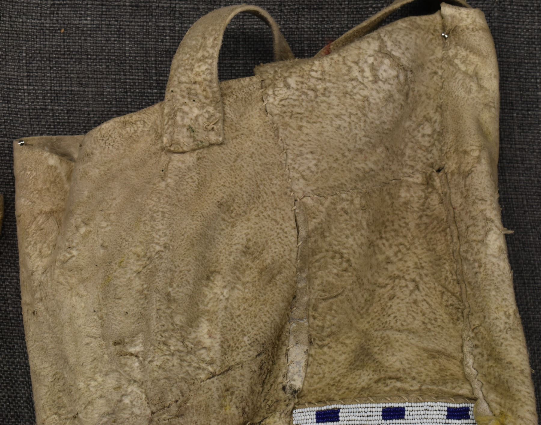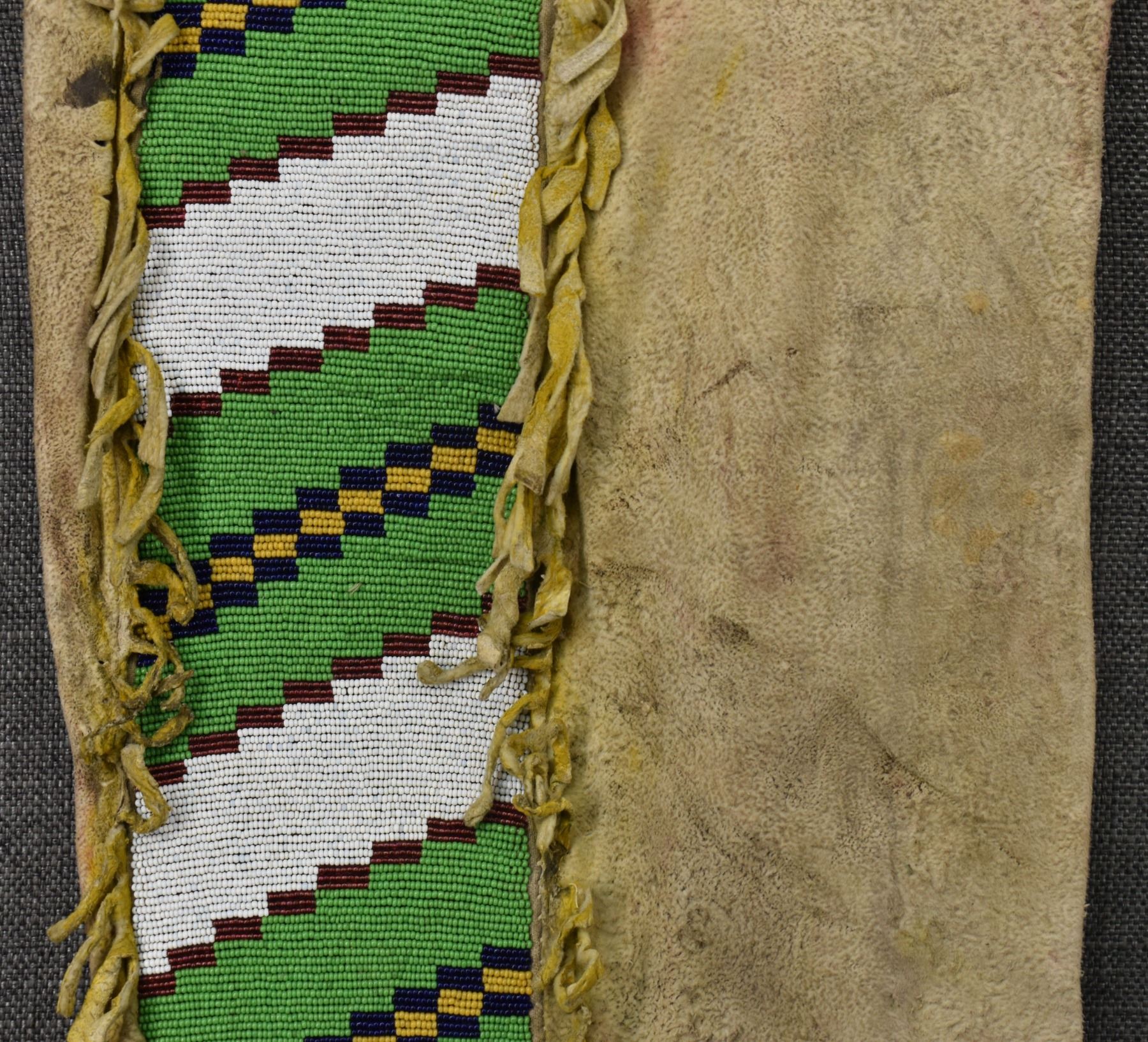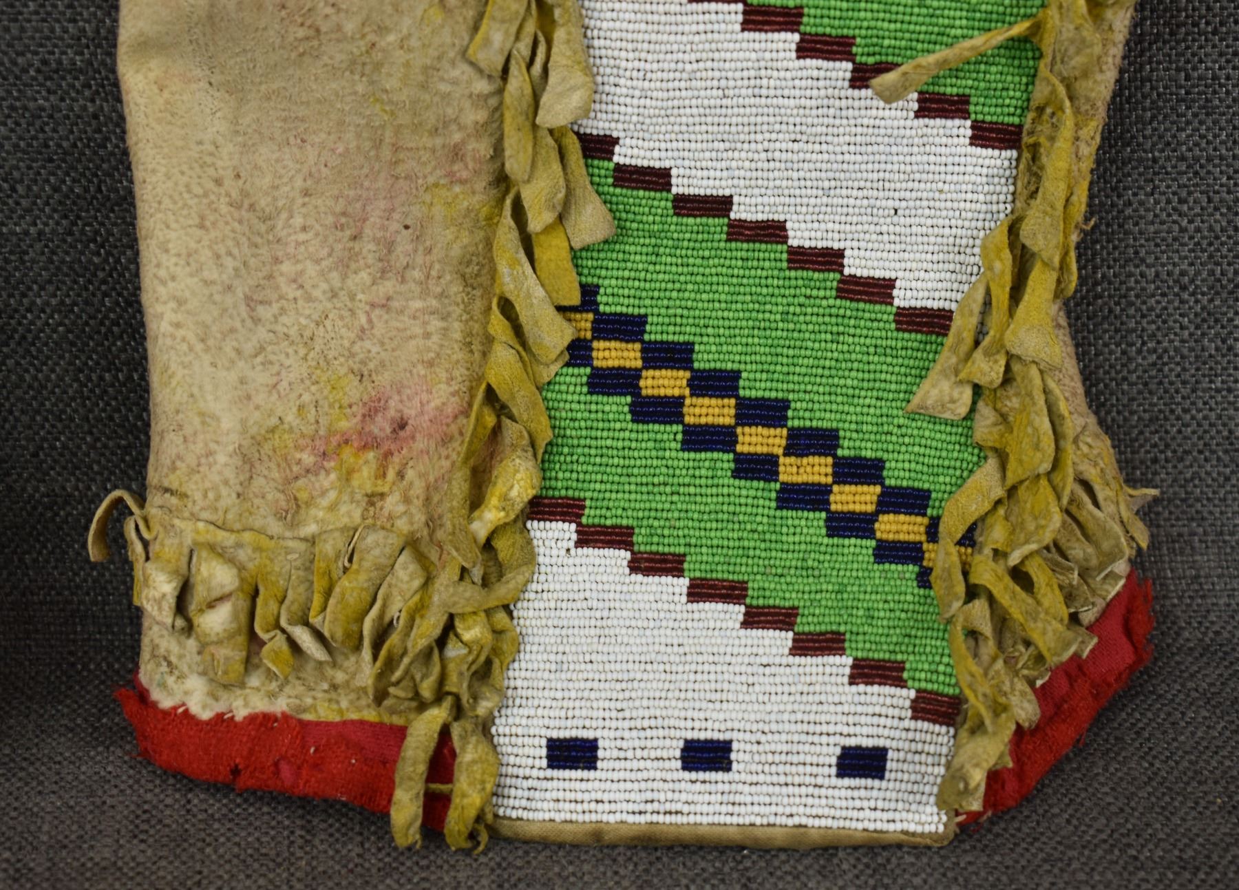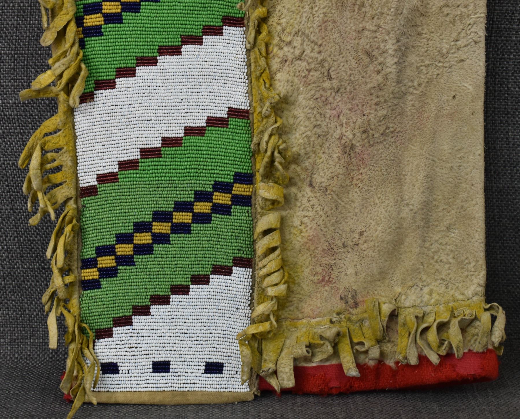 20th century Plains Indian, hand made from native tanned leather with thread sown beaded design 25" x 9.5"