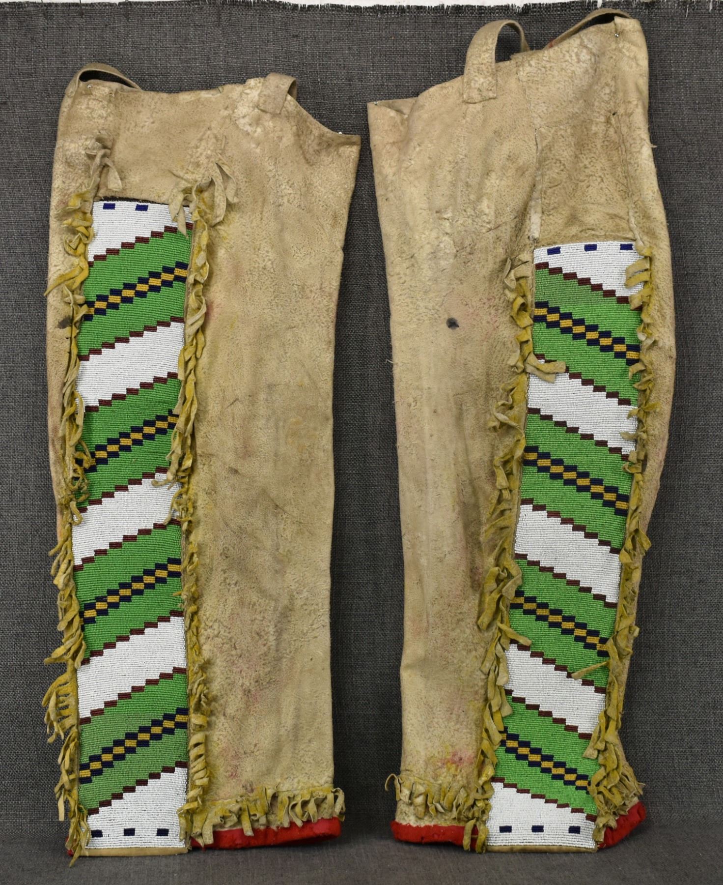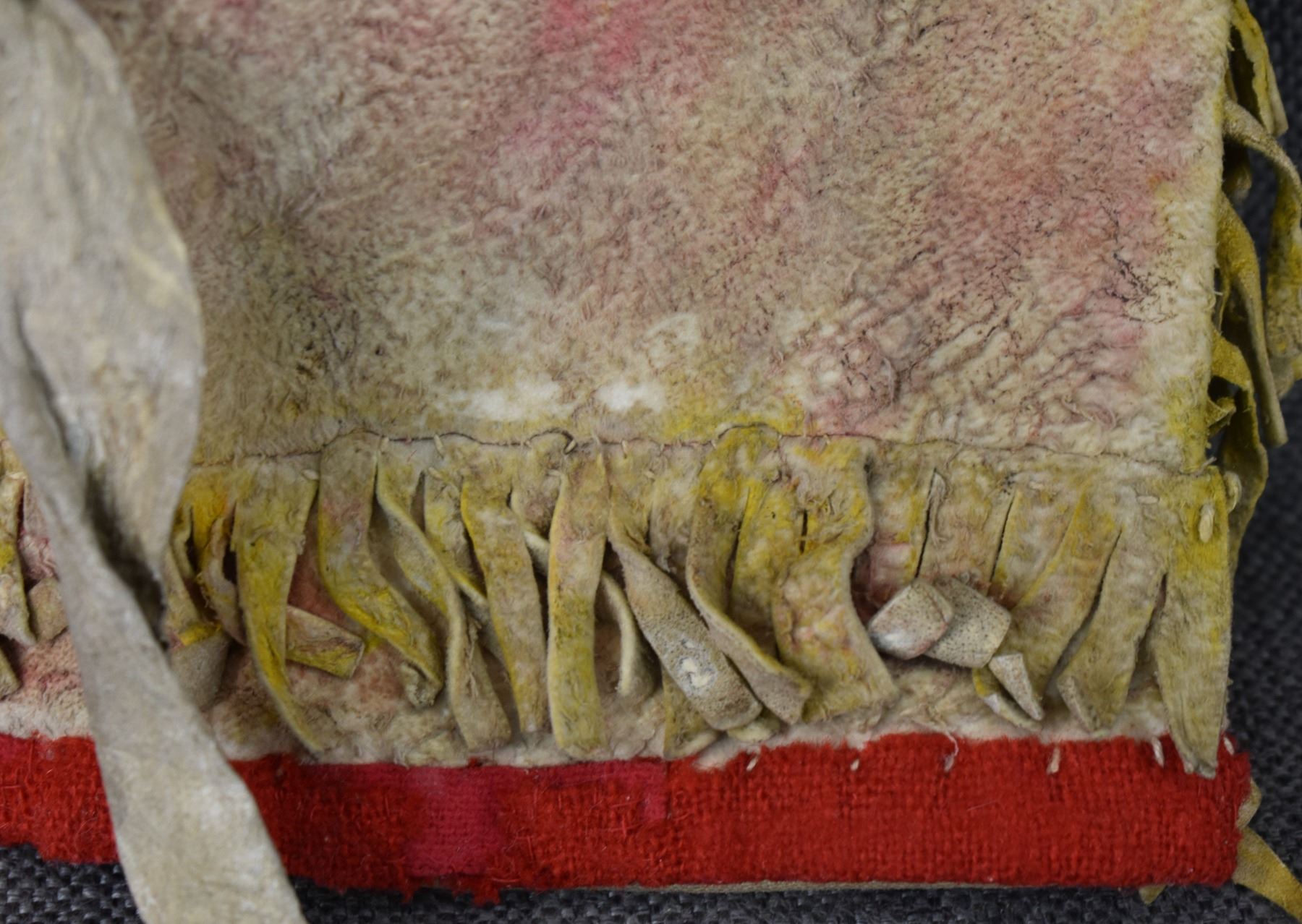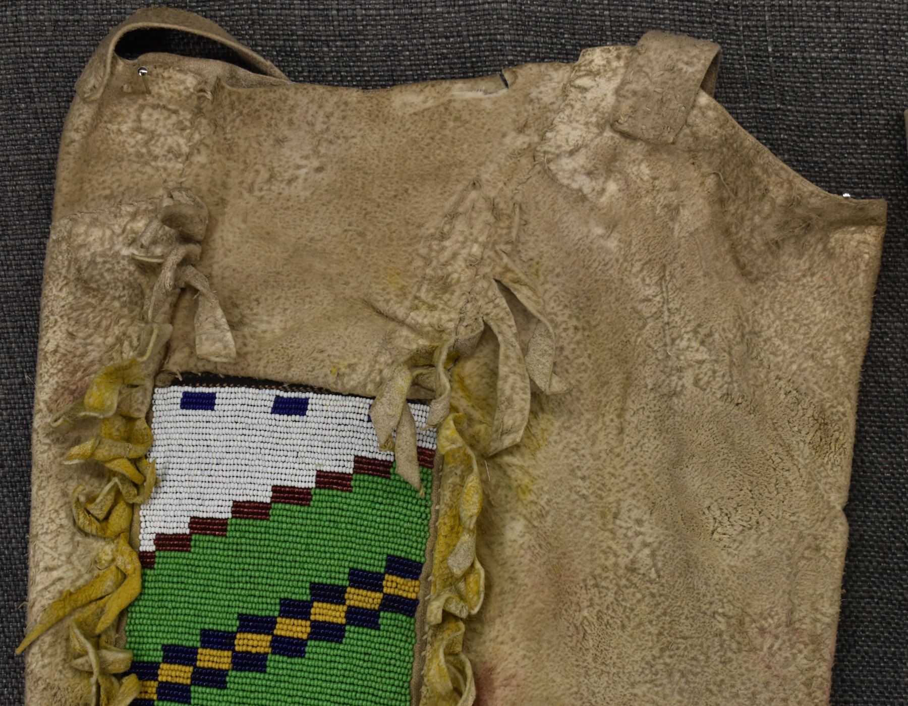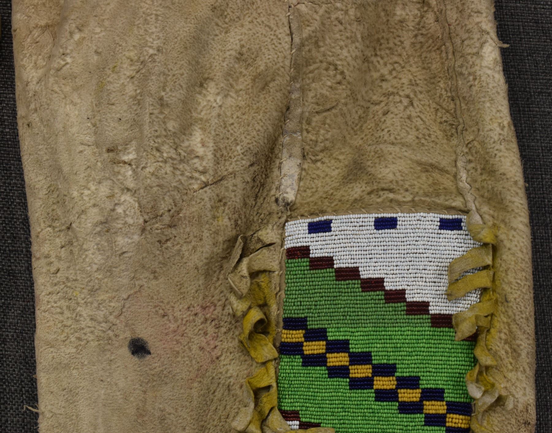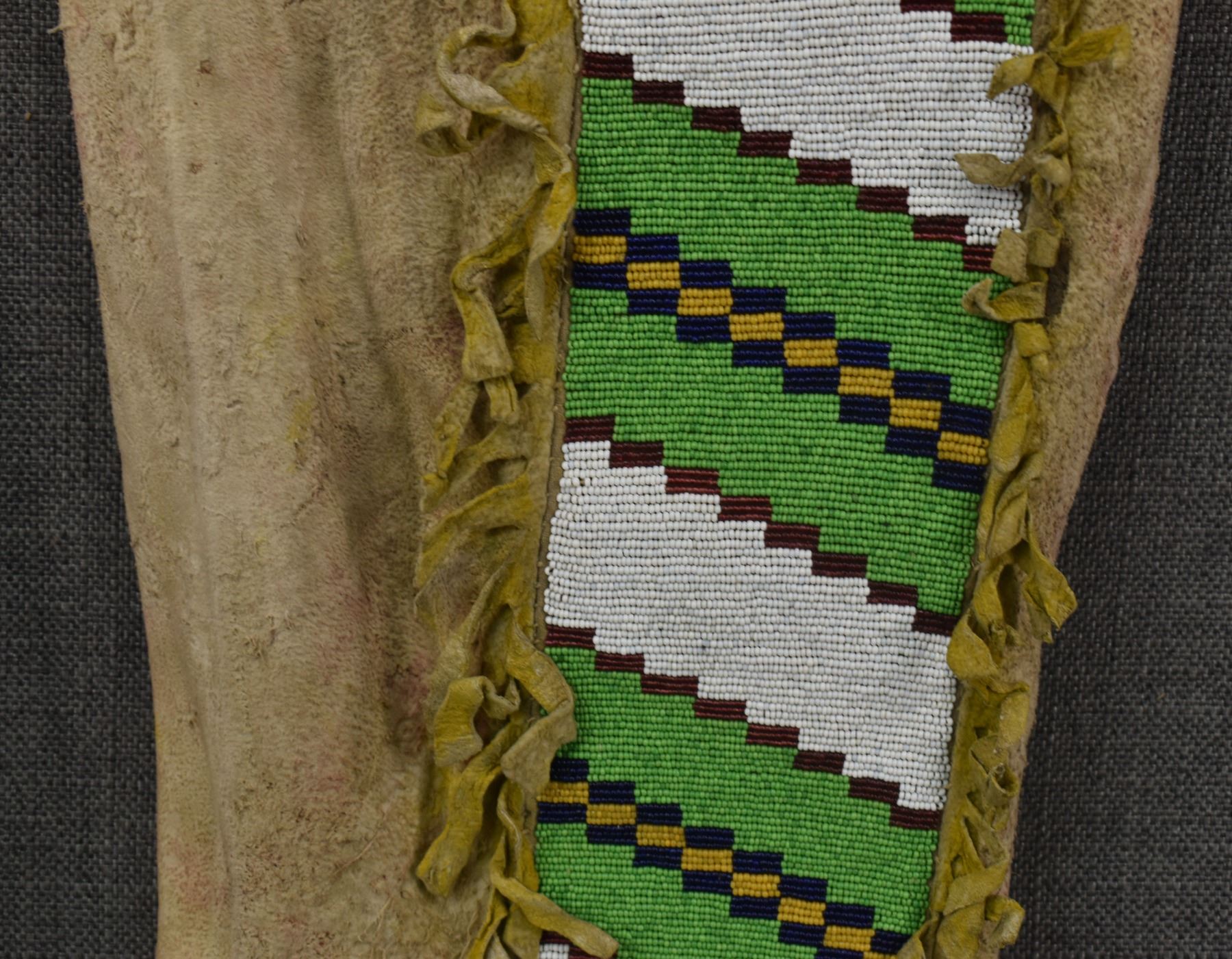 20th century Plains Indian, hand made from native tanned leather with thread sown beaded design 25" x 9.5"