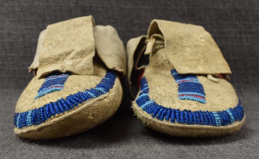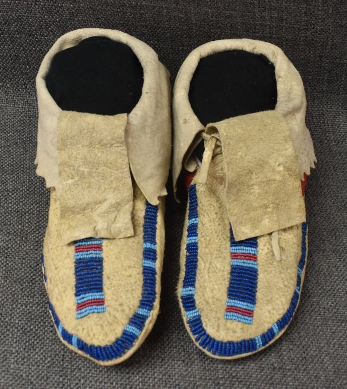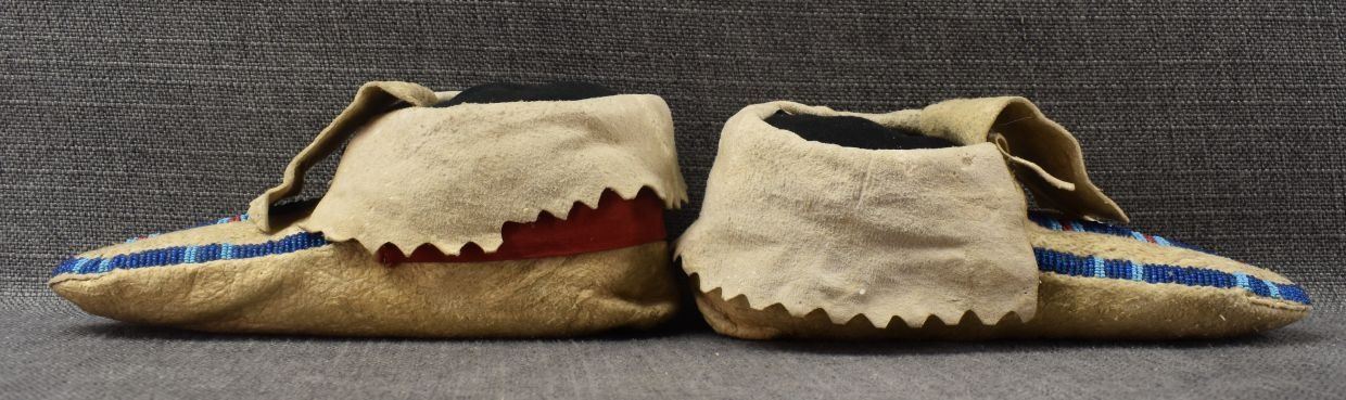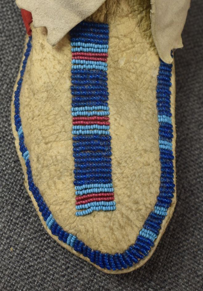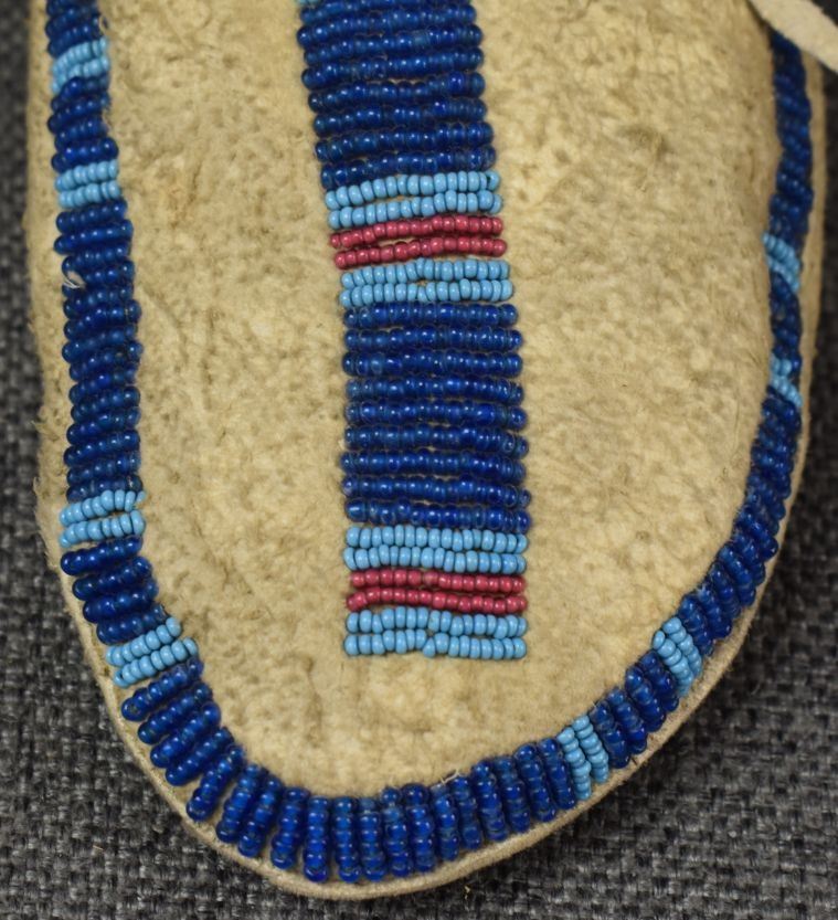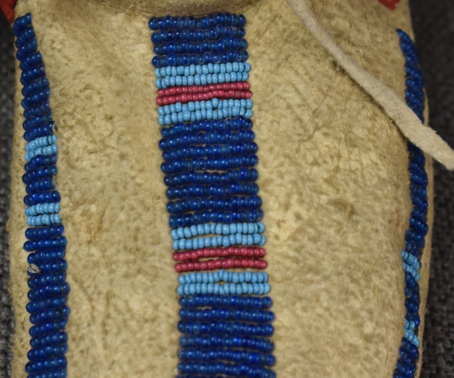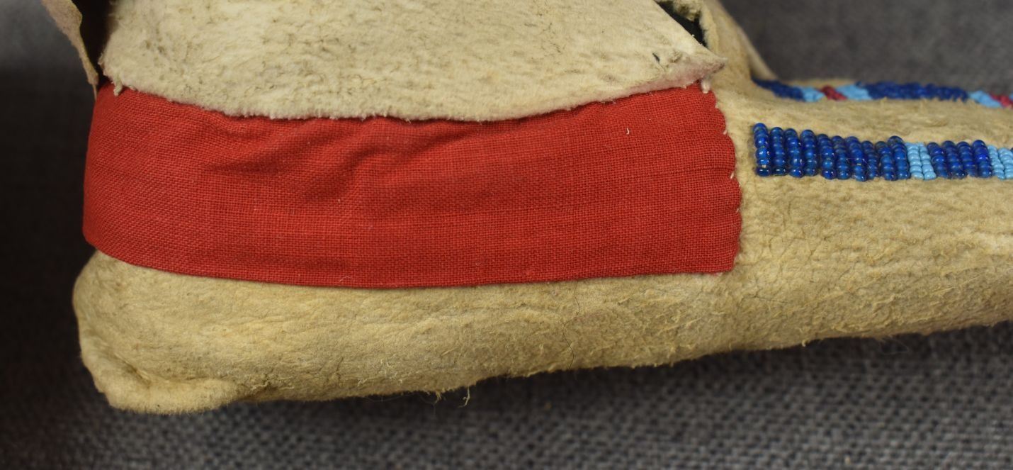 20th century plains Indian, hand made from native tanned leather with thread sown beaded design 2.5" x 8.5" x 3.25"