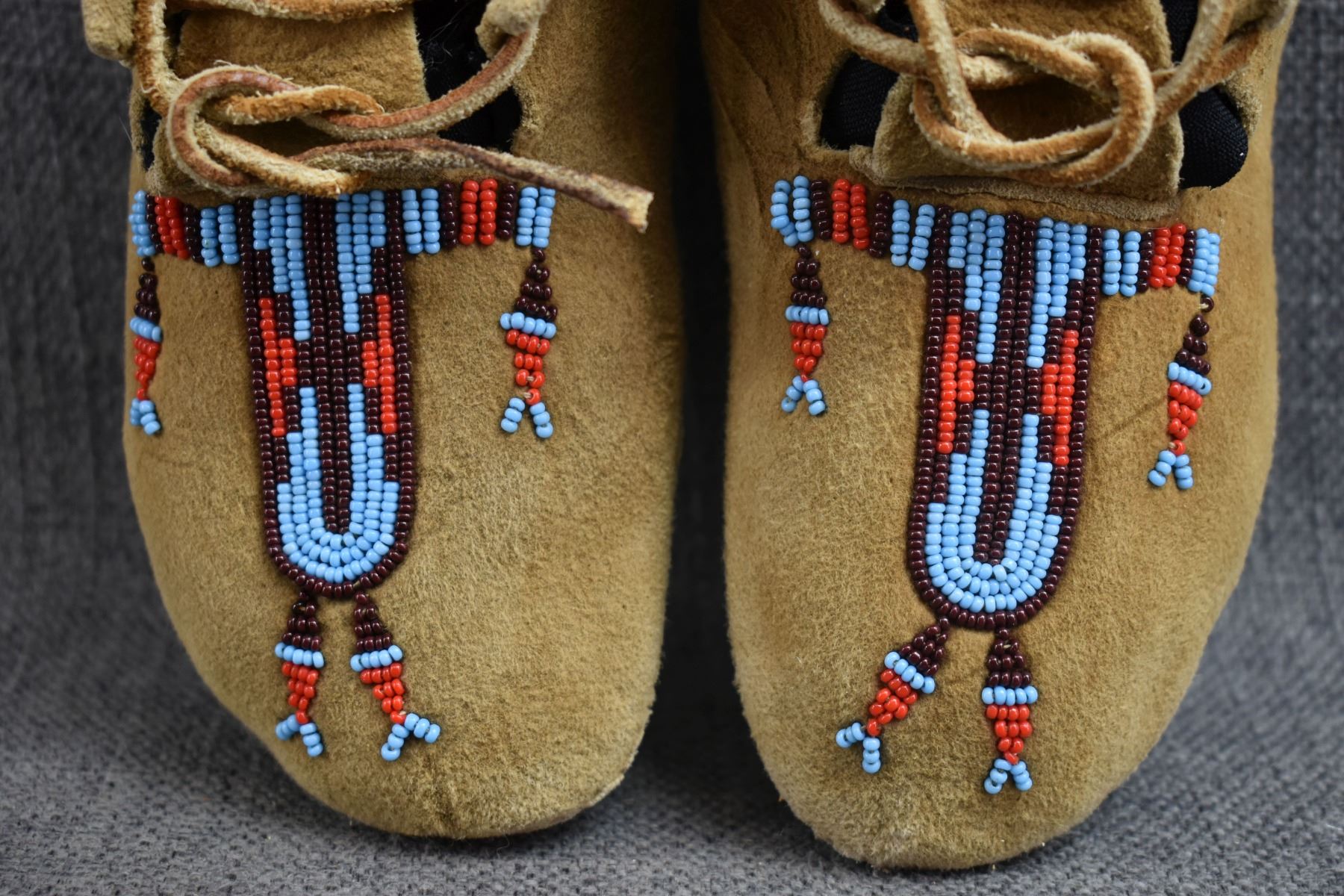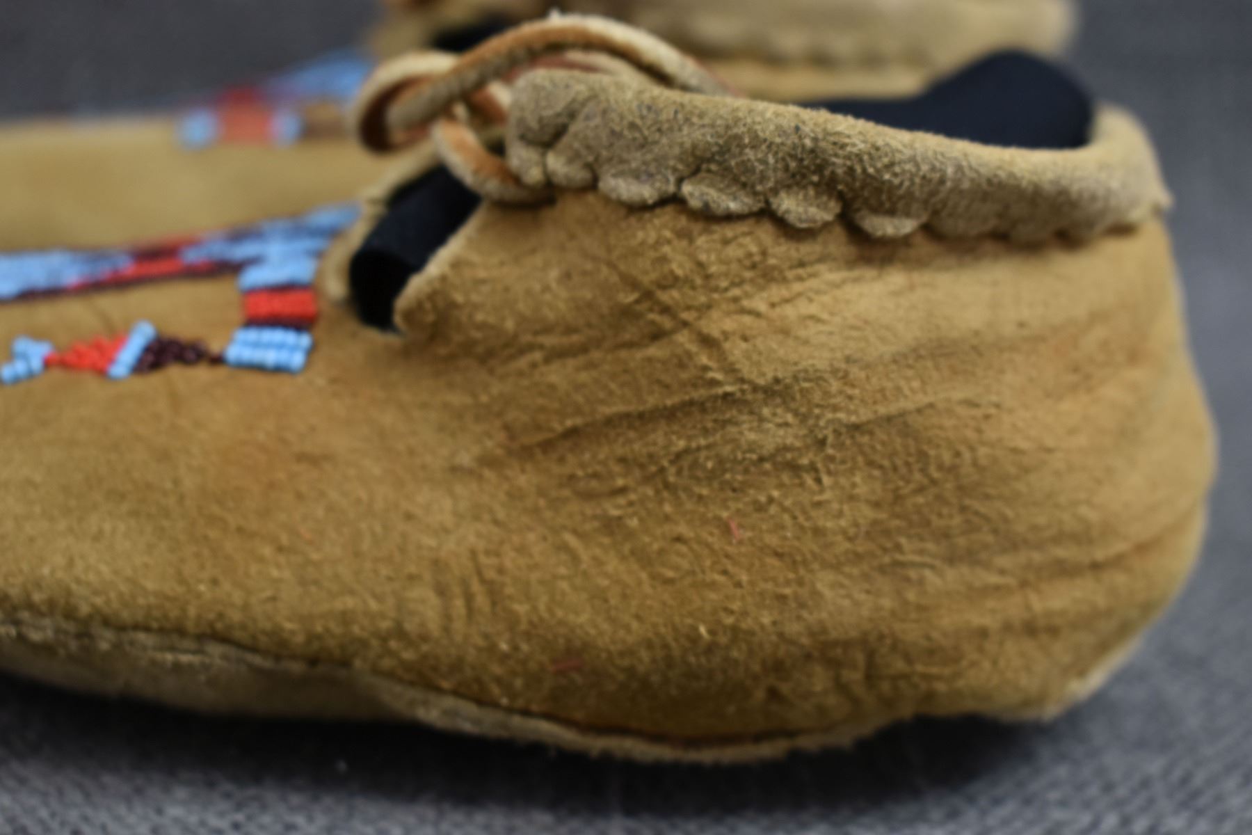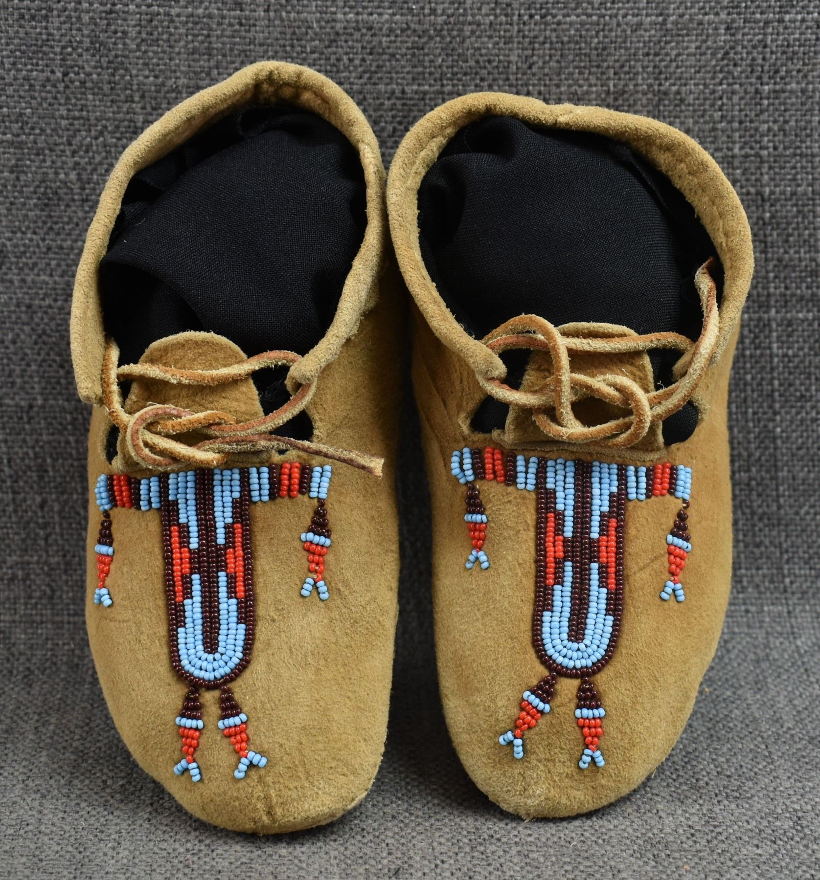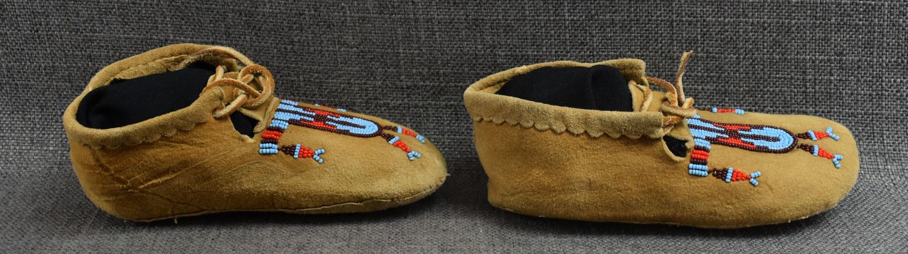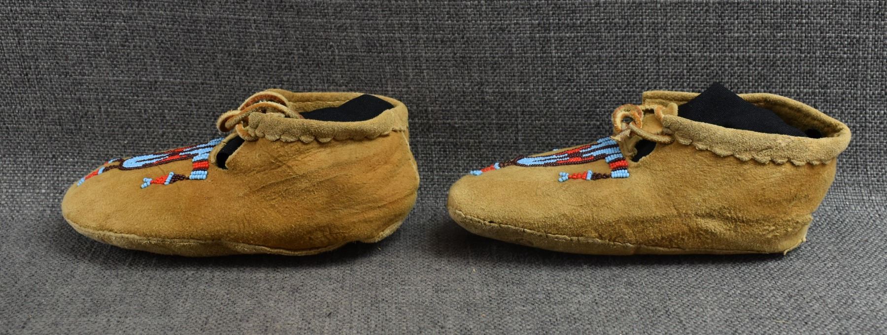 20th century plains Indian, hand made from native tanned leather with thread sown beaded design 2.25" x 6.5" x 3"