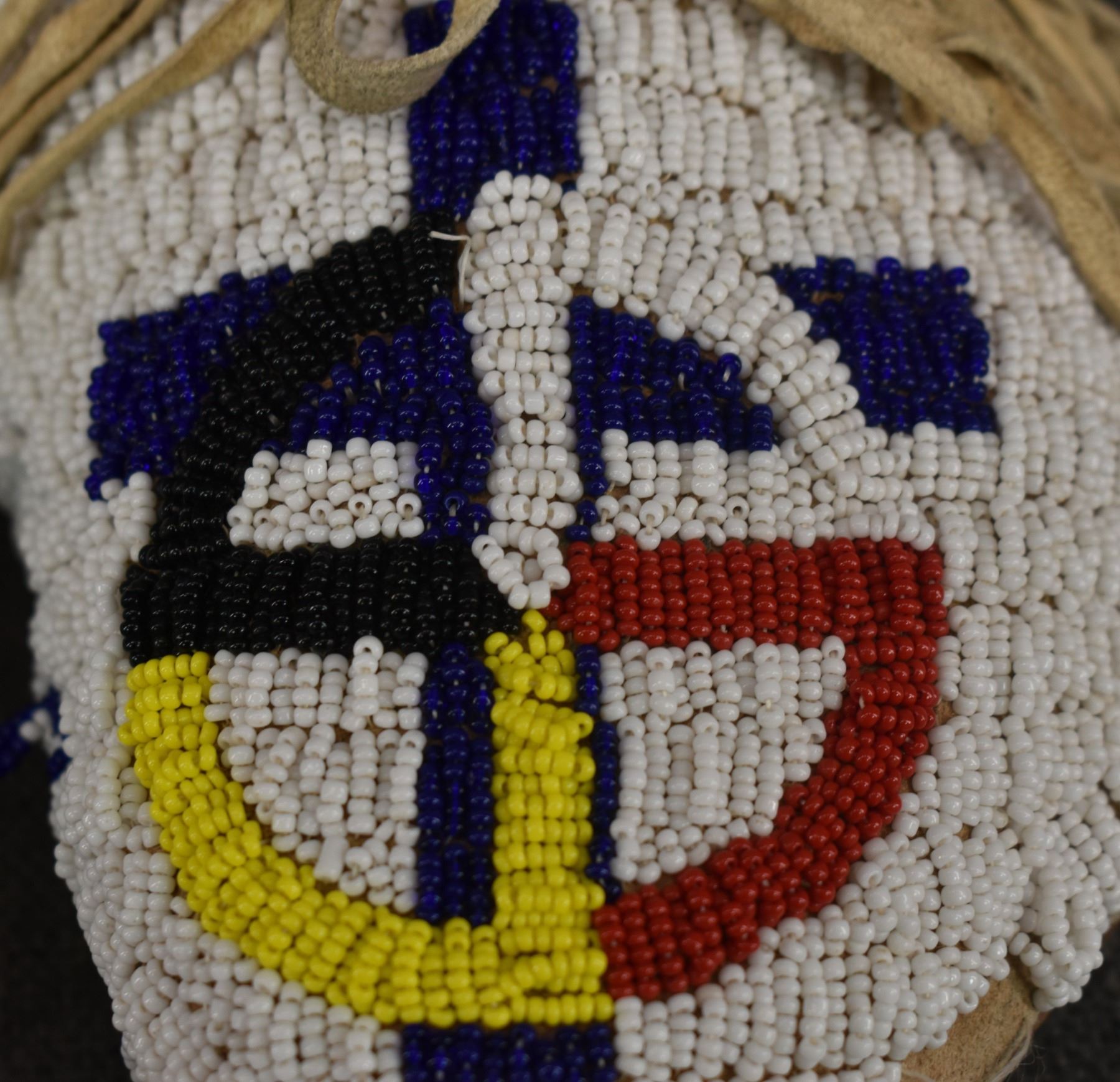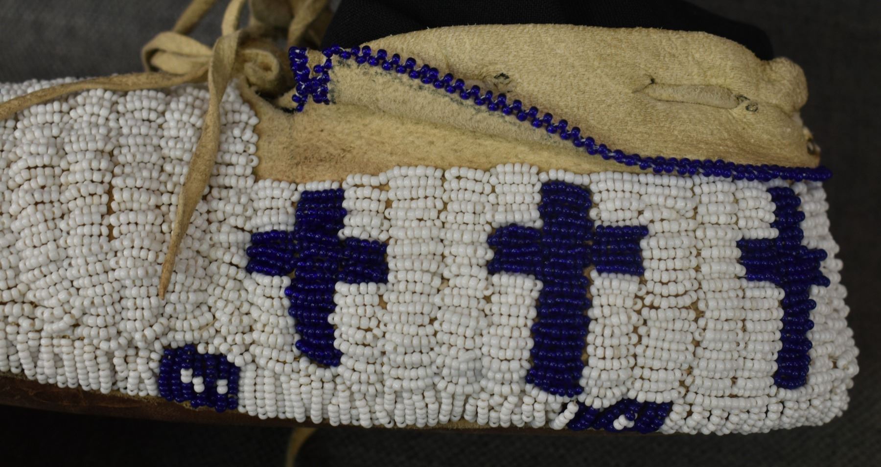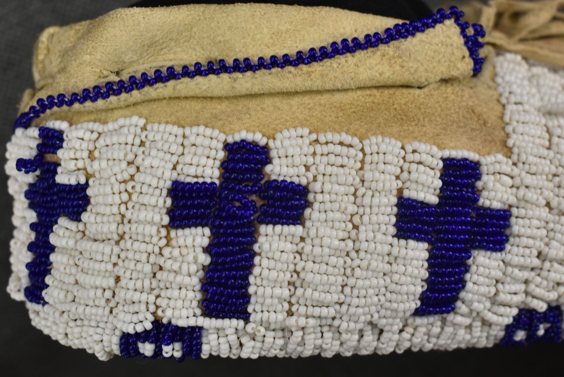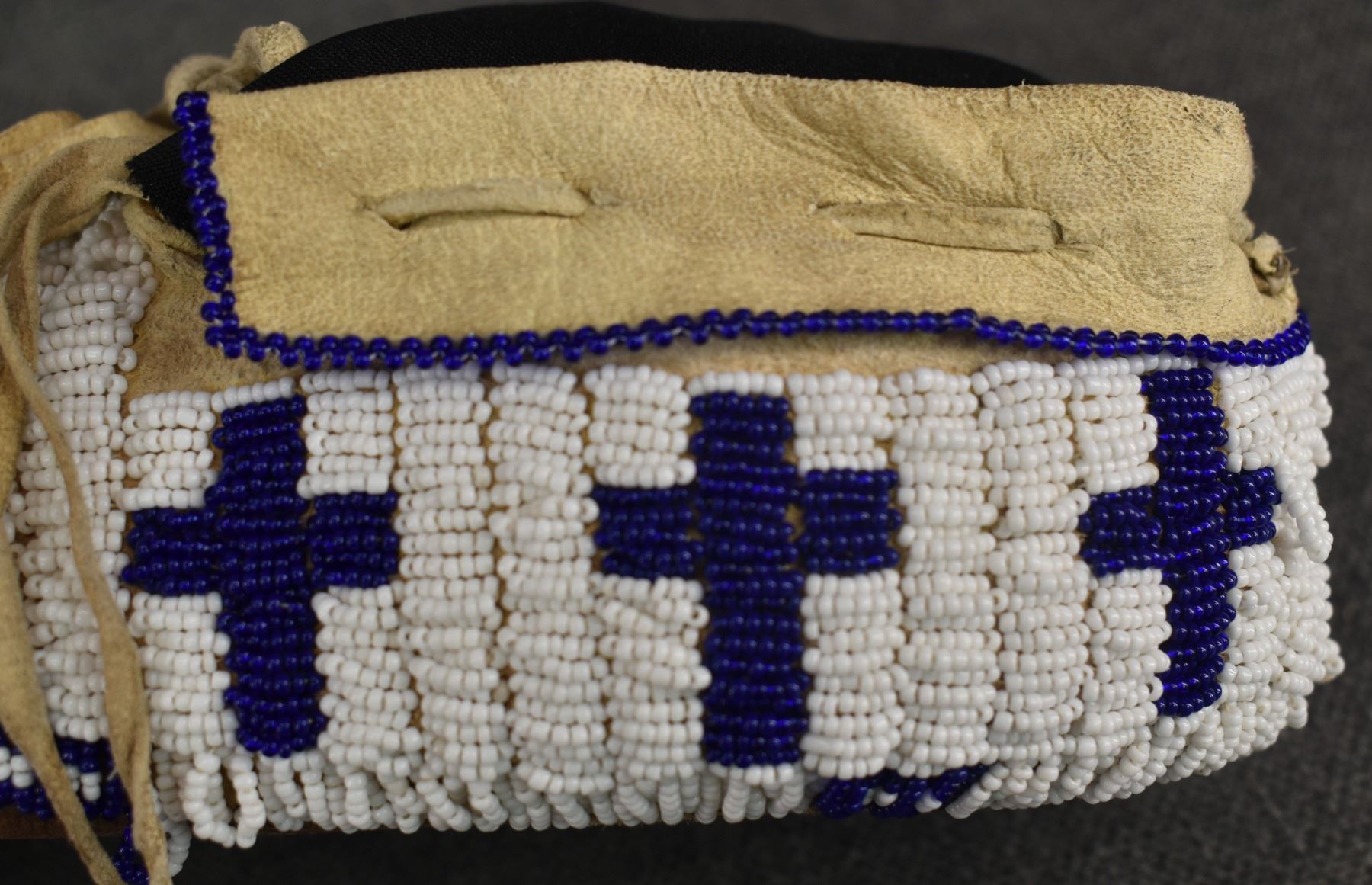20th century Plains Indian, hand made from leather with thread sown beaded design 3.25" x 10.5" x 4.25"