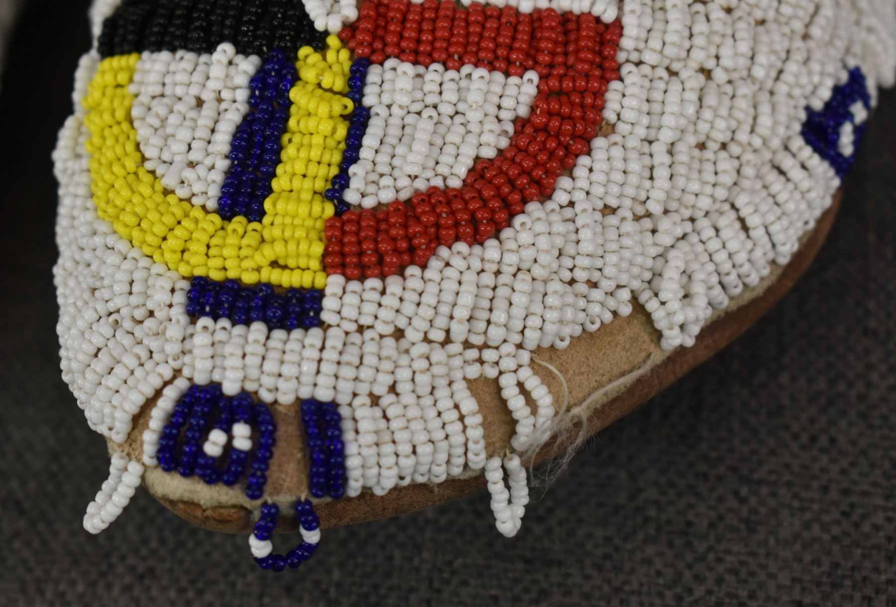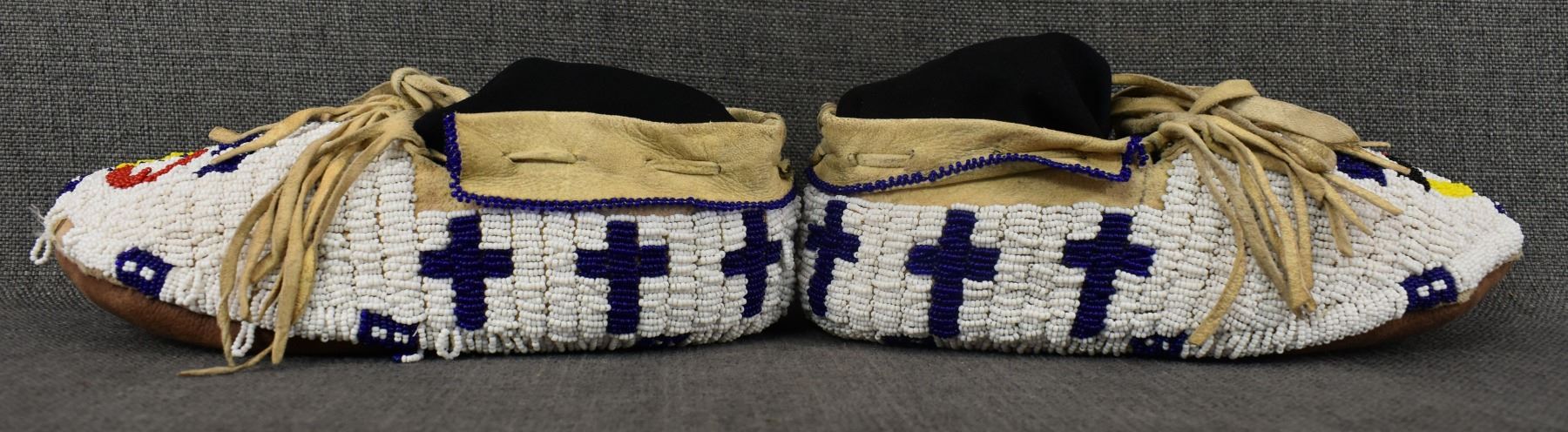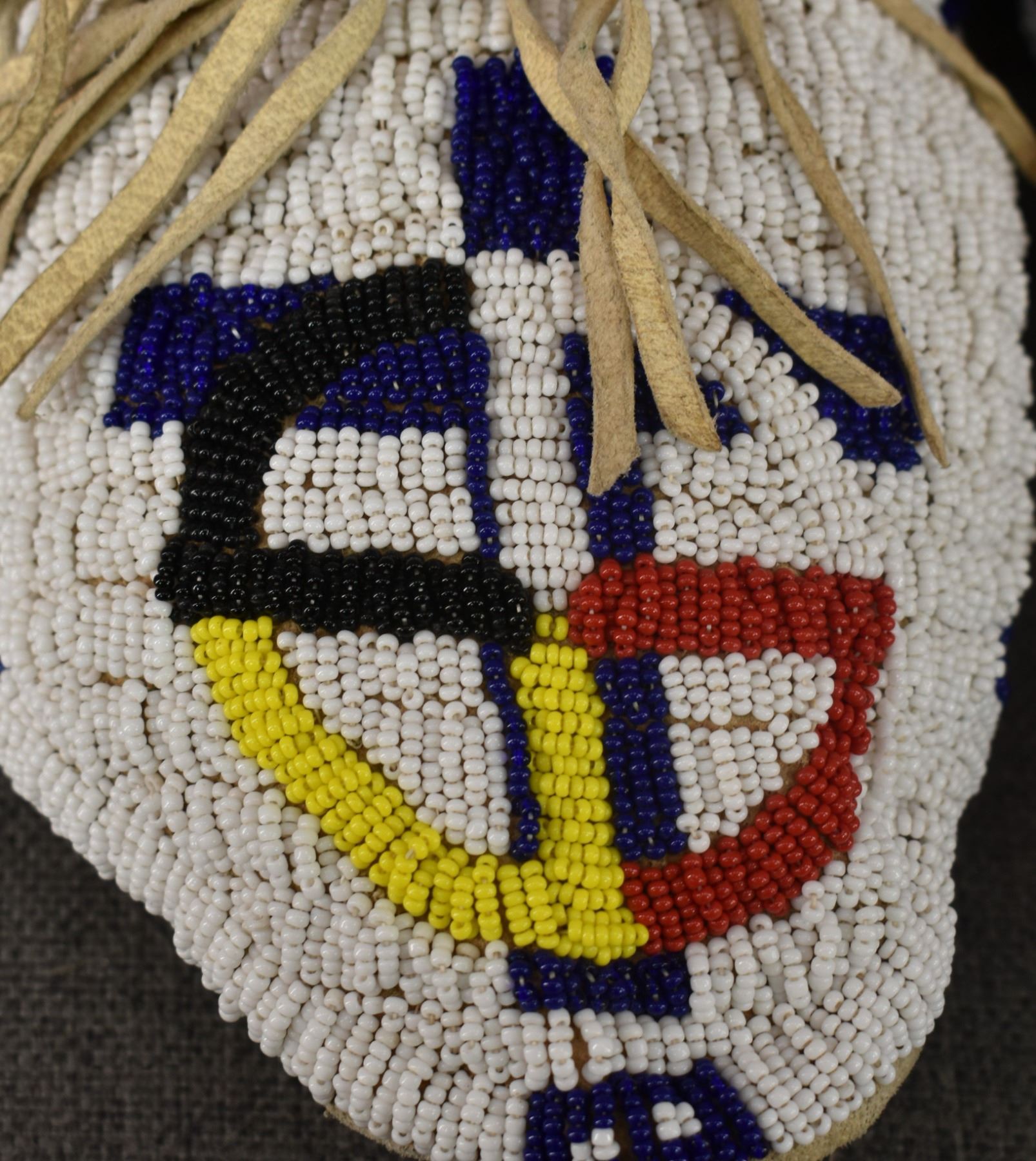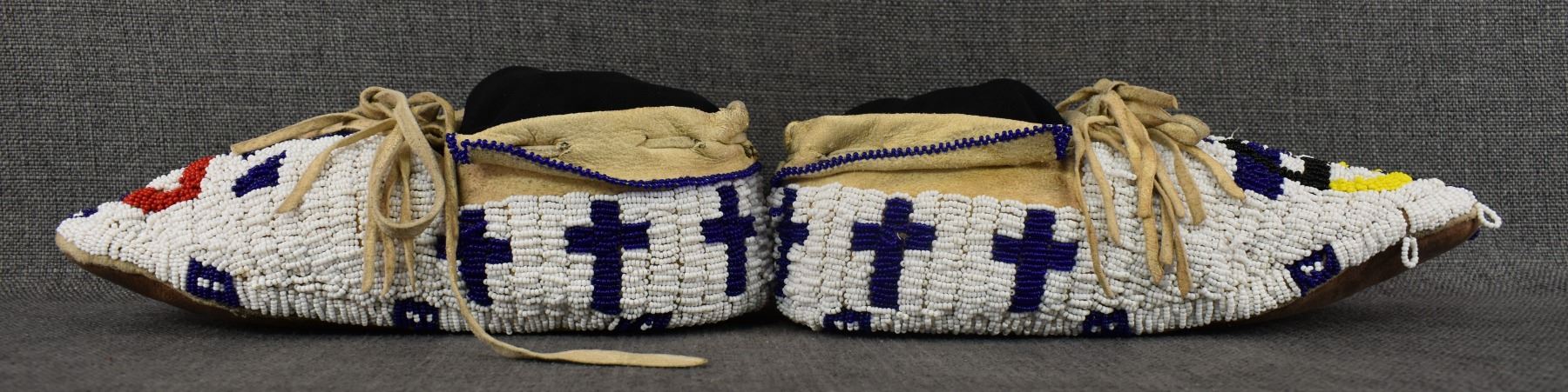 20th century Plains Indian, hand made from leather with thread sown beaded design 3.25" x 10.5" x 4.25"