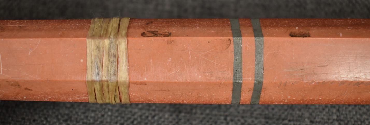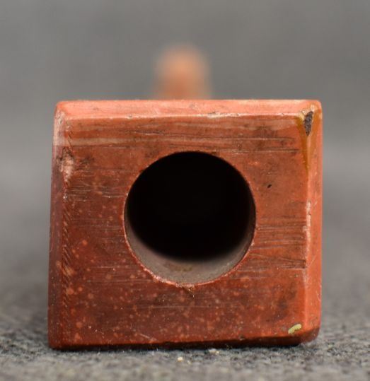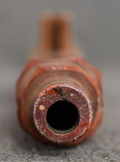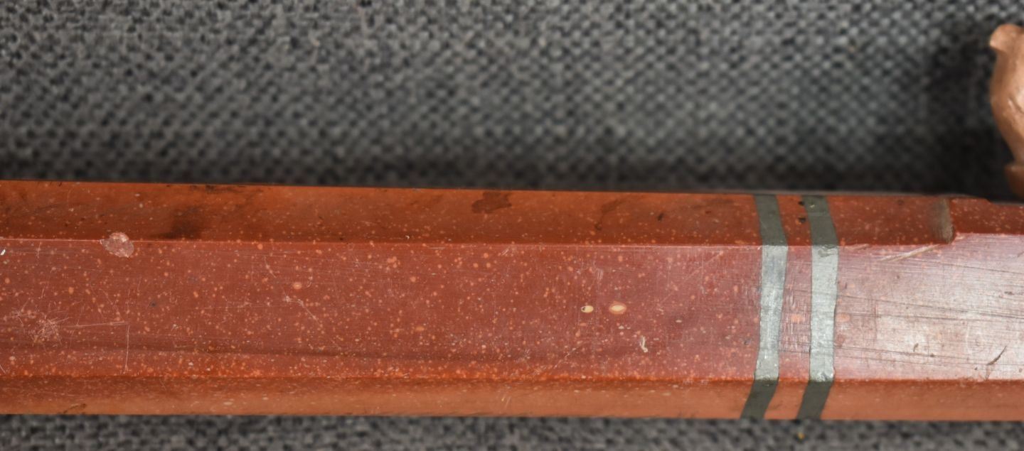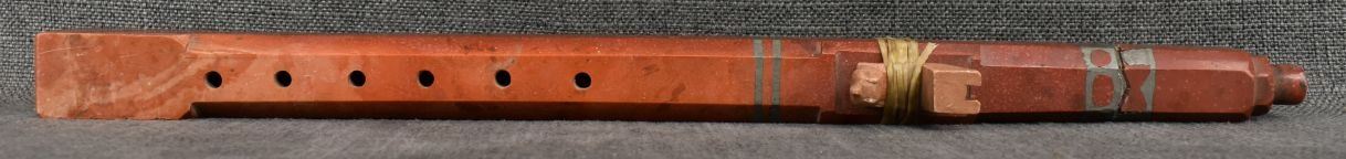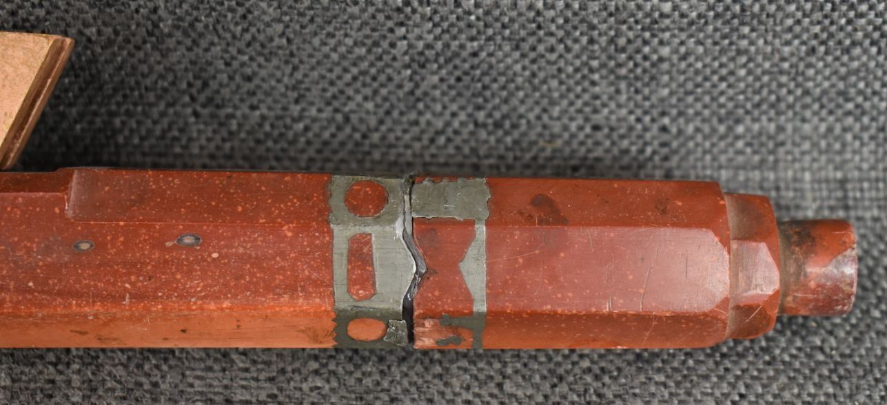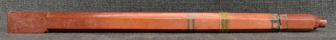 20th century plains Indian, carved with sgraffito floral design and lead inlay 18.5" long, has been broken and glued