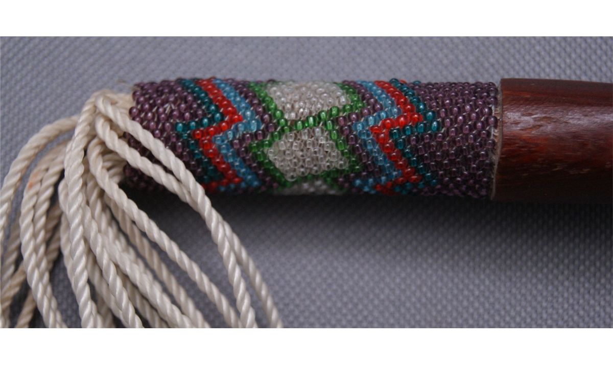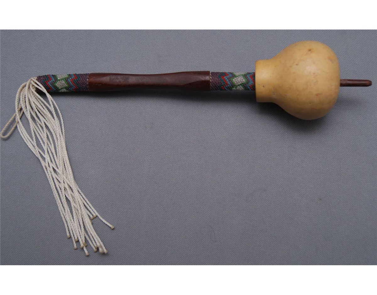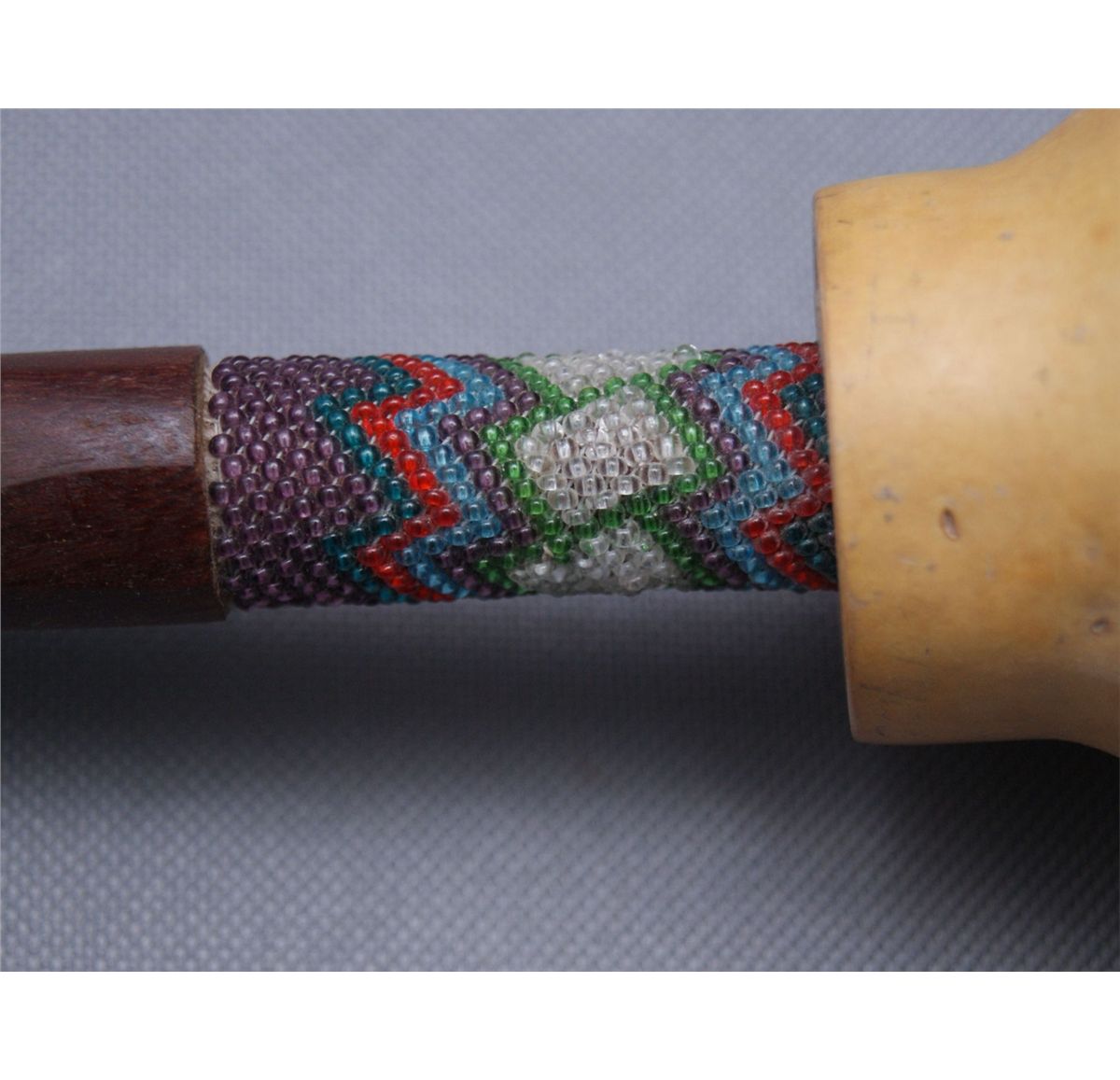1960s 70s partially beaded handle with gourd head, 12" x 3"