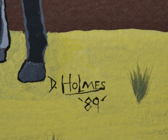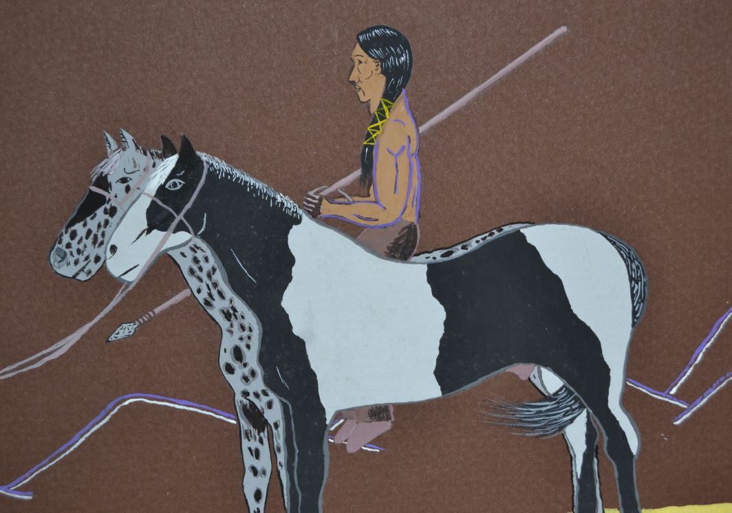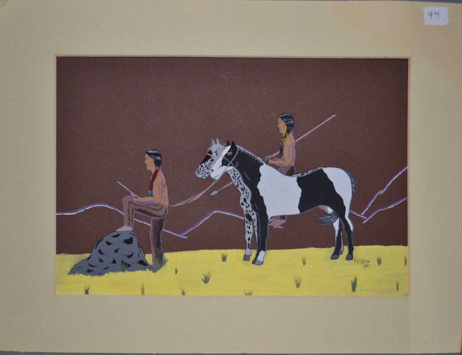 1989 watercolor on paper of 2 Indians and horses D. Holmes 8"x11.75"