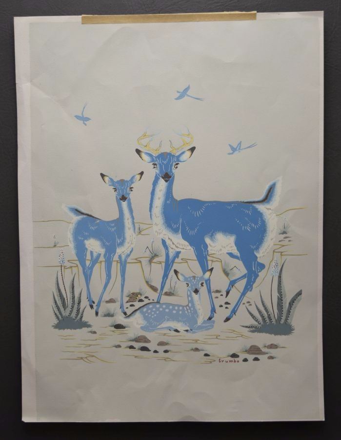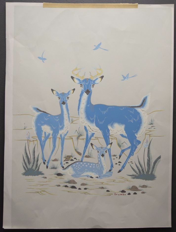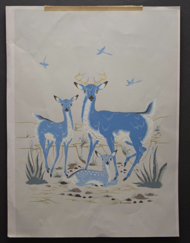 1970's print on paper depicting deer by Crumbo. 19" x 15"