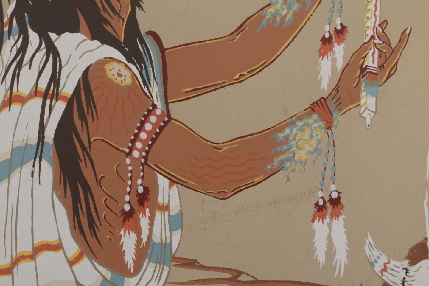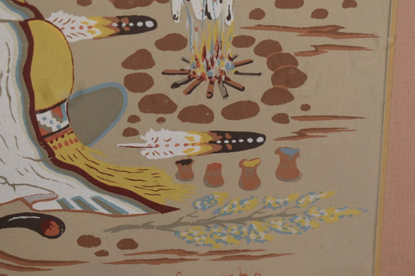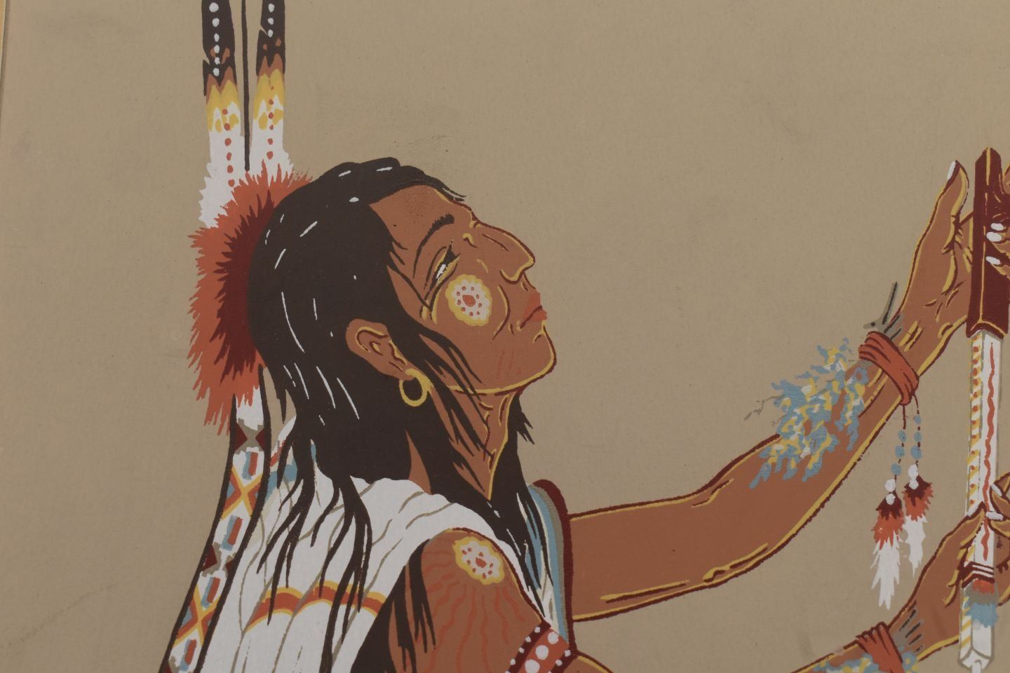 vintage Pottawatomie, silk screen on paper by Woody Crumbo 11.5" x 9.5" matted and framed to 21.5" x 19.5"